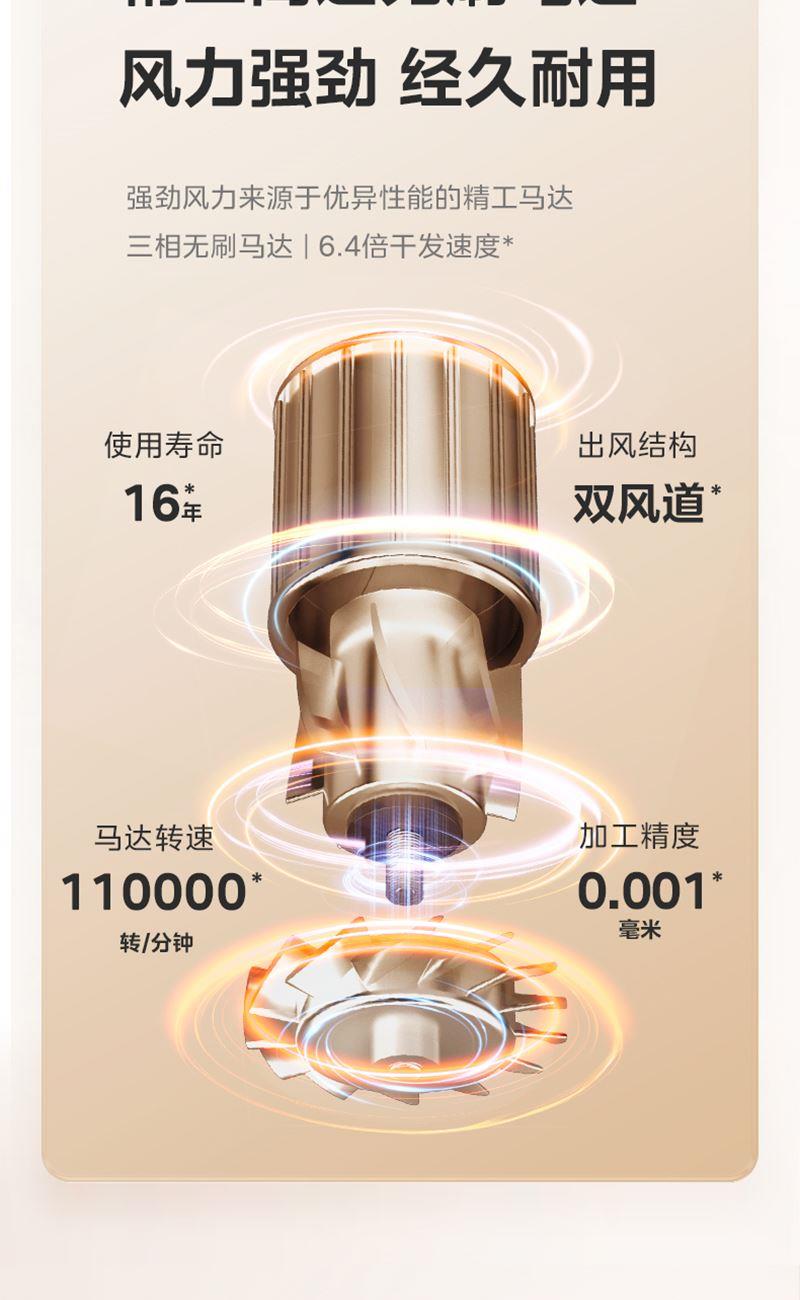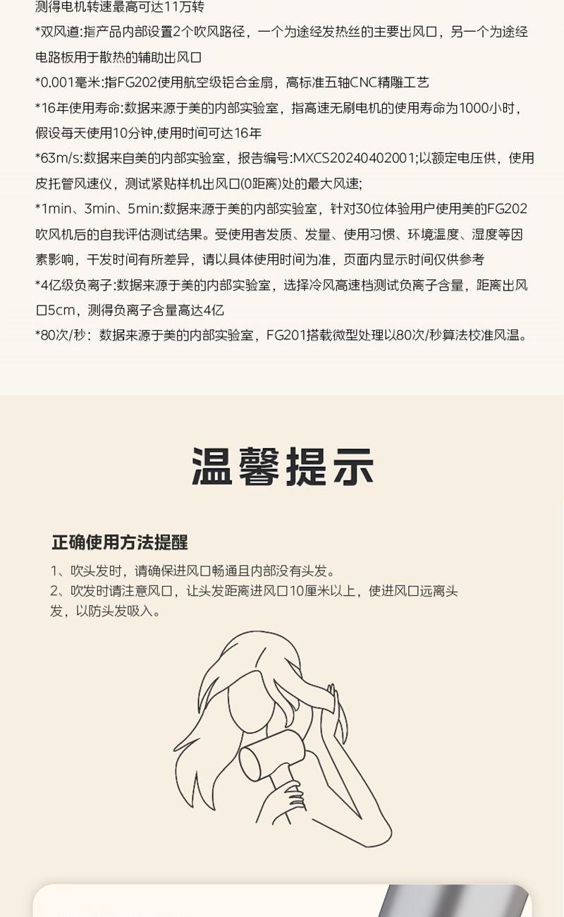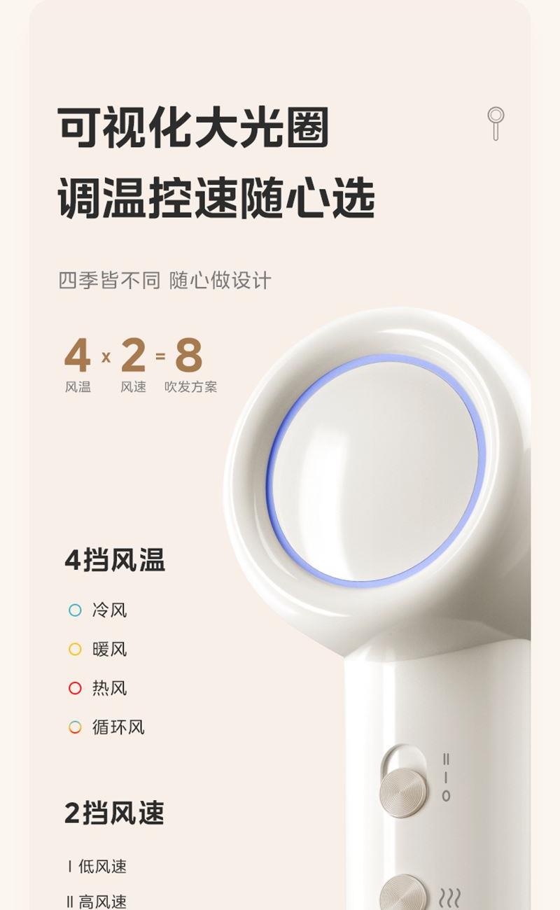 额定功率:1600W 额定电压:220V~ 产品尺寸:89mmx72mmx280mm 1、高速电机 2、8档模式,2档风速,4档风温 4、可拆进风滤网