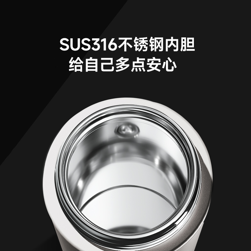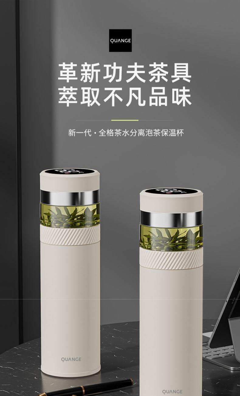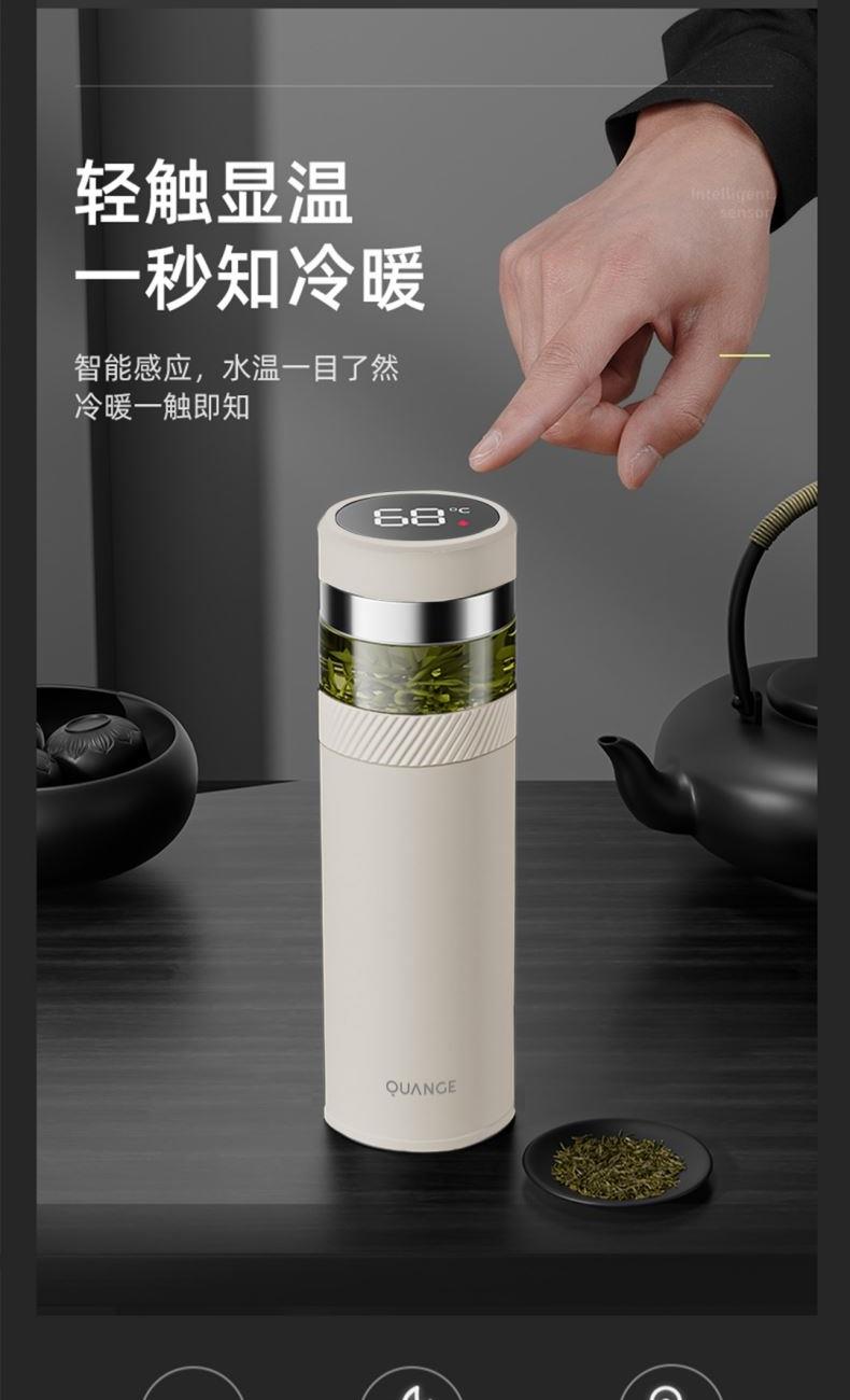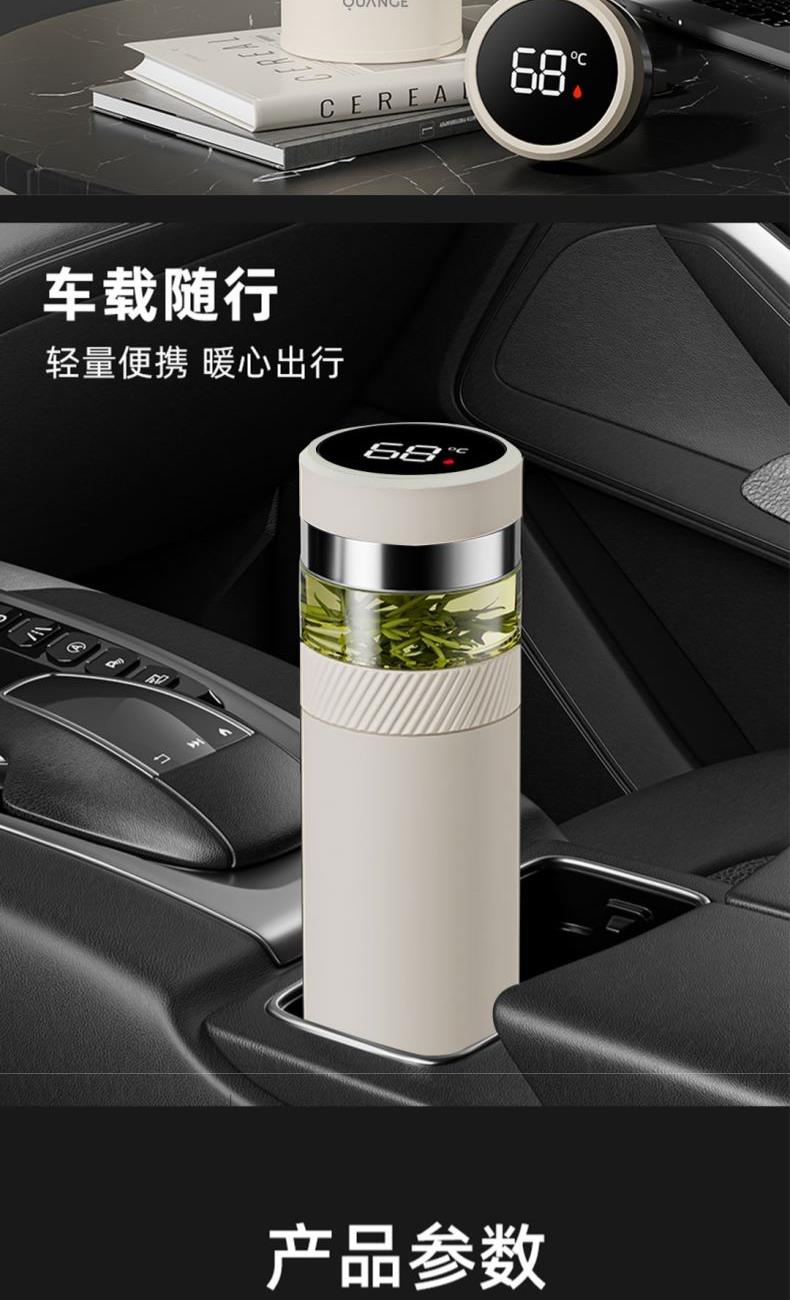 颜色:白色 容量:420ml+80ml(茶仓) 材质:内胆底SUS316,茶仓:AS 配置:独立茶仓,温度显示 包装:彩盒 1、容量420ml+80ml(茶仓),独立茶仓 2、智能测温,轻触显温,一目了然 3、轻量便携,暖心出行