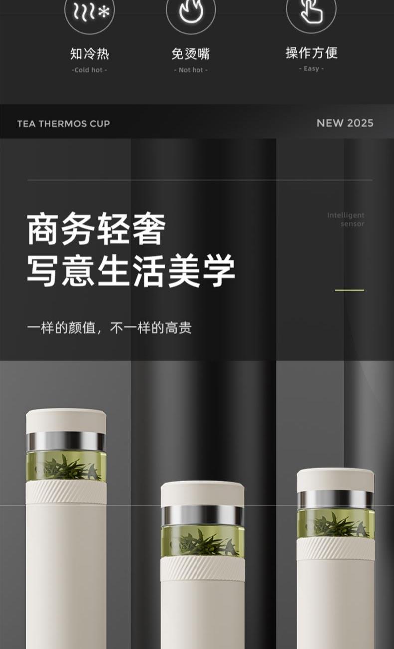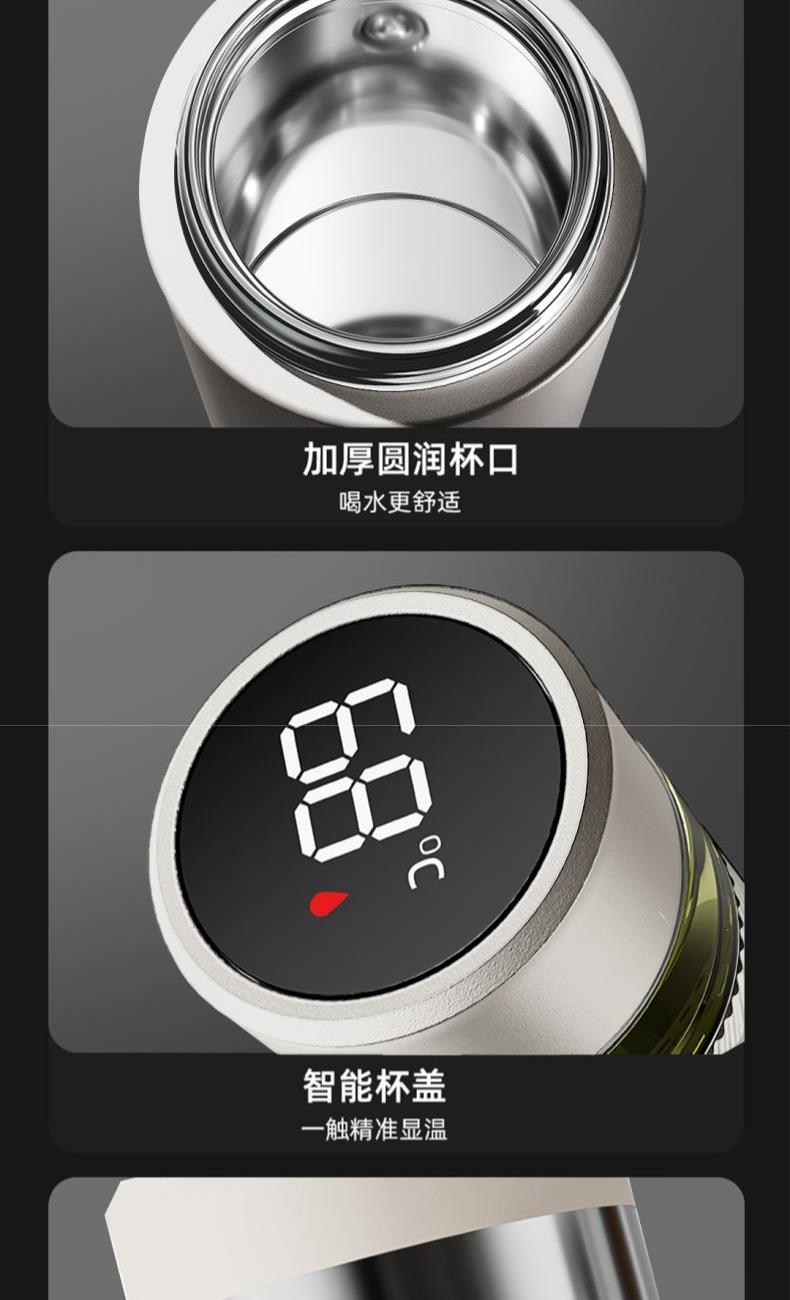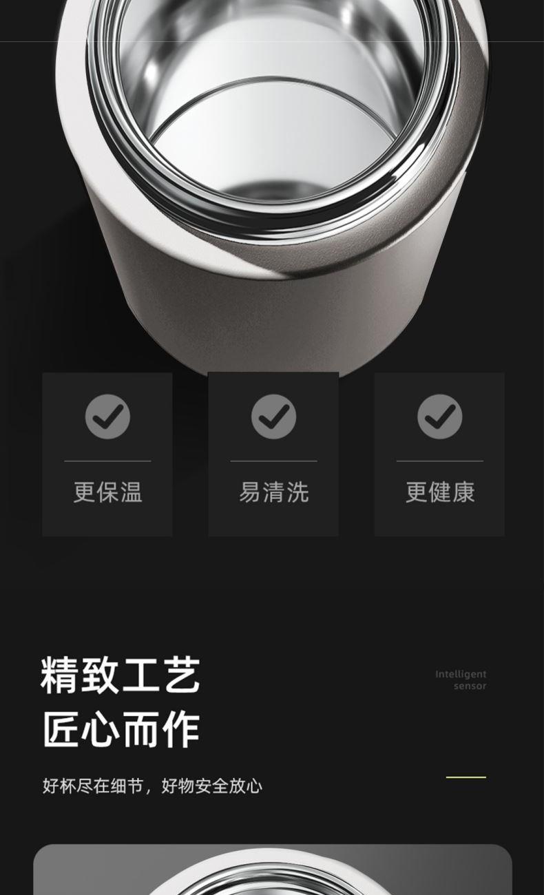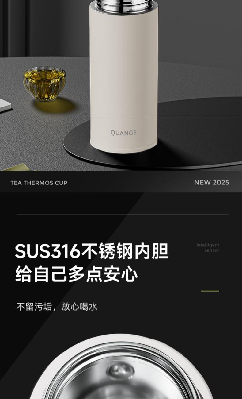 颜色:白色 容量:420ml+80ml(茶仓) 材质:内胆底SUS316,茶仓:AS 配置:独立茶仓,温度显示 包装:彩盒 1、容量420ml+80ml(茶仓),独立茶仓 2、智能测温,轻触显温,一目了然 3、轻量便携,暖心出行