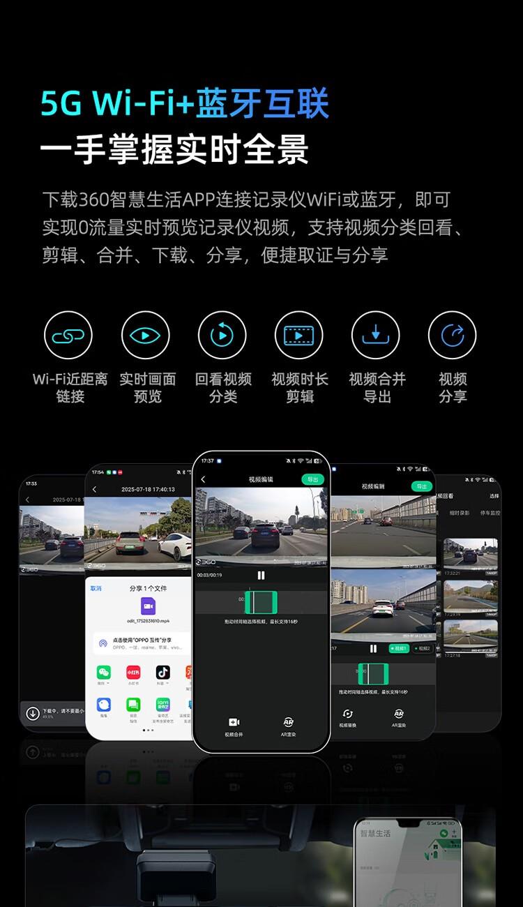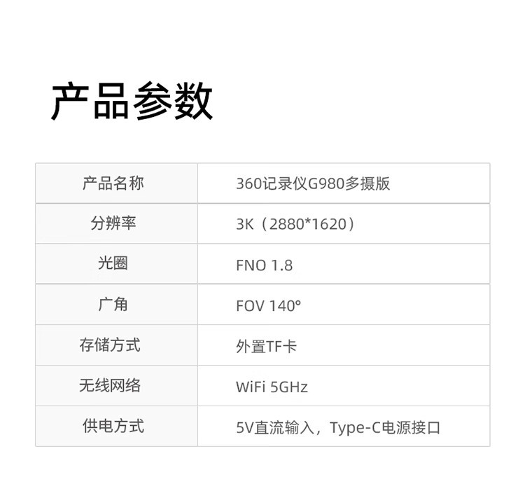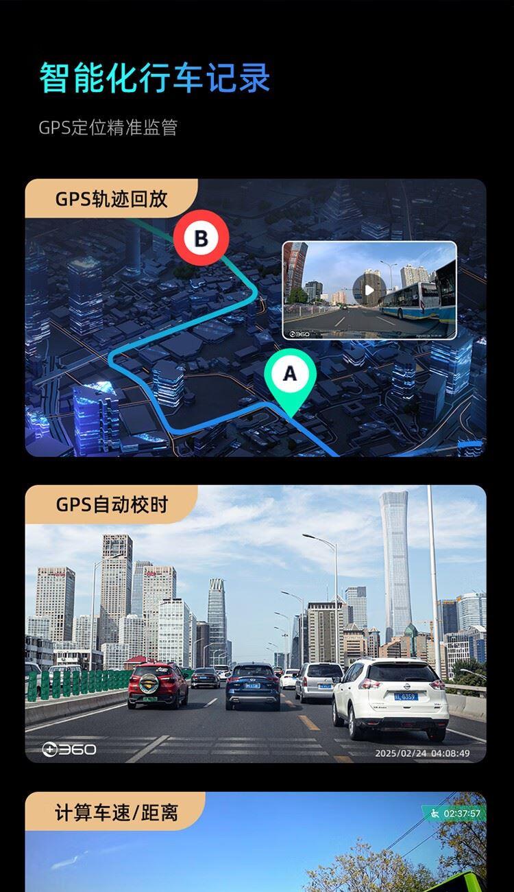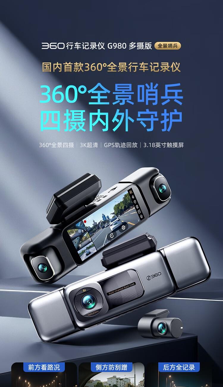 • 360AI记录仪G980多摄版3K超清夜视GPS行车轨迹