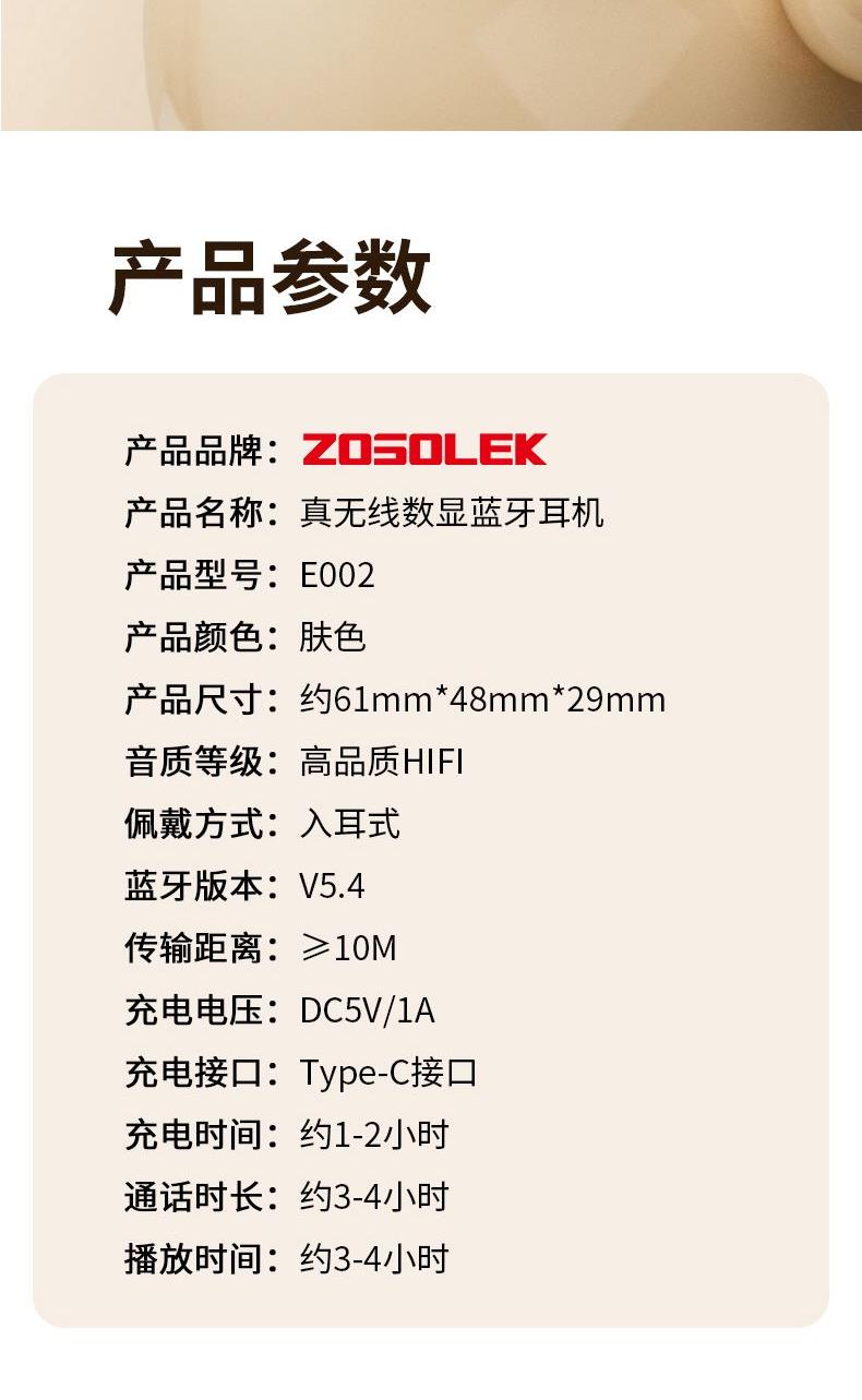 • 致尚丽和ZOSOLEK真无线数显蓝牙耳机E002