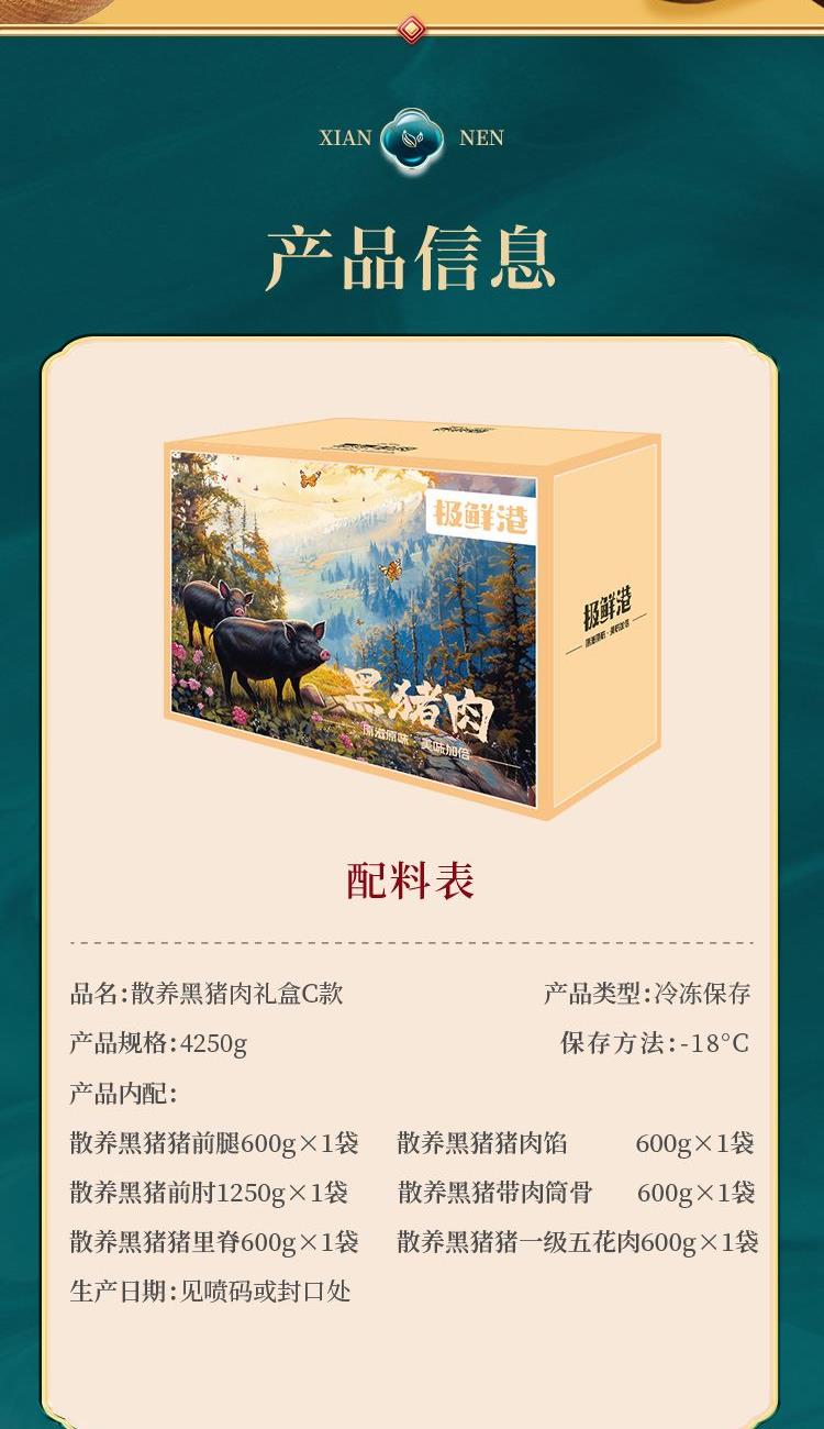 极鲜港散养黑猪肉礼盒C款798型【4250g】