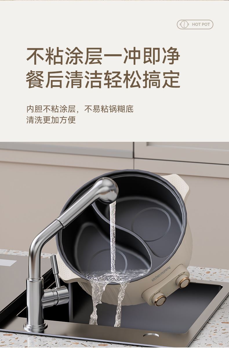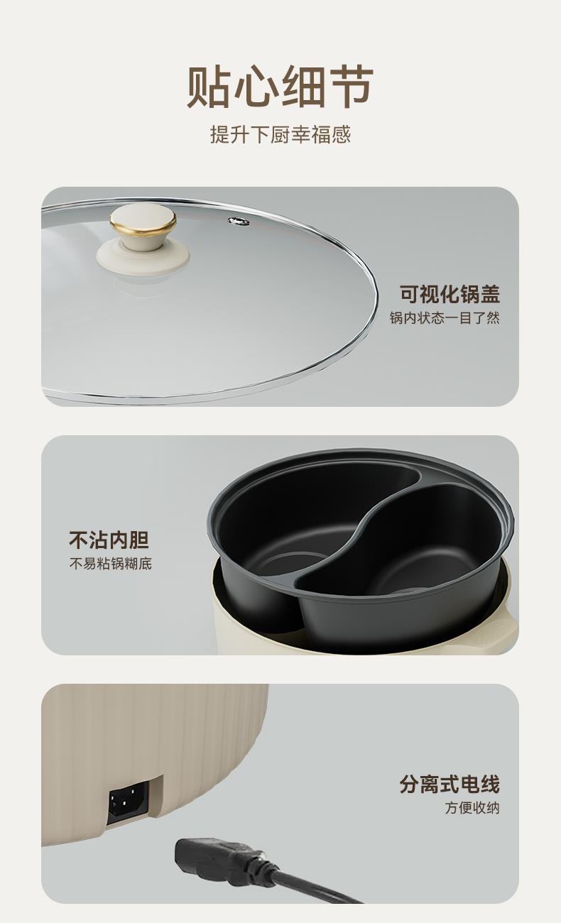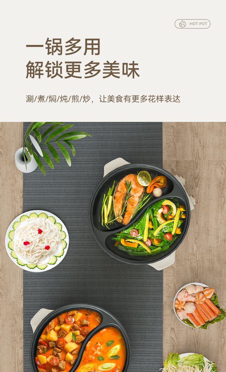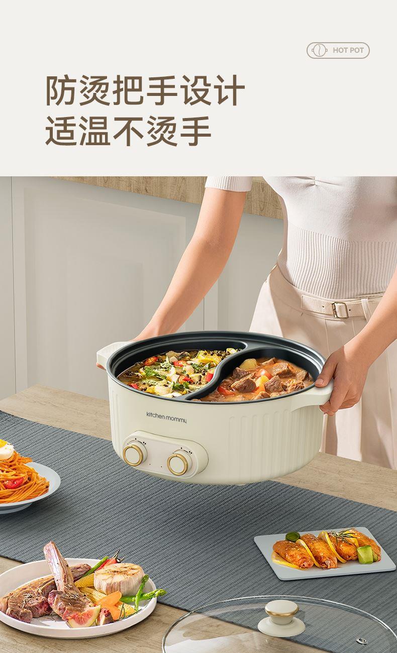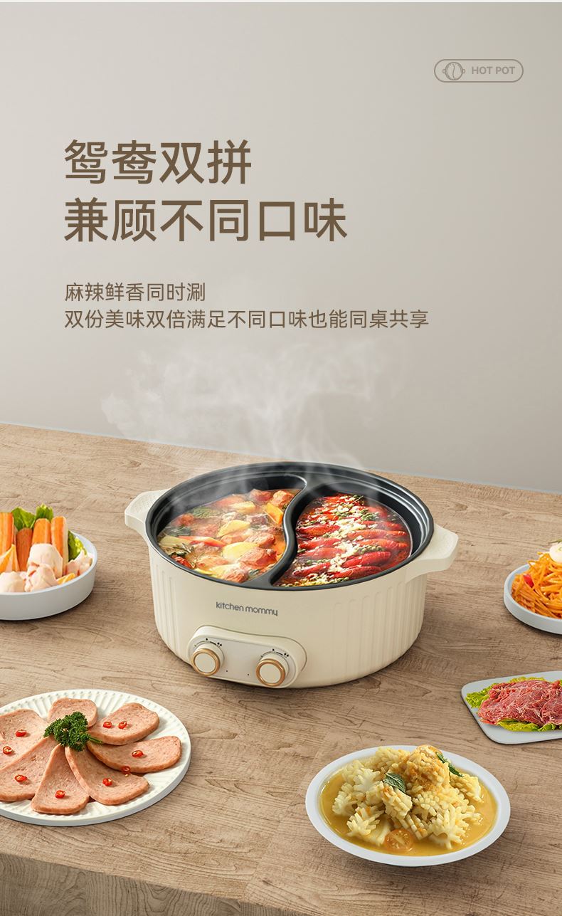 功率:2000W 电压:220V 容量:5L 毛重:2.5Kg 材质:外壳PP+食品级不粘水性涂层 彩盒包装尺寸:351*200*352mm 外箱包装尺寸:712*410*365mm 推荐理由: 1、5升大容量,满足全家所需 2、双开关分区独立控温,单独运作互不干扰 3、不粘锅内胆,清洗好方便 4、2000W大火力,更快沸腾更方便 5、全新升级,独立发热盘 6、自动控温检测,防干烧保护