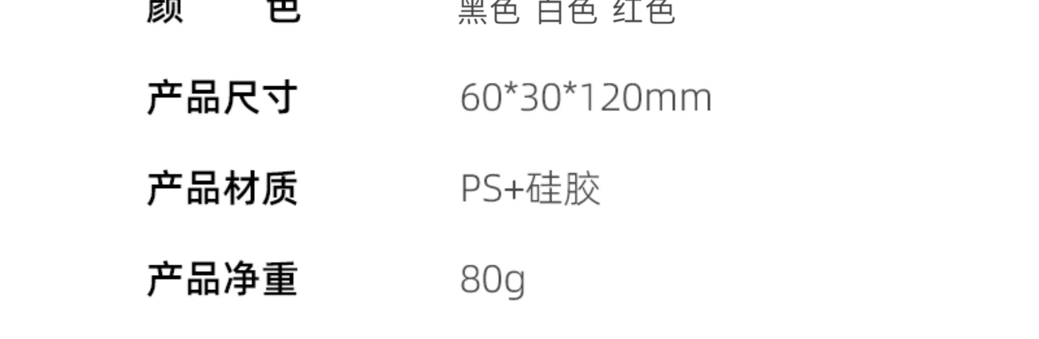 产品规格:6*2.9cm 材 质:ABS+锌合金+TPE+硅胶 颜 色:黑色 白色 红色 产品净重:88g 适用机型:手机