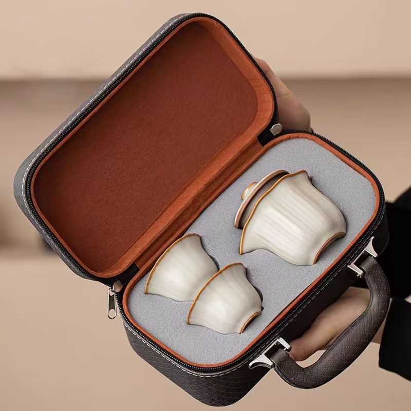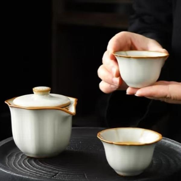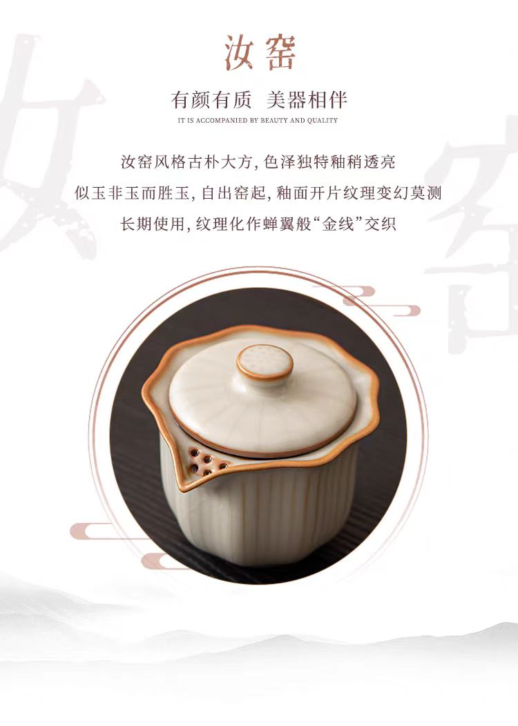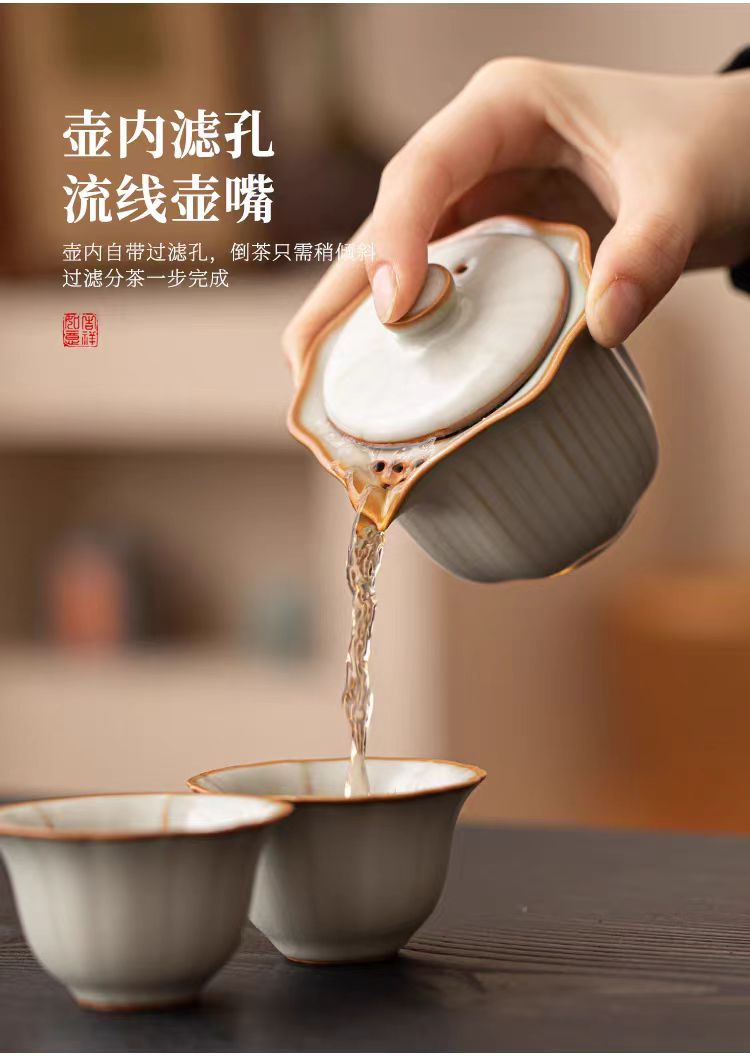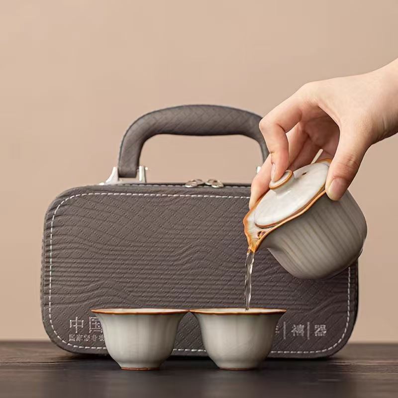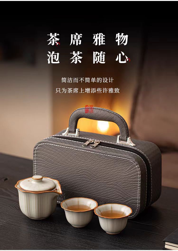 鹏翼亚黄汝窑旅行茶具