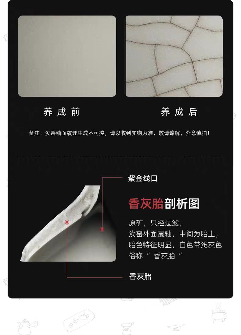 规 格:壶:9.8*8cm 杯7.1*4.2cm 配 制: 1壶2杯 1胡桃木茶盘 1旅行包 材质:黄汝瓷 胡桃木 皮箱 推荐说明:亚黄汝瓷,玛瑙入釉,蝉翼开片,家有千财万贯,不如汝窑一片。技术新品,采用高价优质瓷土,紫口铁足,瓷质上乘。立体浮雕杯身。杯身开片,可养瓷。