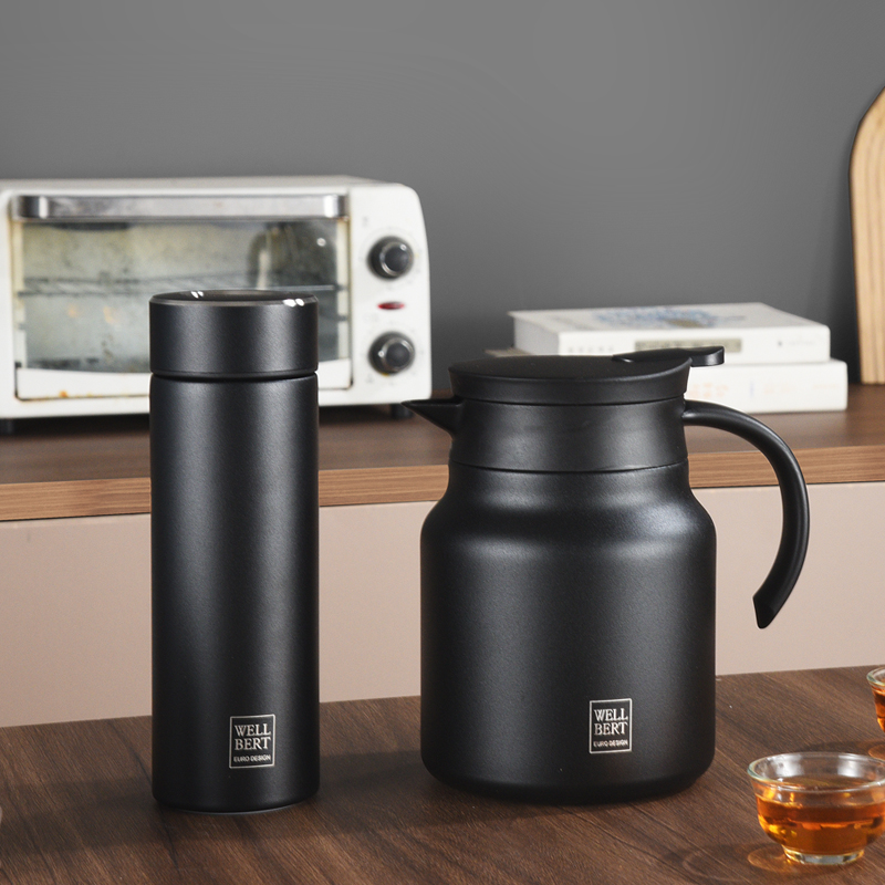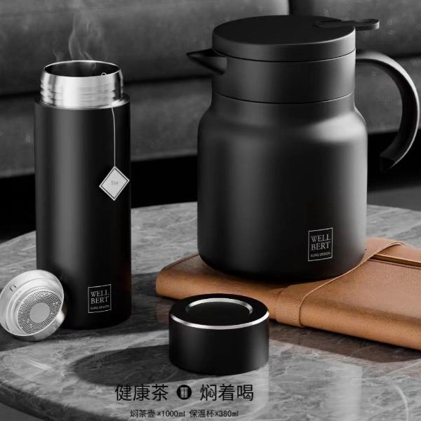 产品容量:保温杯 380ml ,焖茶壶 1000ml. 产品材质:304不锈钢 304不锈钢内胆,食品级硅胶材质,喝水更健康。 一键按压出水,单手可操作,省时省力。 可拆卸式茶仓,茶水分离,闷茶更方便。 V型壶嘴,宽大口径,弧形手柄,小巧壶身,更显精致生活。