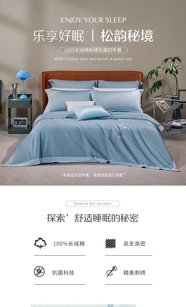 水星家纺100s刺绣全棉四件套松韵秘境220×240cm