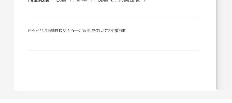 面料:棉 被套:220cmx240cmx1 床单:270cmx250cmx1 枕套:48cmx74cmx2