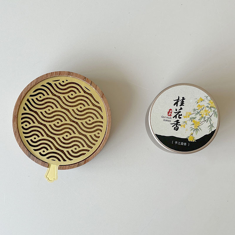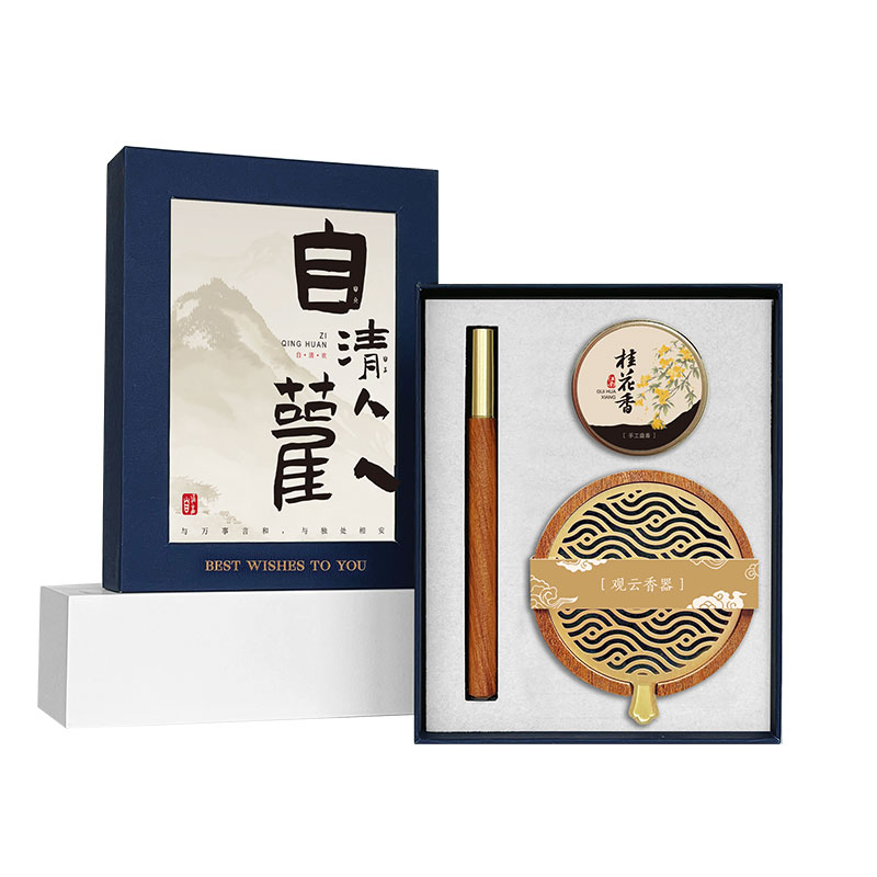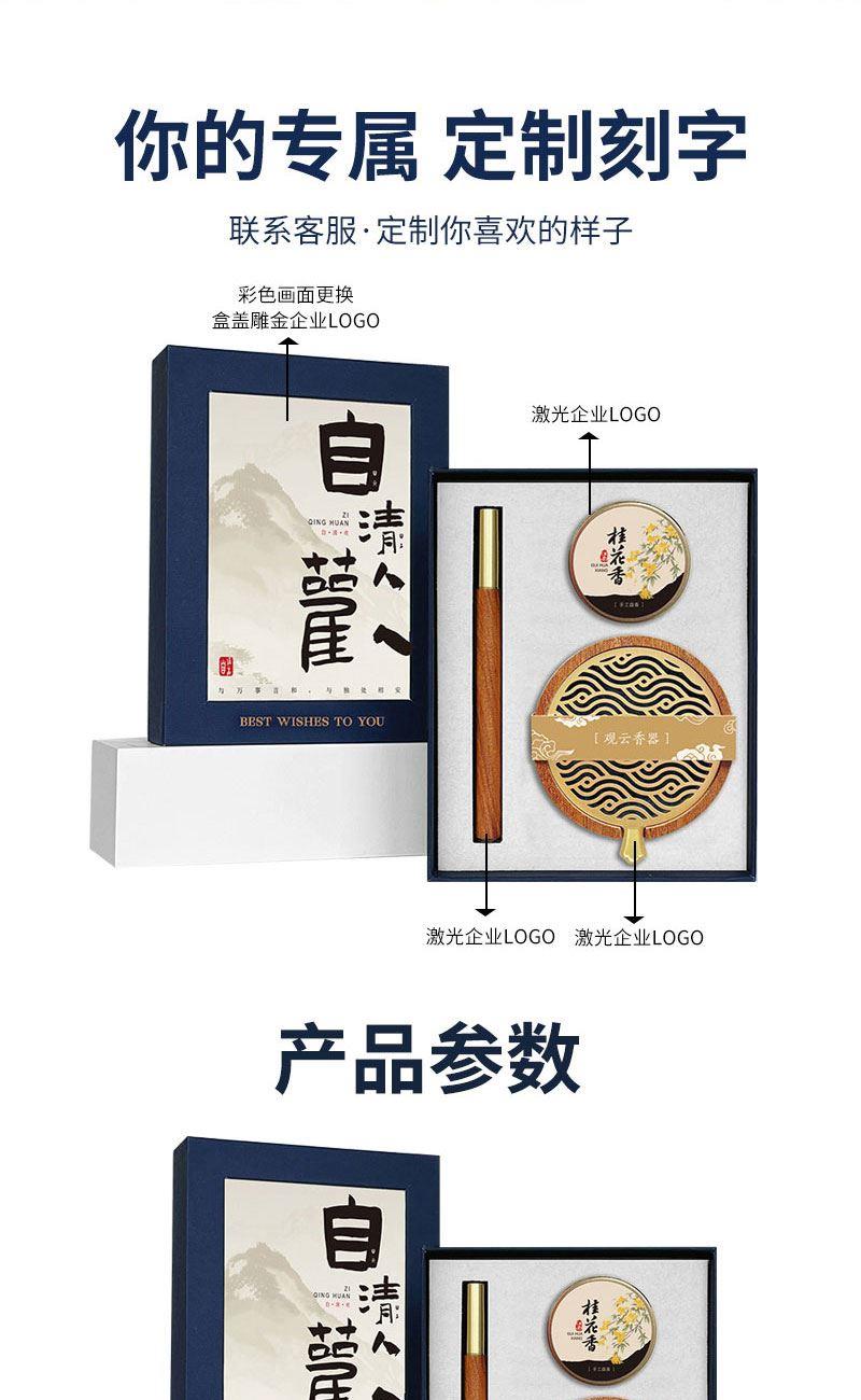 ❶ 红木签字笔 尺寸:13.5*1cm 0.05cm笔芯 ❷ 手工盘香 纯手工龙桂香 规格:20片 ❸ 香炉 材质:黄铜+木