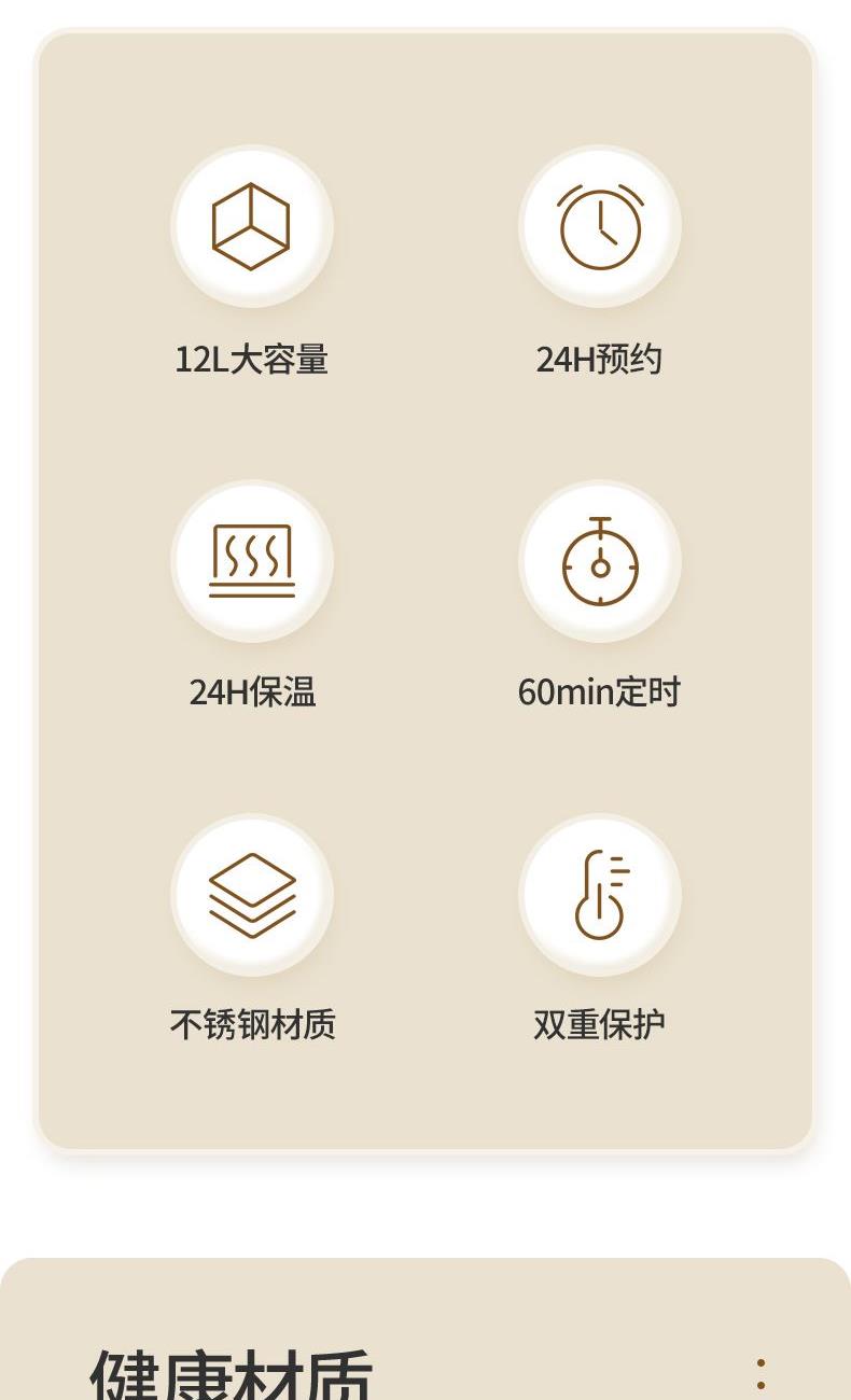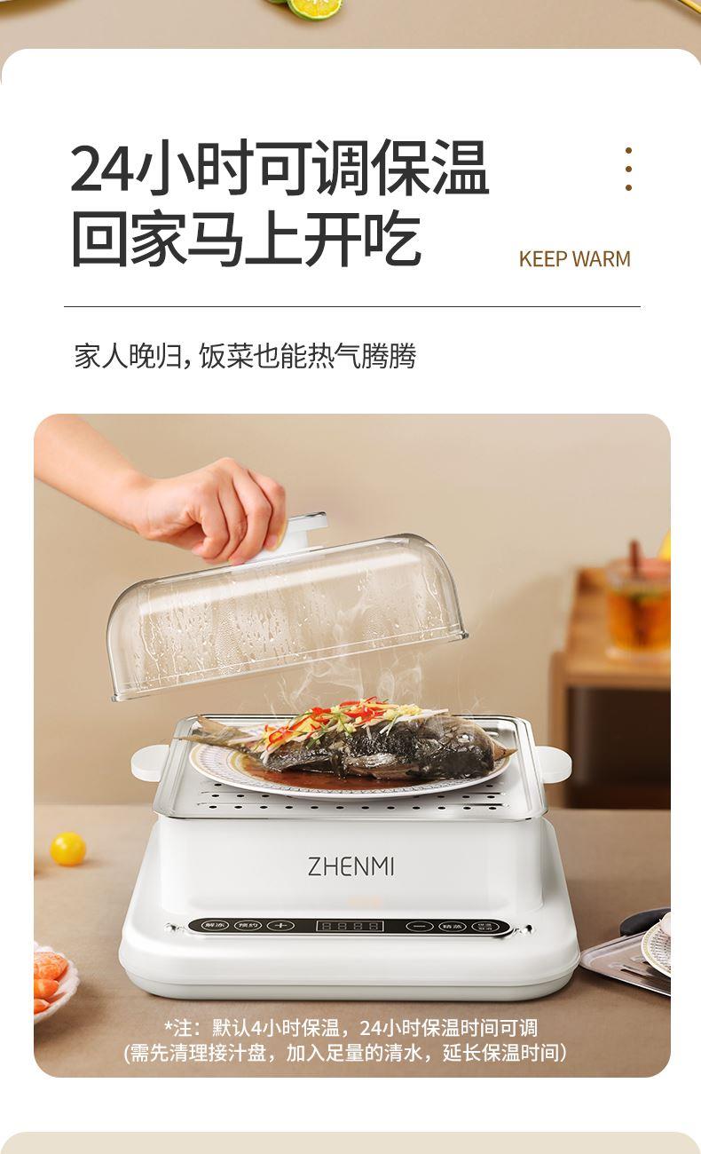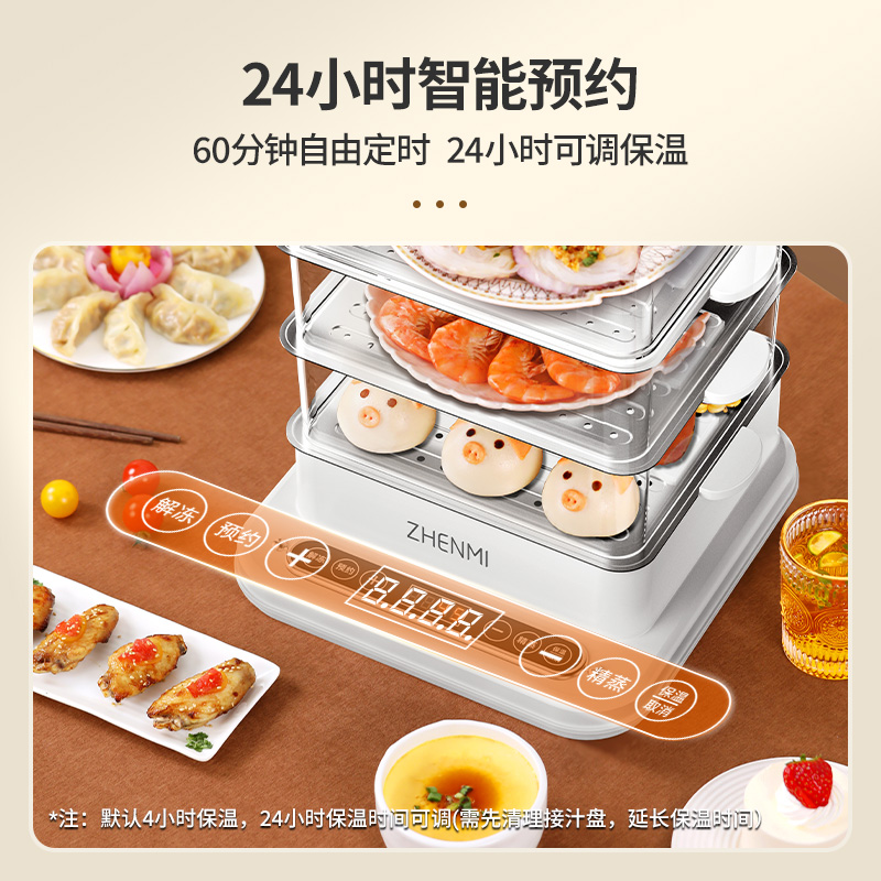24H智能保温,客人晚到无需担心;(默认保温4H,根据需求,请清理接汁盘,加水后延长保温时间)