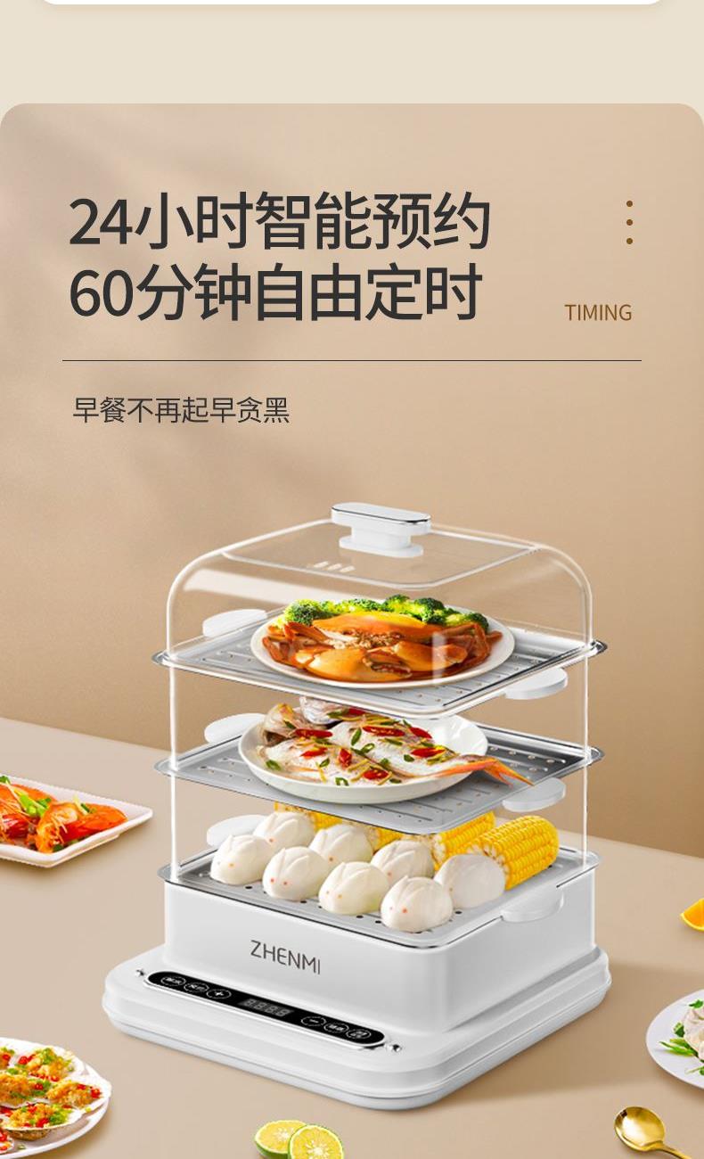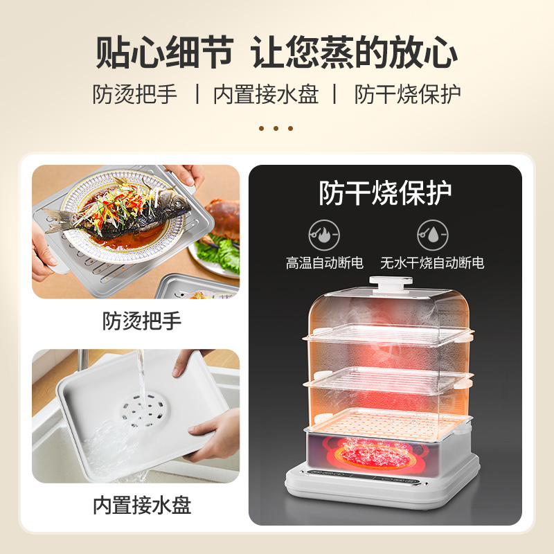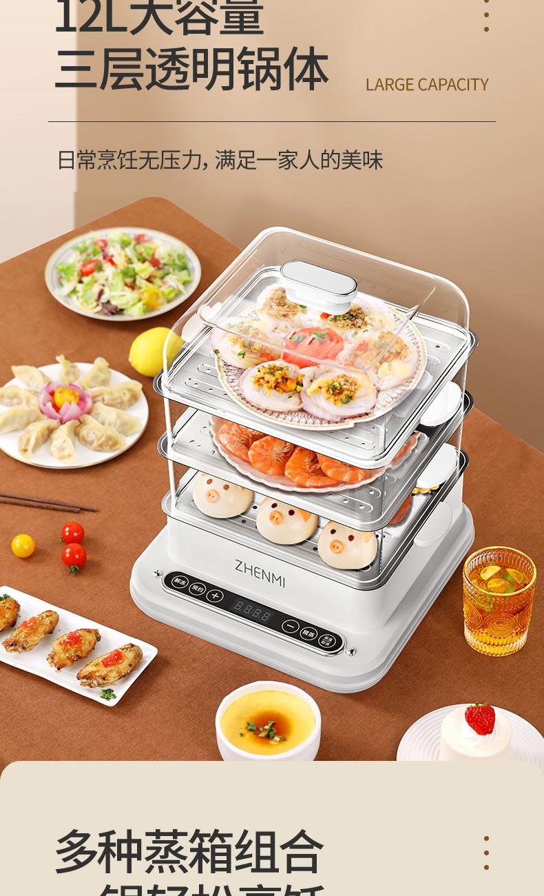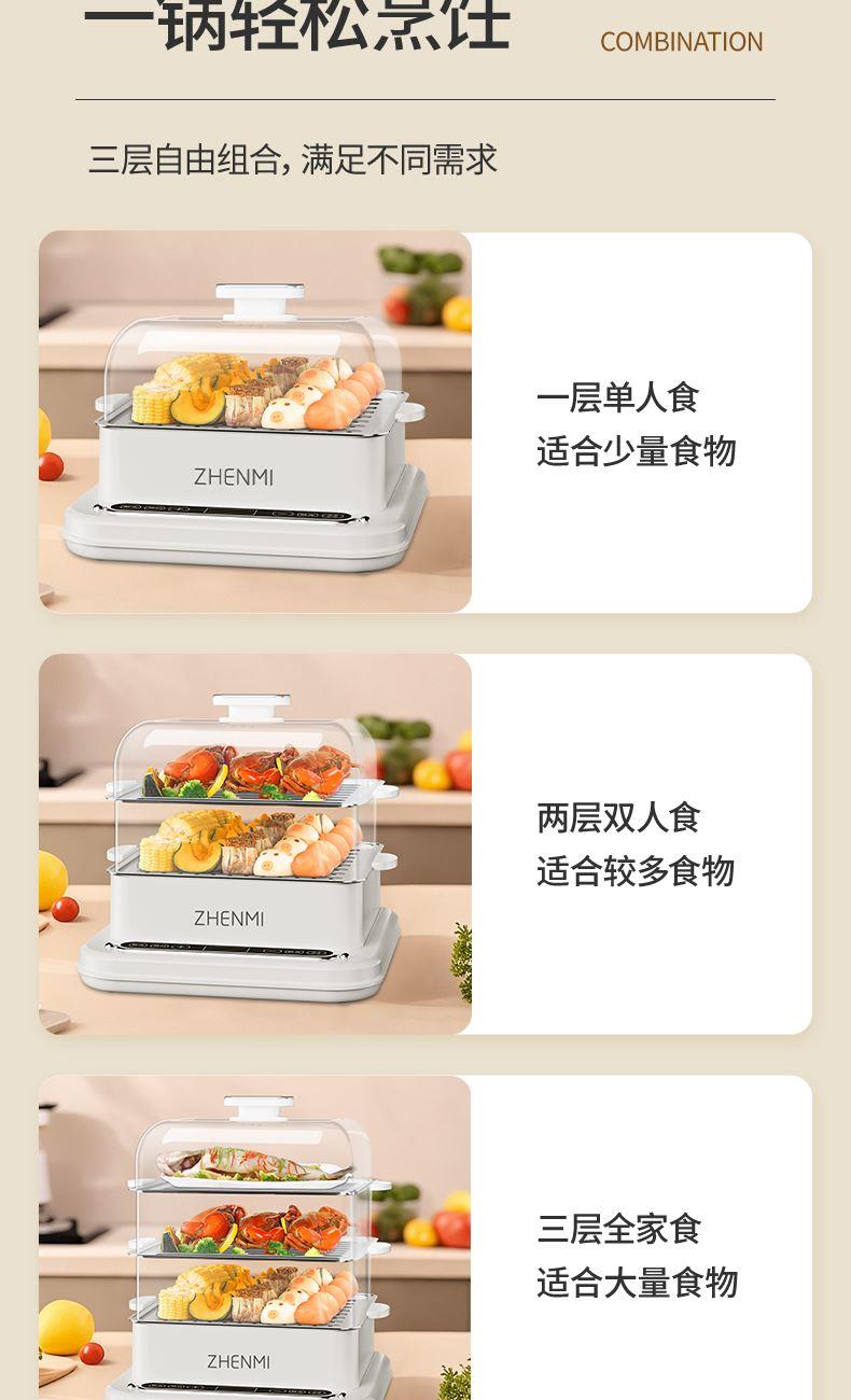 8L双层或者12L三层层蒸笼,自由组合,多种食物同时蒸煮;