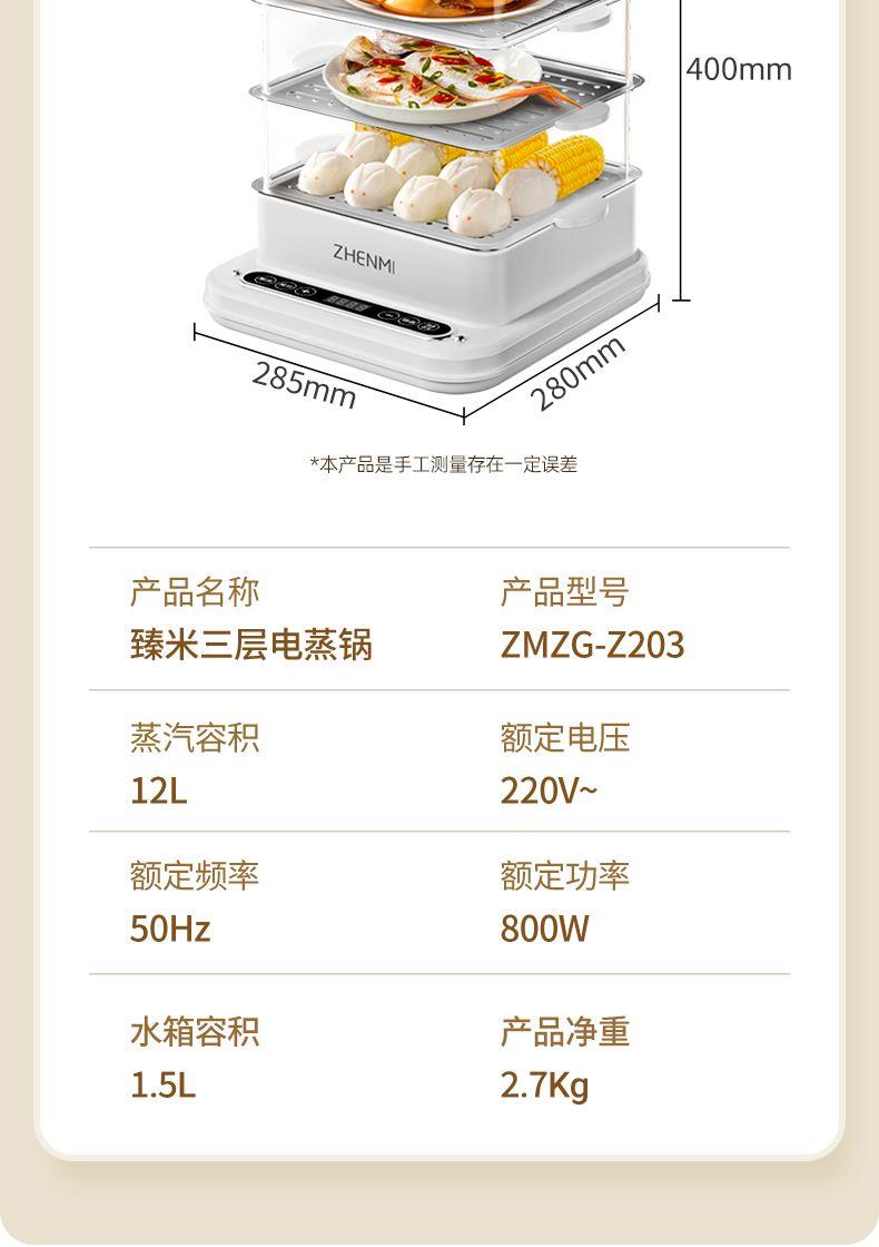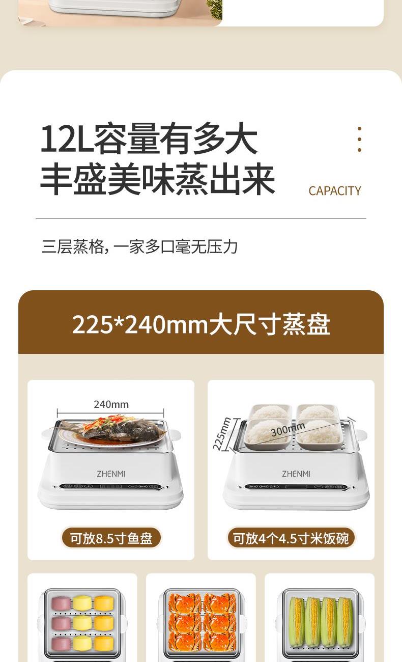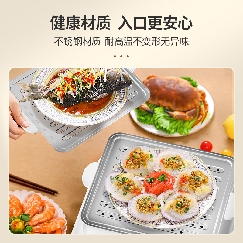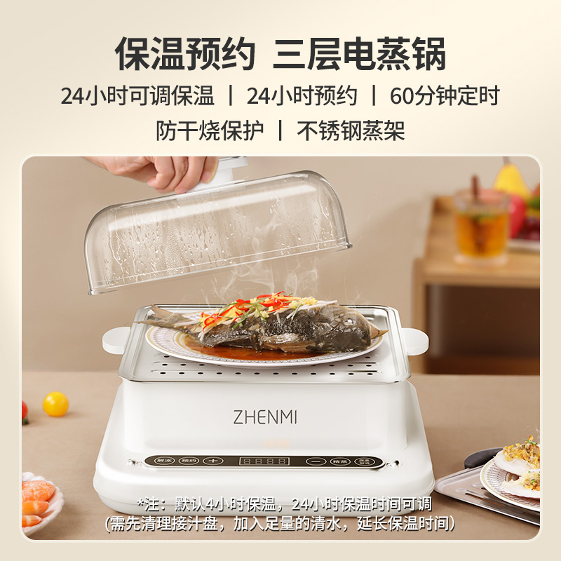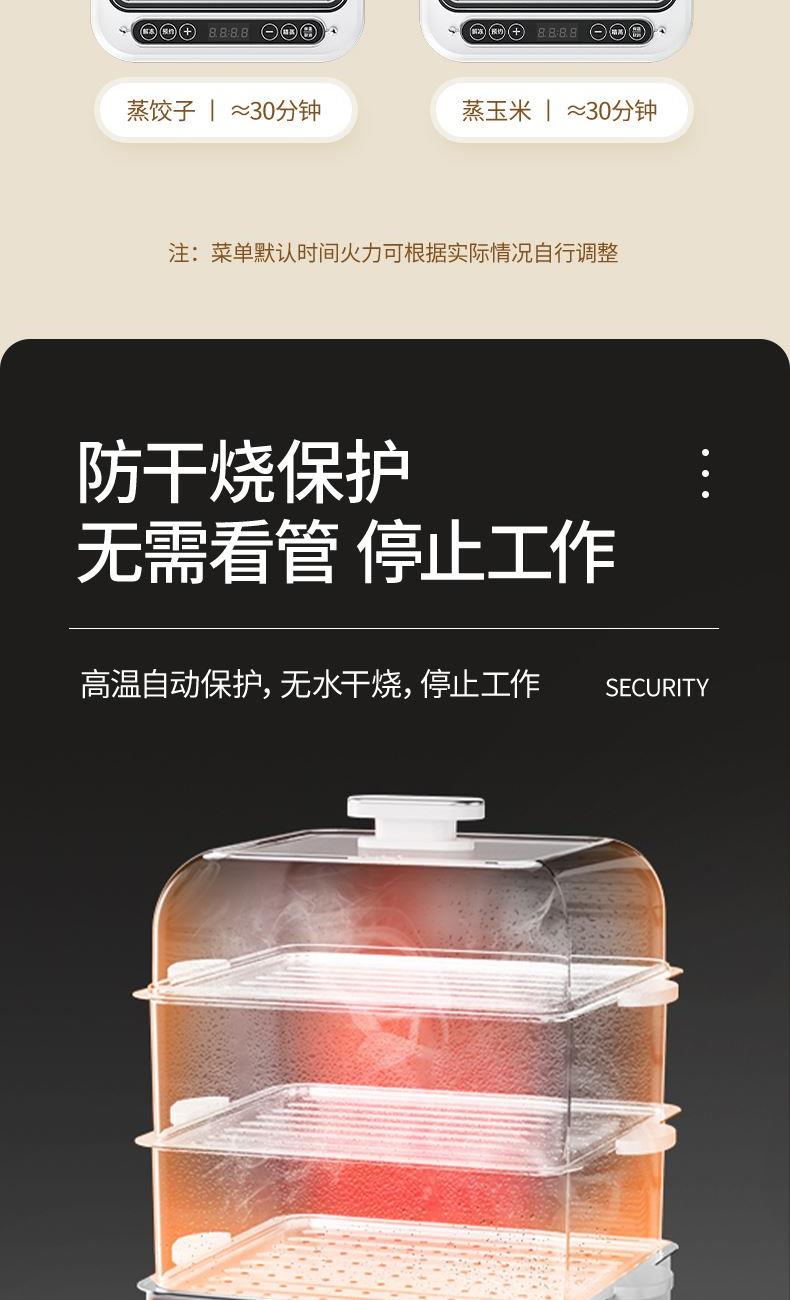 8L双层或者12L三层层蒸笼,自由组合,多种食物同时蒸煮;