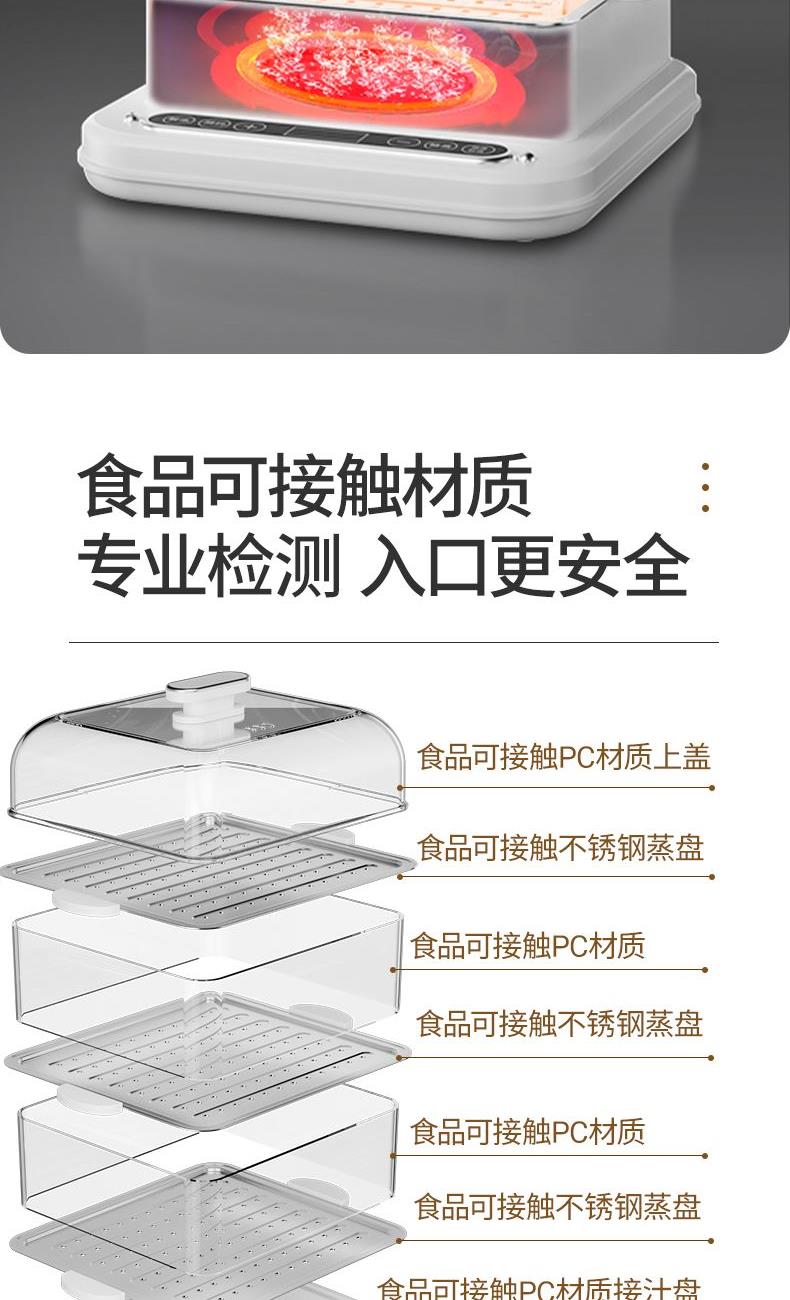 430食品级不锈钢蒸盘+PC食品级高透可视蒸笼,不仅健康又可以实时观察食物状态;