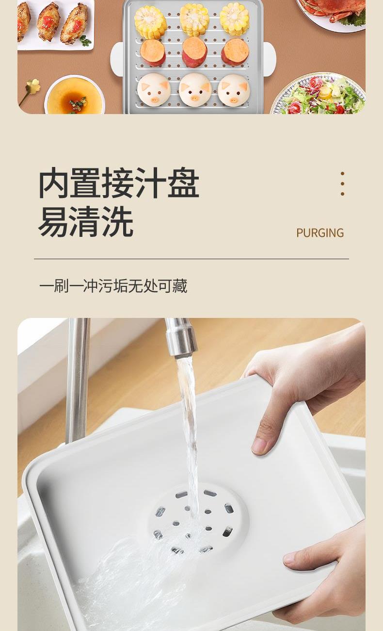 聚能环&接汁盘二合一贴心设计,高效聚拢蒸汽同时减轻清洗烦恼,有效减少油脂滴水箱;