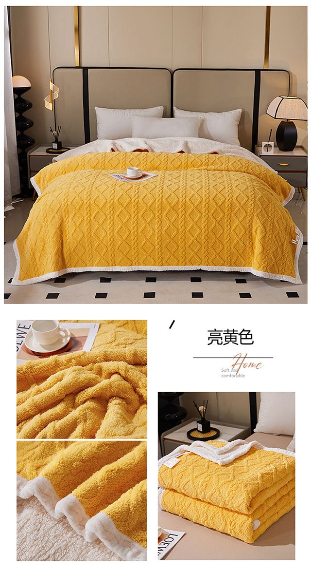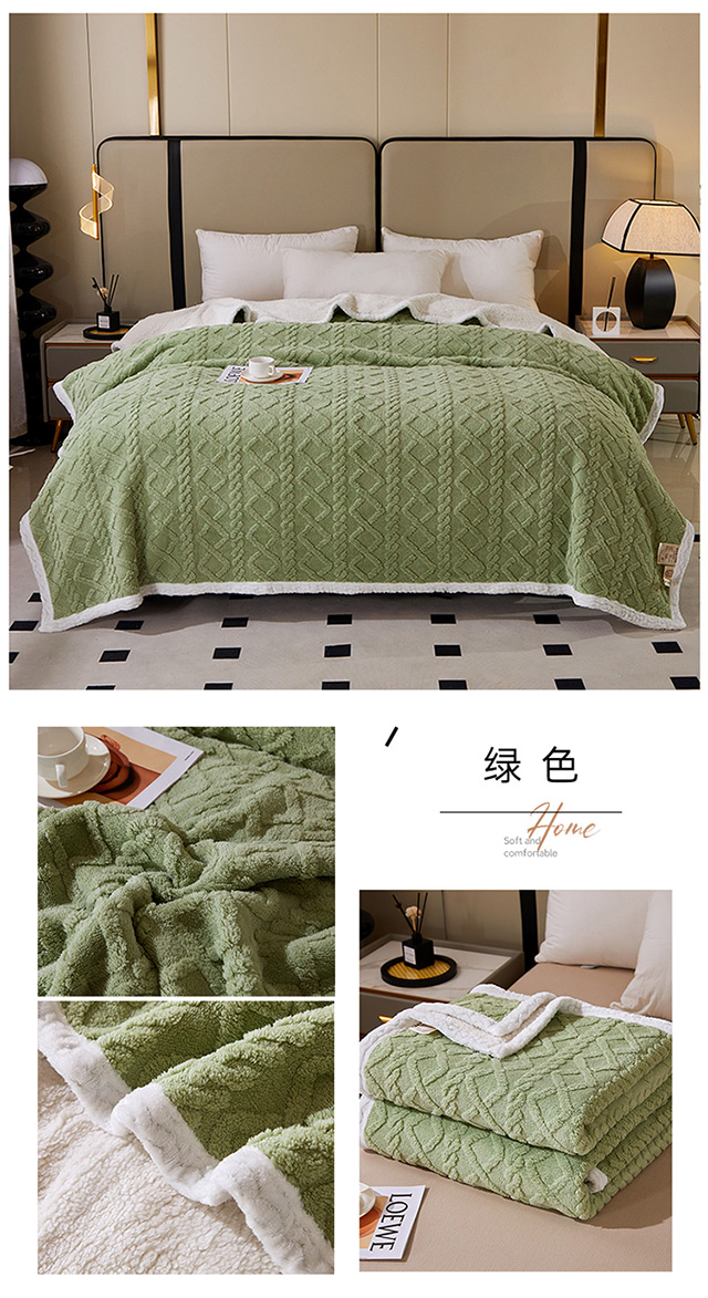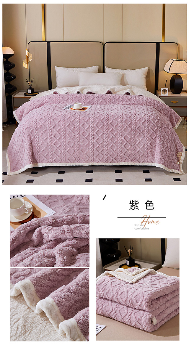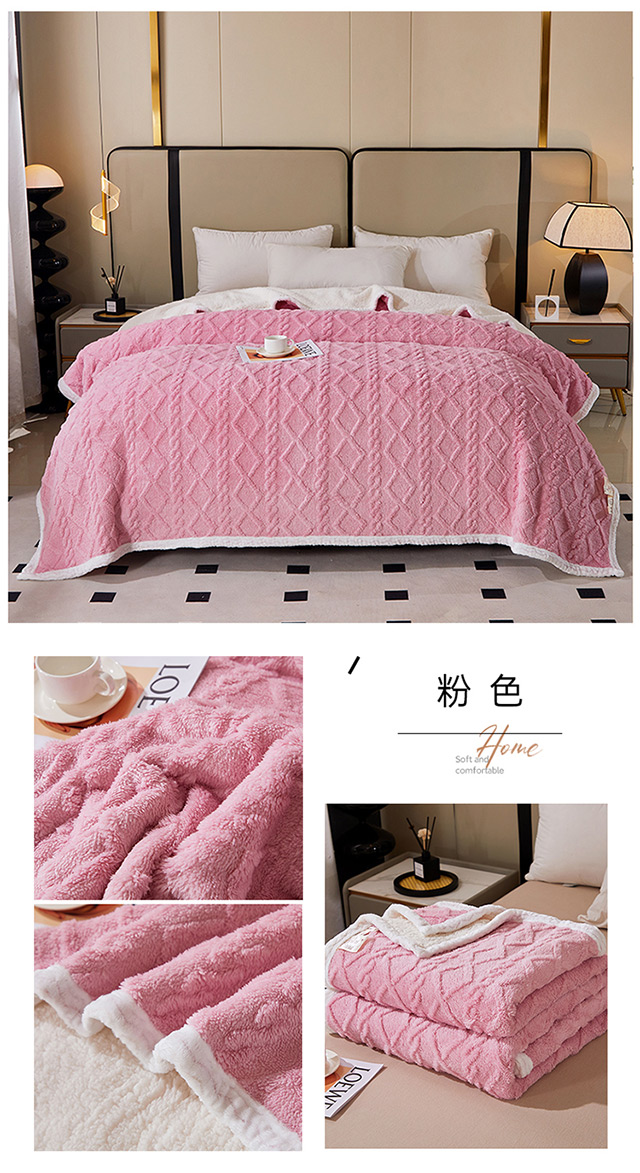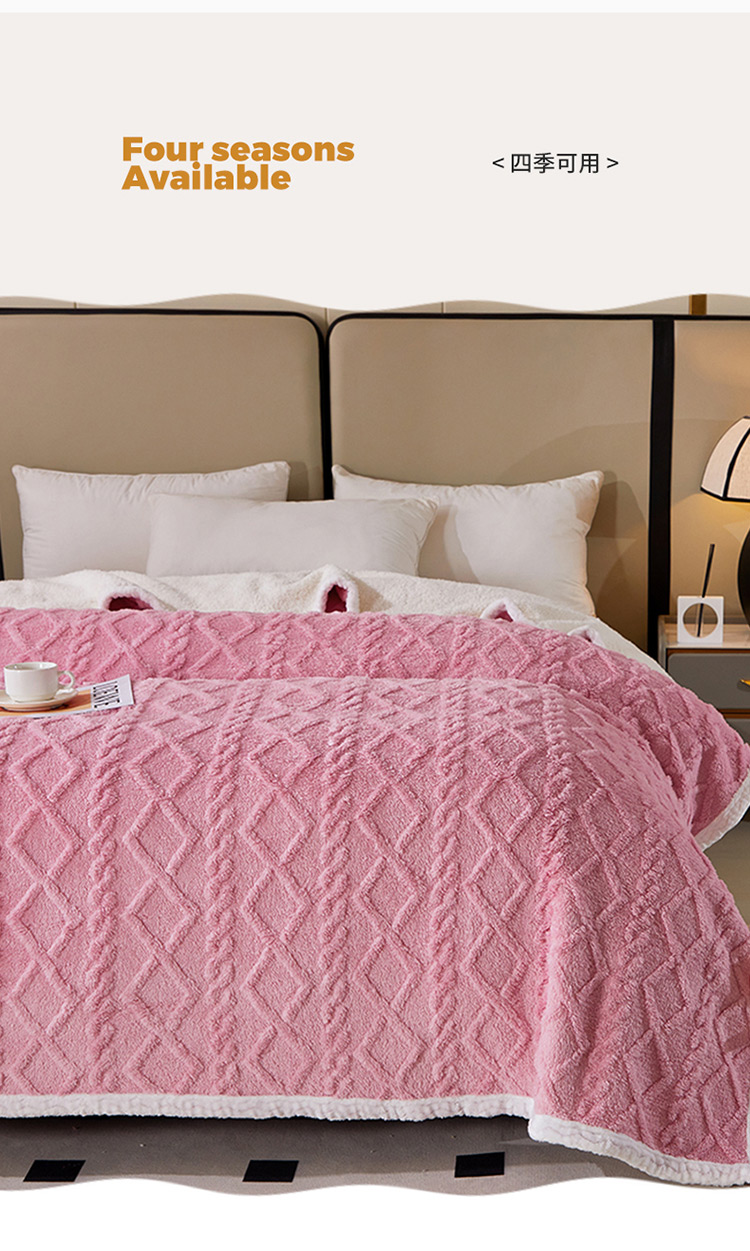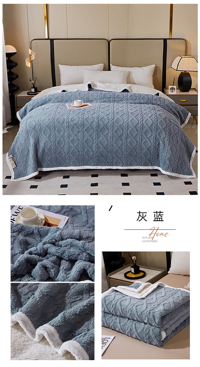 面料:A版:塔芙绒 B版:羊羔绒 规格:150*200cm 一款多用:午睡毯、车用毯、沙发毯、披肩、床用被单等等,时刻感知你的温度,给你加倍温暖。面料中植入导电丝,告别静电烦恼。面料采用活性印染技术,安全不褪色,有颜值更舒适.
