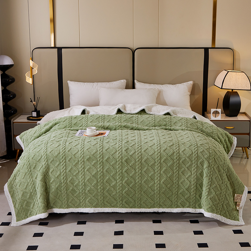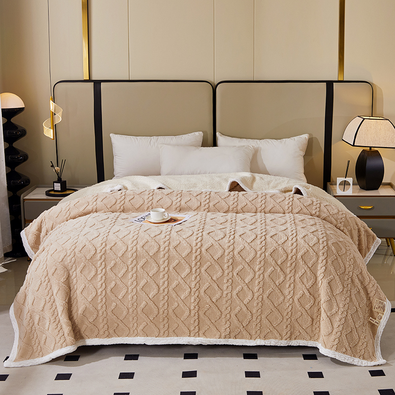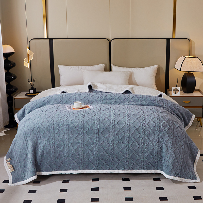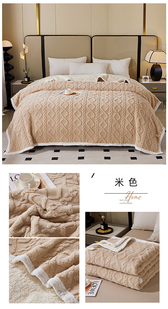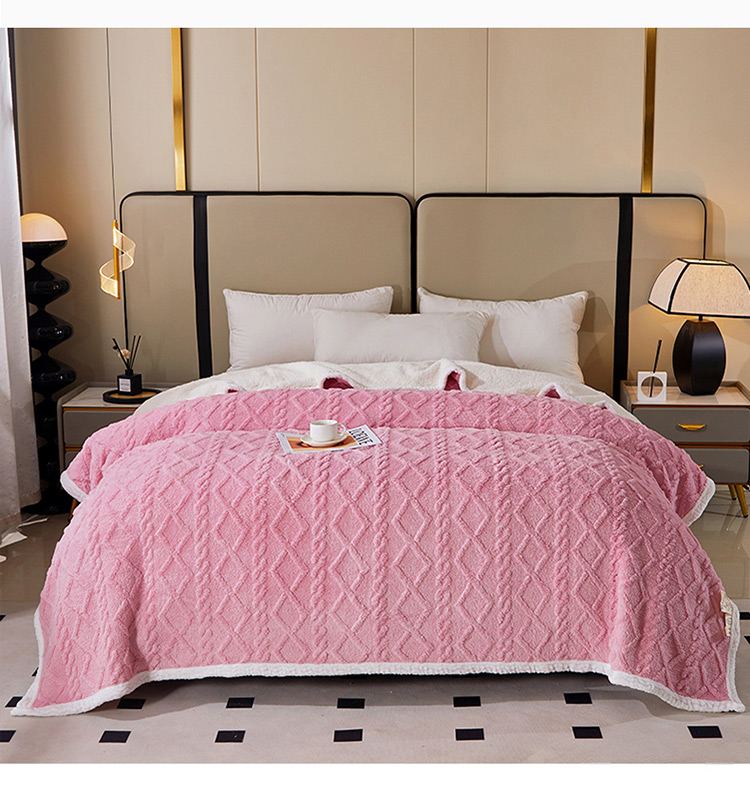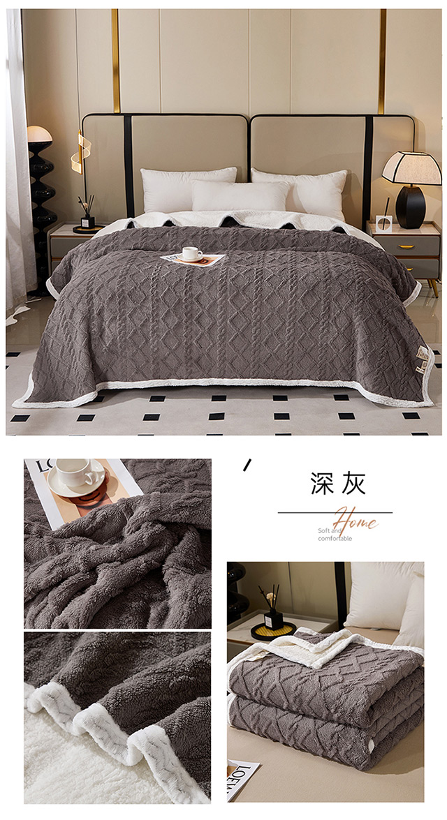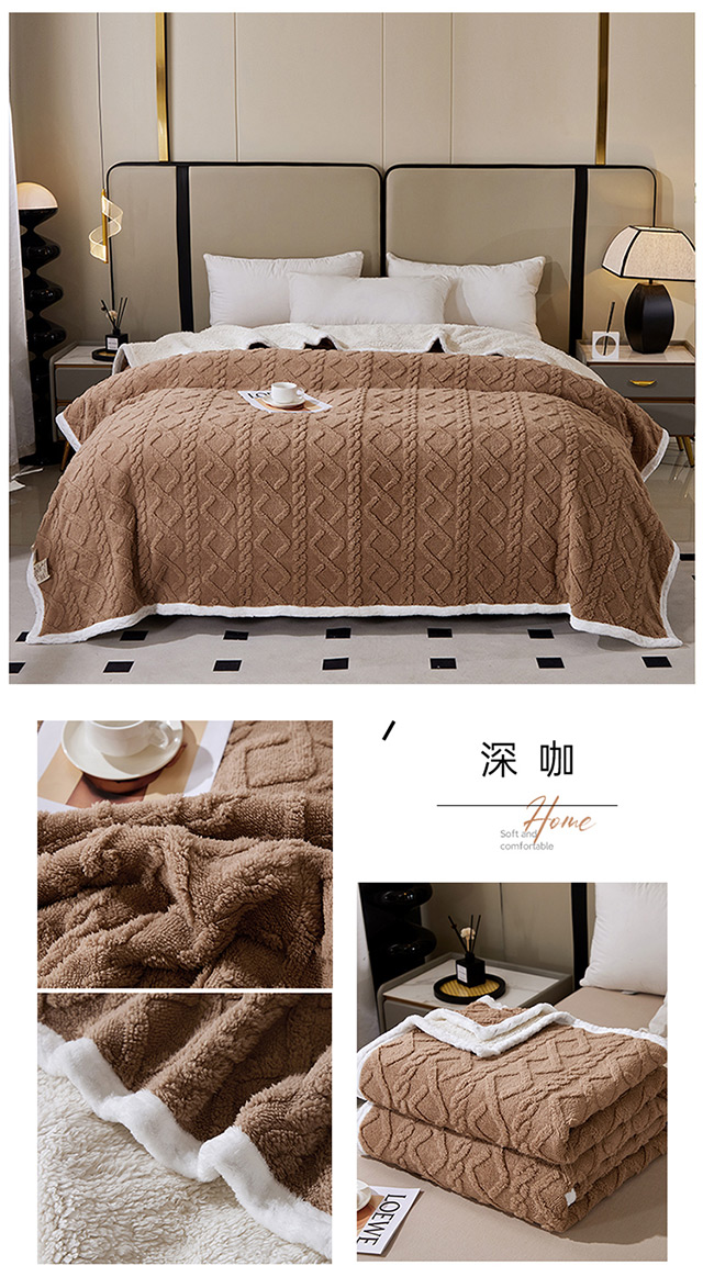 面料:A版:塔芙绒 B版:羊羔绒 规格:150*200cm 一款多用:午睡毯、车用毯、沙发毯、披肩、床用被单等等,时刻感知你的温度,给你加倍温暖。面料中植入导电丝,告别静电烦恼。面料采用活性印染技术,安全不褪色,有颜值更舒适.