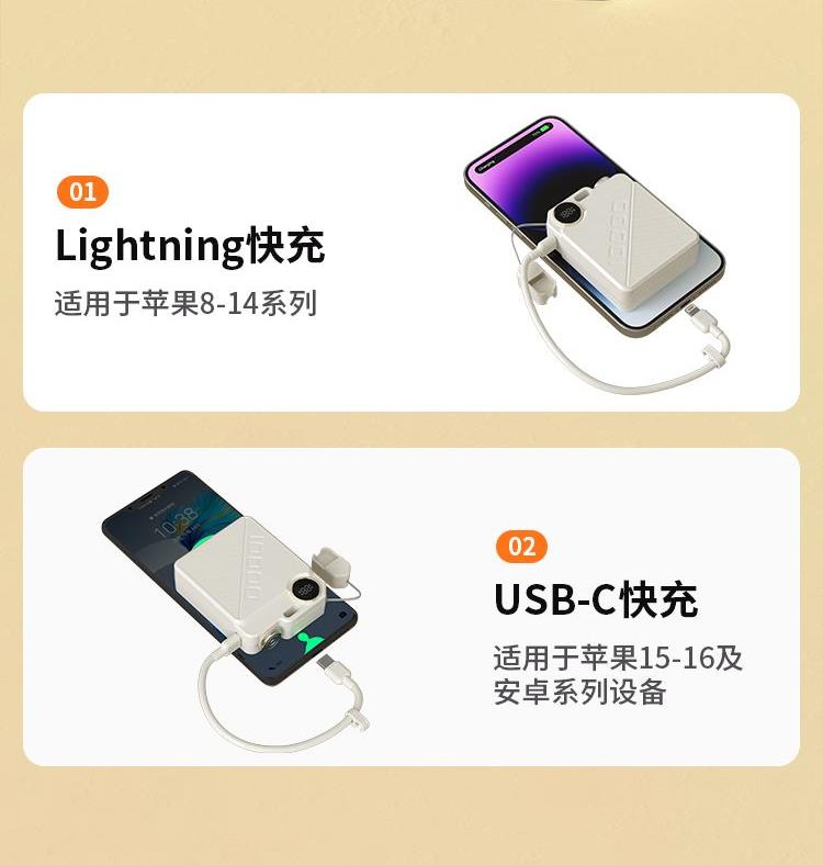 挂绳式快充数据线、USB-C & lightning端口双向快充