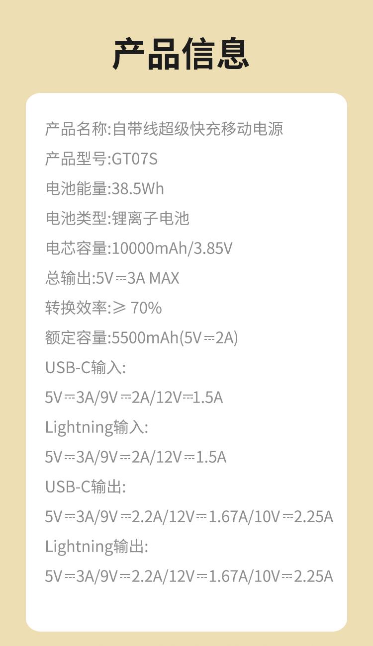 新科自带线超级快充移动电源10000mAhGT07S