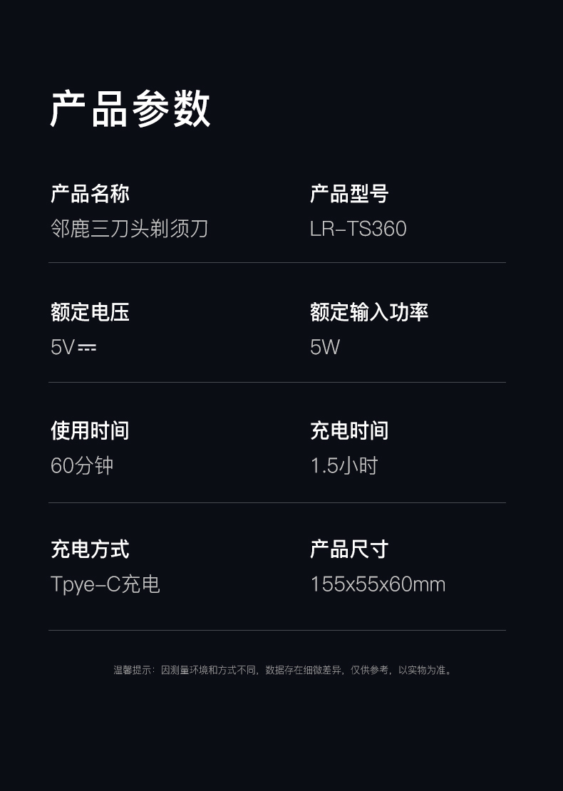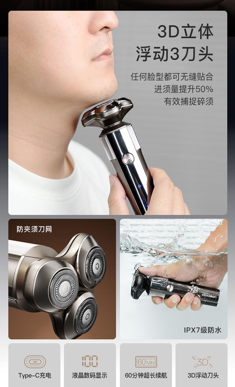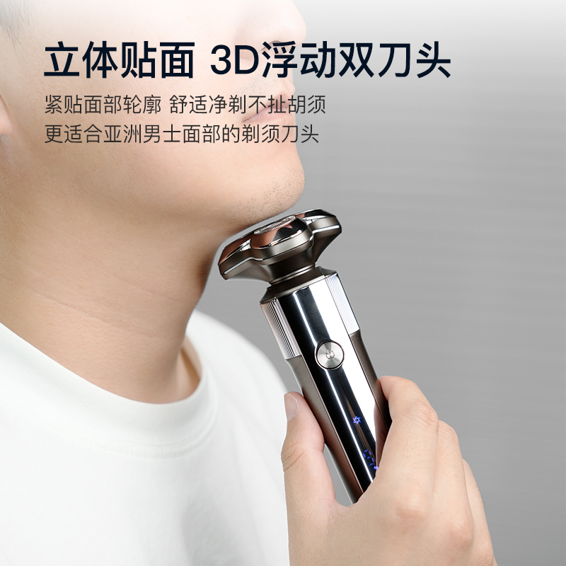 1、高清数码显示电量,实时充电显示 2、IPX7 全身水洗,干湿双剃 3、磁吸刀头设计,拆卸清洗方便 4、1 小时快充,60 分钟超长放电时间 5、环保恒压锂电池,Typec-C充电,即插即用 6、双环贴面刀网,剃须更顺滑 7、3D 浮动刀头,智能防夹须 8.高速电机,9000 次/分钟,动力强劲 礼盒包装+精美绒布收纳袋