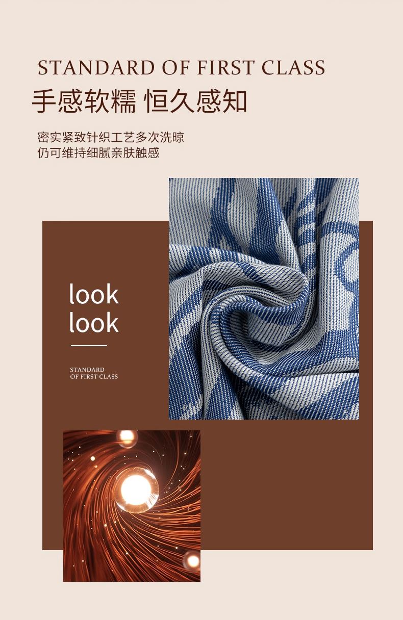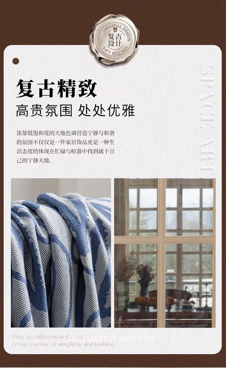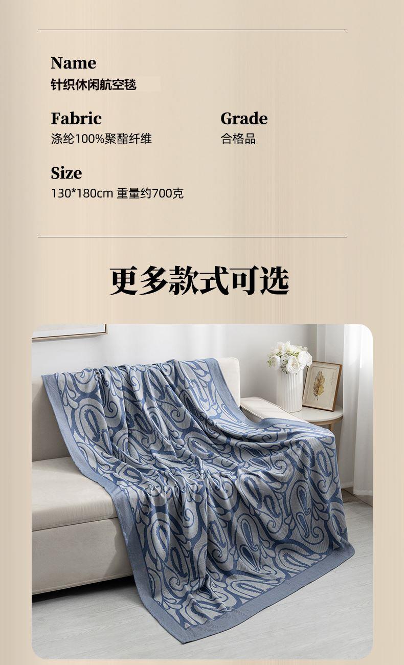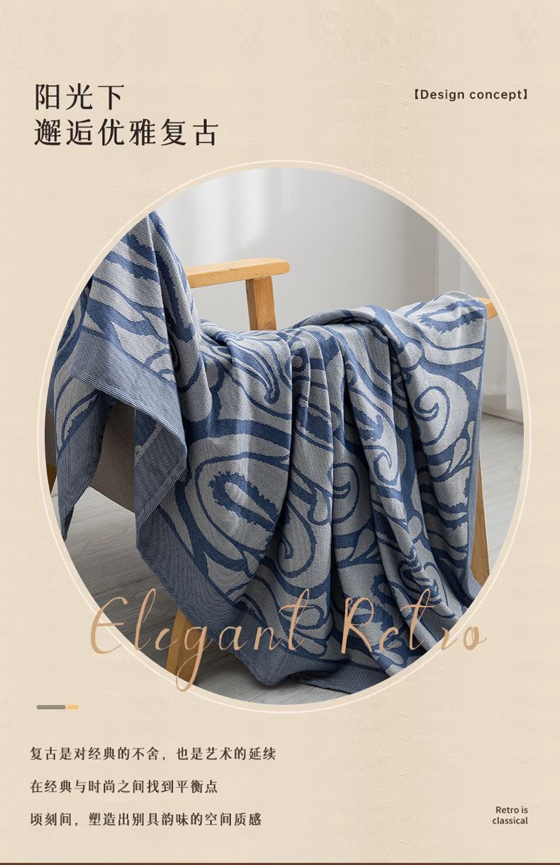 面料:聚酯纤维 规格:180cm*130cm 柔软舒适,吸湿透气,一毯多用。复古是对经典的不舍,也是艺术的延续,在经典与时尚之间找到平衡点顷刻间,塑造出别具韵味的空间质感。