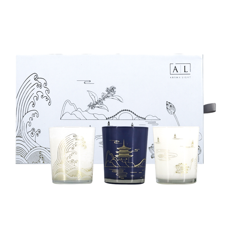 香薰蜡烛:65g*3 尺寸:长 24cm 宽14cm 高7cm 香味描述:钱江潮 满陇桂雨 清新西湖