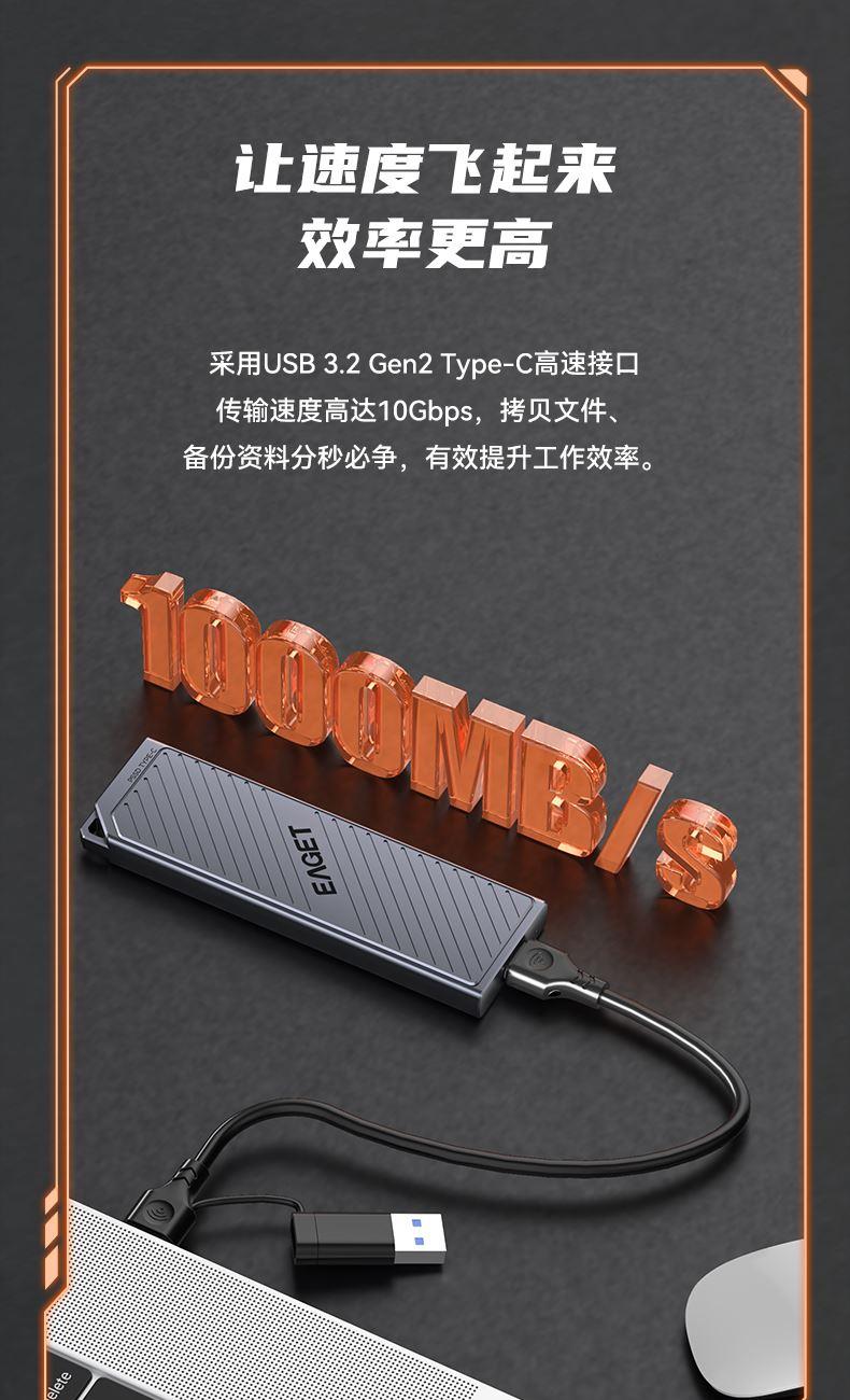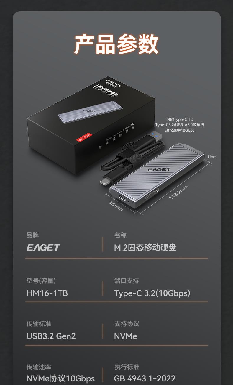 • (EAGET)忆捷NVME固态硬盘HM16外接存储硬盘1T