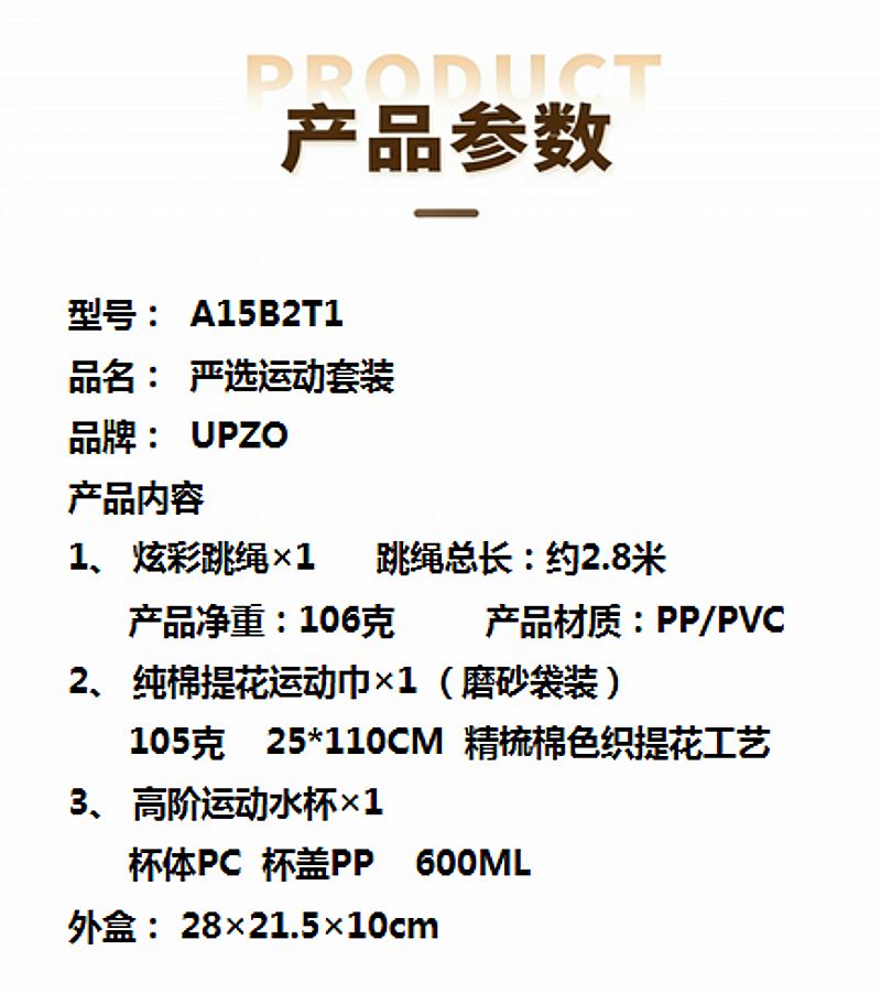 2、 纯棉提花运动巾×1 (磨砂袋装)
