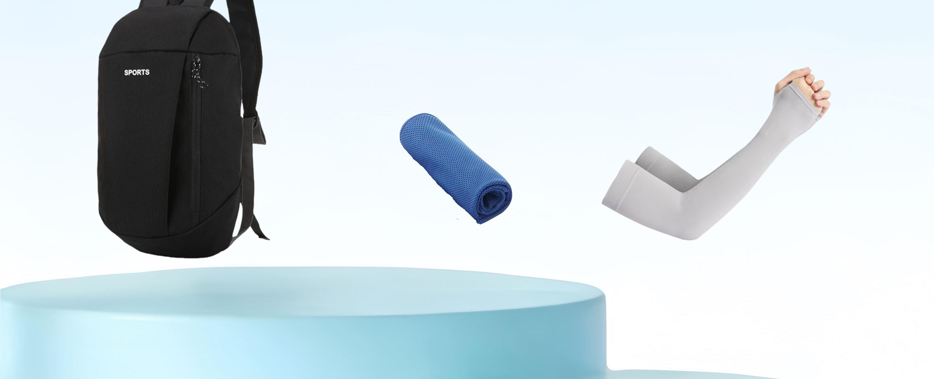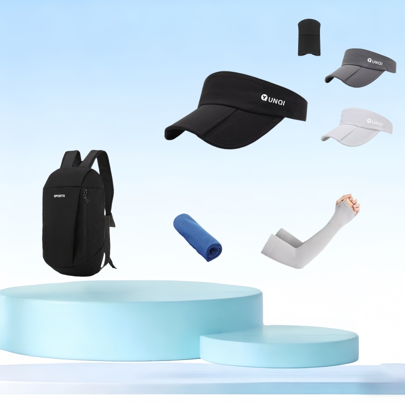 材质:帽子:冰丝聚酯纤维 冰袖:锦纶氨纶 背包:聚酯纤维 运动巾:冰丝聚酯纤维 规格: 帽子:55-60cm 运动巾:100*30cm 160g 冰袖:均码 组合形式:(防晒帽背包冰袖运动巾)