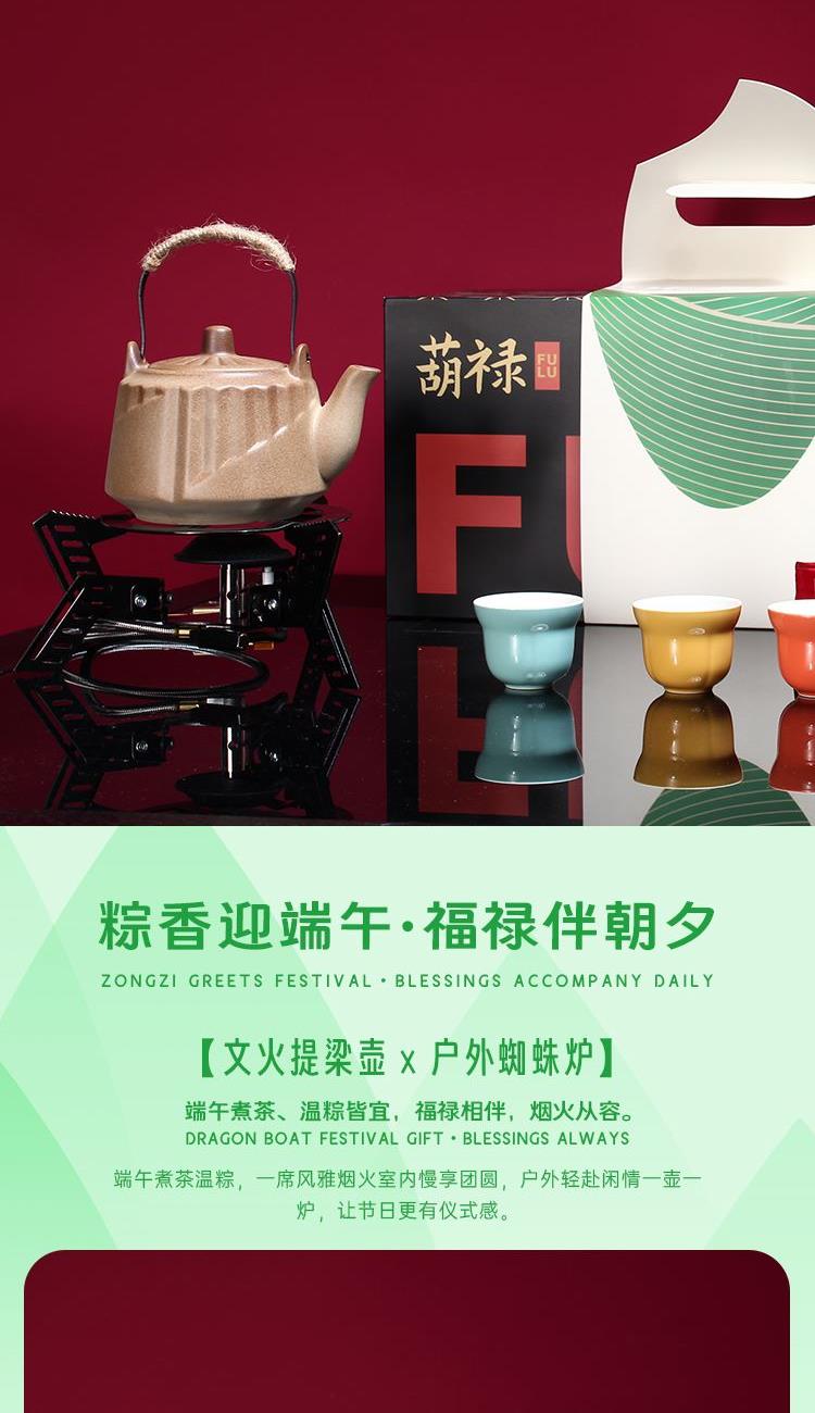 青锦端午煮茶温粽文火提梁壶陶瓷茶壶户外便携蜘蛛炉露营茶具礼