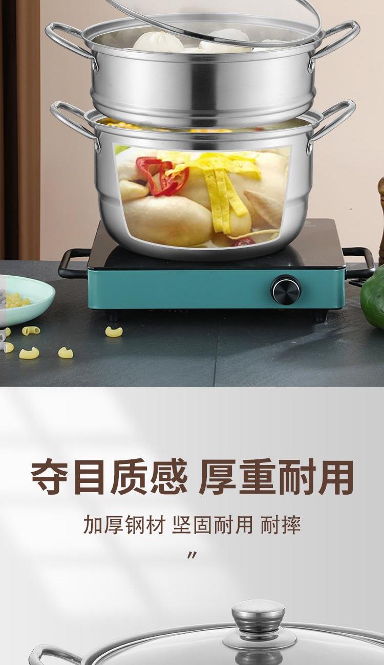 【材 质】: 不锈钢 【规 格】: 28cm 【彩盒尺寸】 33*17*28cm 【外箱尺寸】 68*53*58cm 不锈钢汤锅采用优质不锈钢材质,具有优异的耐腐蚀性和耐高温性,能够长时间保持表面光洁如新,不易生锈或变形。其材质特性使其在长期使用中依然坚固耐用,适合频繁的烹饪需求 不锈钢材质稳定性强,不易与食物中的酸碱成分发生化学反应,无毒无害,适合长时间炖煮汤类。此外,其表面光滑不易残留污渍,清洁方便,可有效避免细菌滋生,保障饮食安全