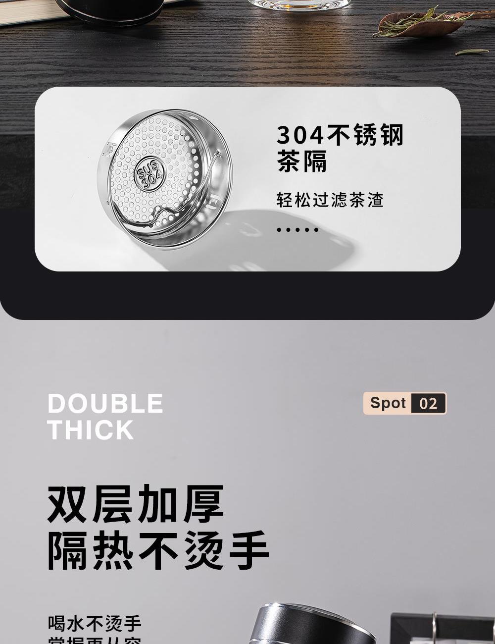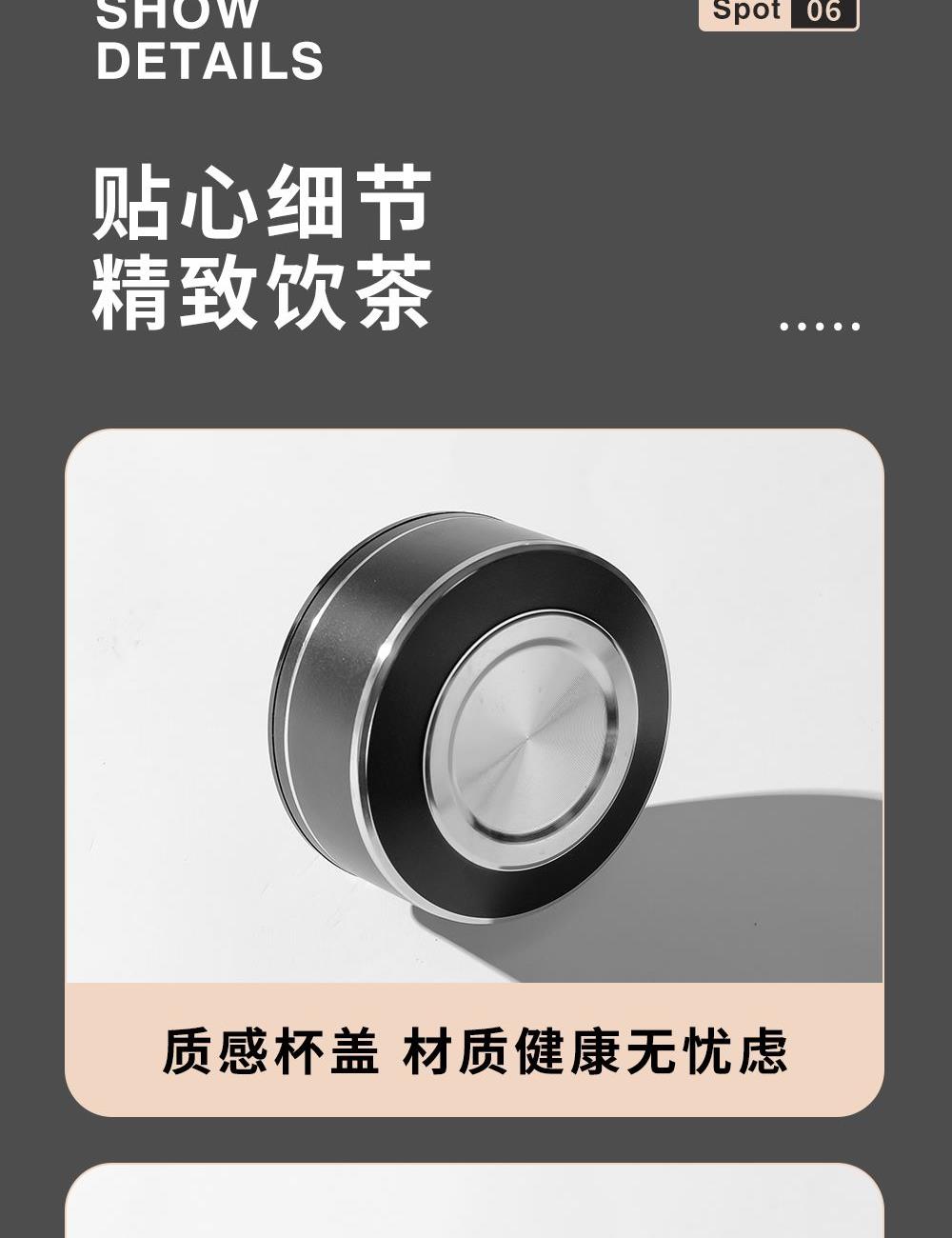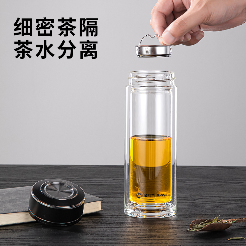 容量:360ml 颜色: 灰色 黑色 蓝色 材质:杯盖采用304不锈钢电镀配色+食品级PP材料,304不锈钢内芯。 杯体采用双层高硼硅玻璃,杯底手工加厚烧制一体成型。 加厚食品级硅胶密封胶圈,升级防漏品质。 包装:单瓦盒