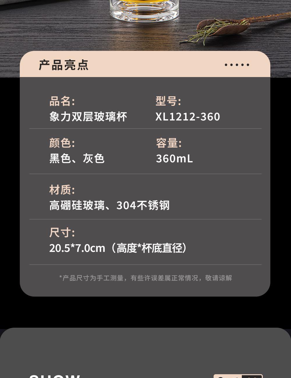 象力铭仕双层玻璃杯XL1212-360
