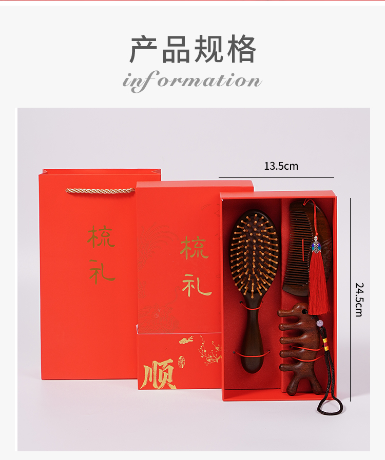 甜蜜点檀木梳子实用生日礼物女士实用伴手礼套装W5053