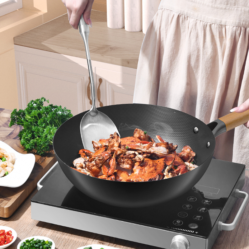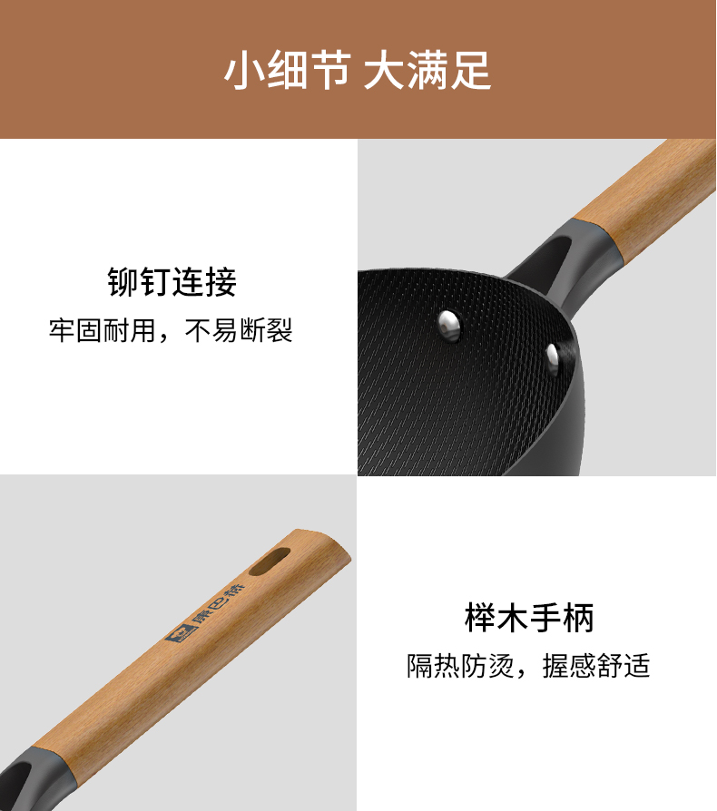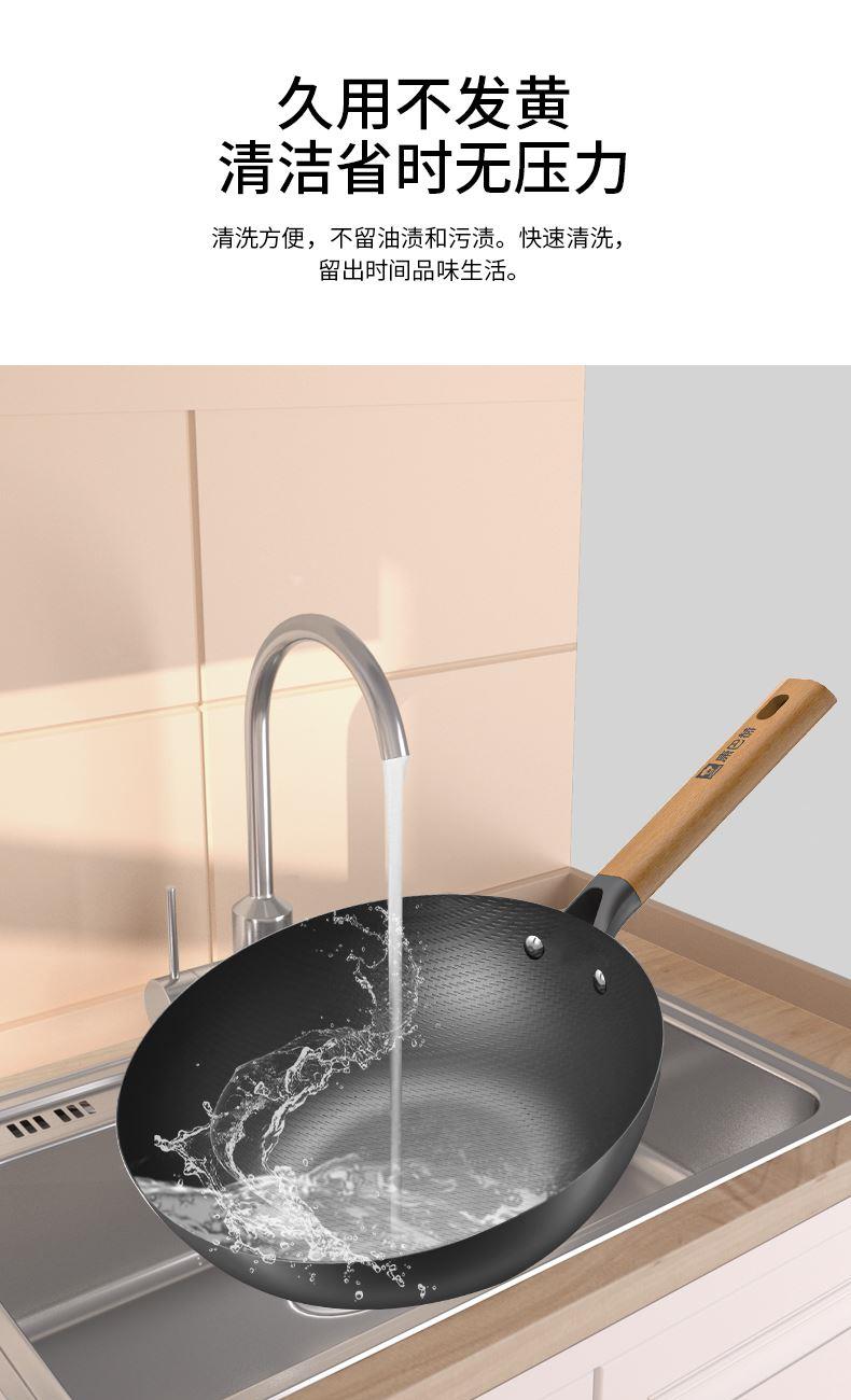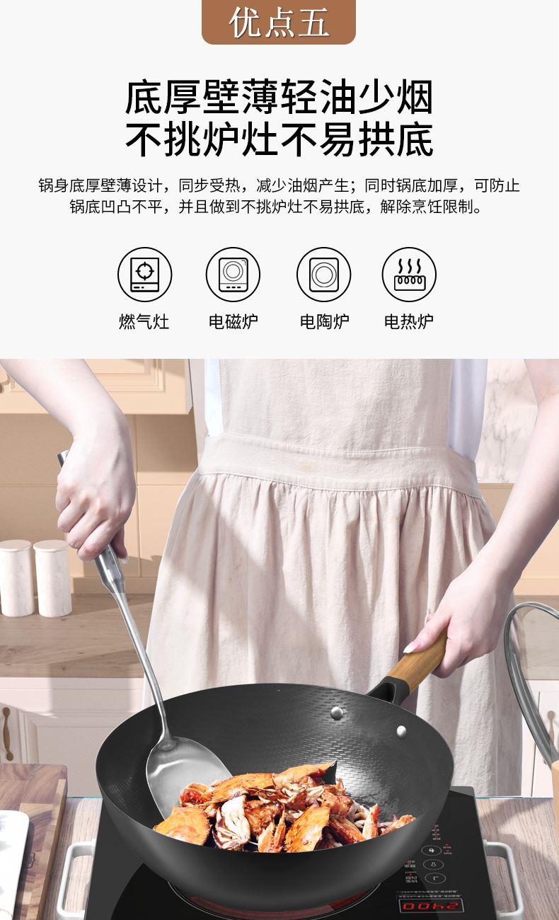 规格:32cm 重量:2.6kg 包装尺寸:54.5*36*79.8cm ◎甄选精铁材质,不添加任何化学涂层,不析出有害物质,没有涂层脱落风险,安心每一餐。 ◎高温氮化工艺耐磨耐锈不惧钢铲:锅身采用渗氮处理新型技术,提高了铁质硬度和密度,大大增强铁锅防锈能力,无需过多担心铁锅生锈危害身体健康。 ◎铁锅在正确开锅后,铁锅表面会形成油膜,越用越不粘,使用更健康,炒菜地道有锅气。 ◎轻量化锅胚设计,重量低于传统铁锅,女生也能单手颠锅,轻盈精铁锅体,轻松烹饪。 ◎底部加大螺旋纹设计烹饪防滑不侧翻:锅外底螺纹升级加长,可避免锅底放置不稳,燃气灶爆炒不滑锅,更得心应手。 ◎可视钢化玻璃盖烹饪进程掌握:锅盖采用钢化玻璃加不锈钢的组合,方便实时观察烹饪进程,更有平衡气压的排气孔,让焖煮更入味。