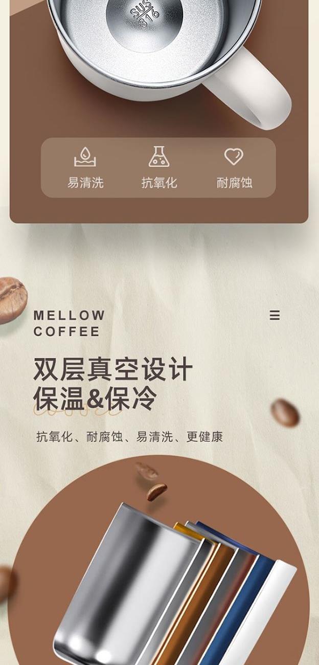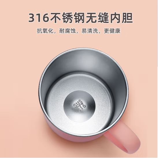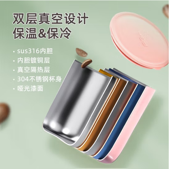 尺寸:8.3*10.6cm 重量210g 材质:316不锈钢内胆材质,超轻无缝一体成型。 可拆卸硅胶圈防尘盖,硅胶杯底防滑耐磨。 包装:单瓦盒