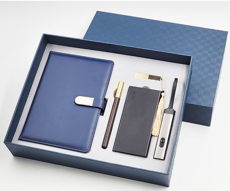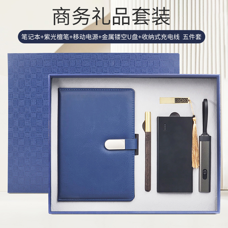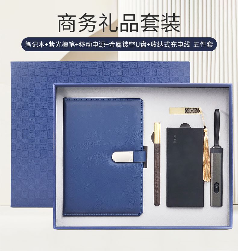 礼盒配置 : 1、A5搭扣硬皮PU皮笔记本 2、金属镂空16GU盘 3、紫光檀木笔 4、一拖三收纳式充电线 5、10000mAh移动电源 6、包装盒尺寸:328x263x75mm 7、手提袋尺寸:335x293x85mm 8、重量:约30kg/箱