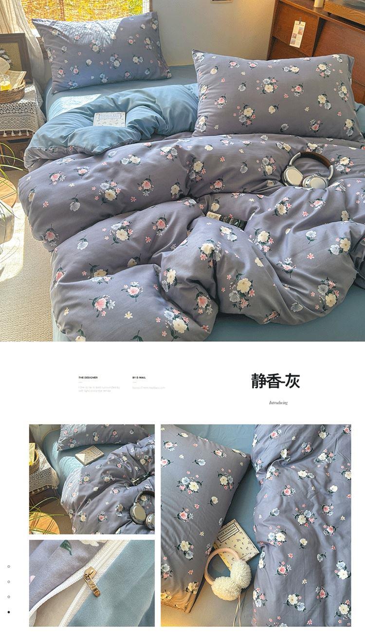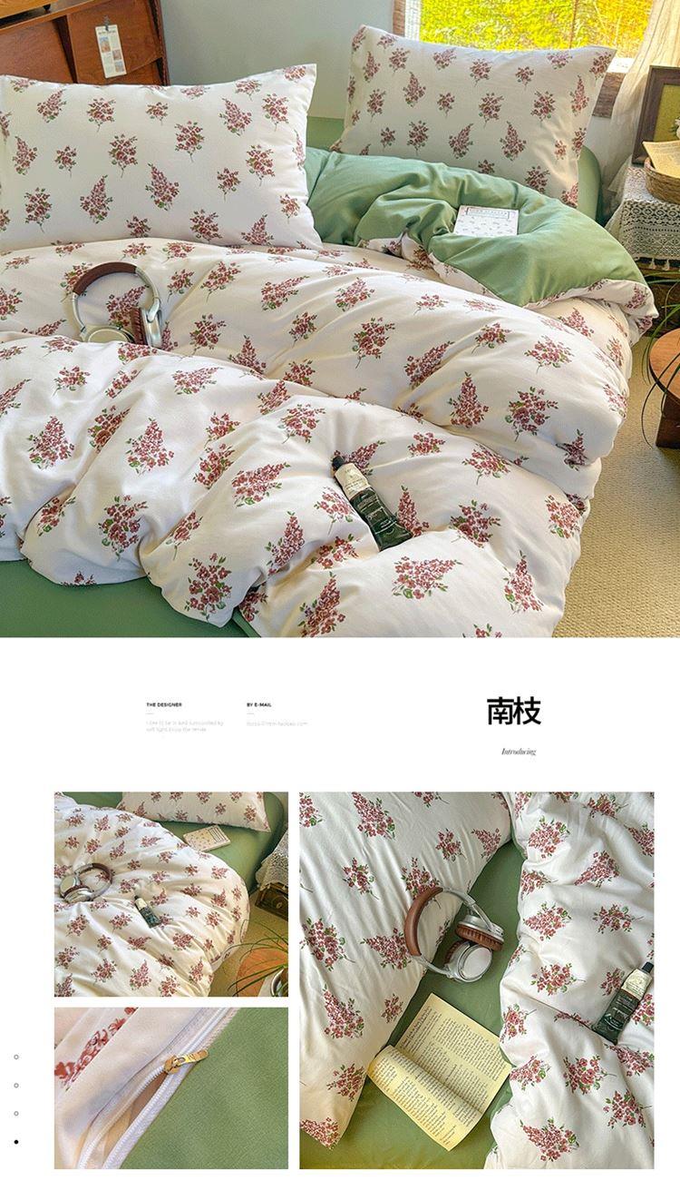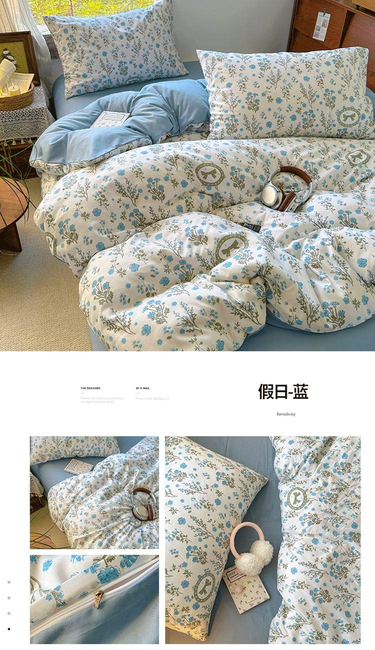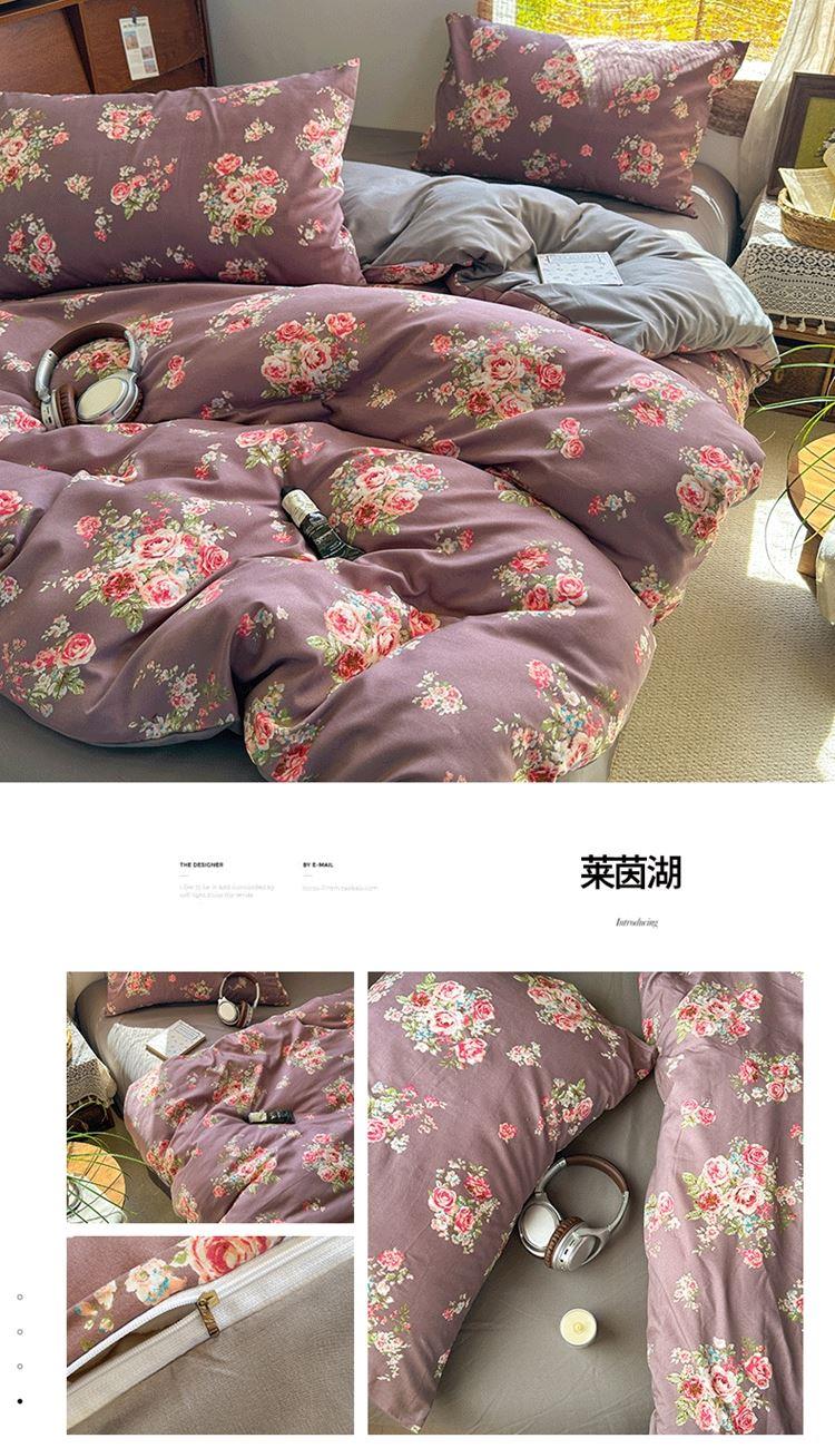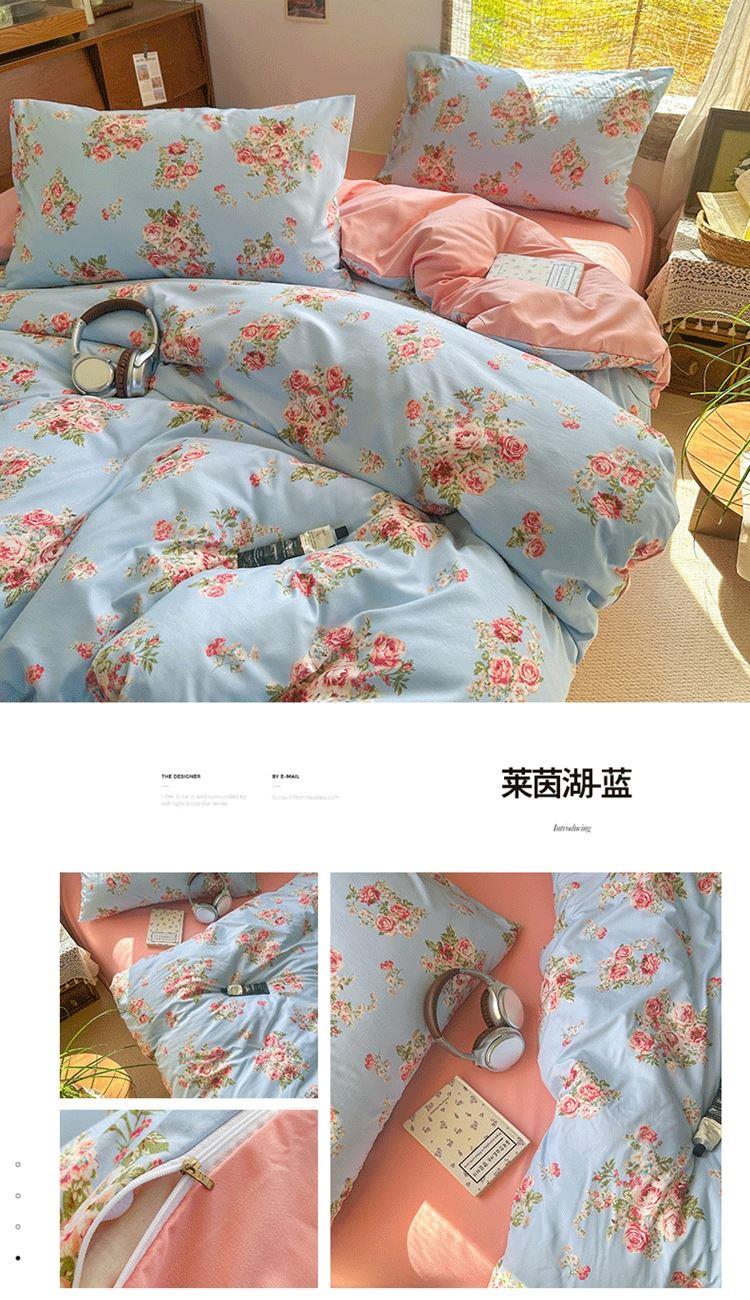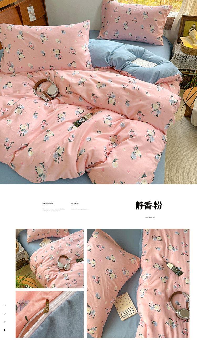 花花公子-家纺-亲柔棉AB版小碎花撞色四件套-四季款