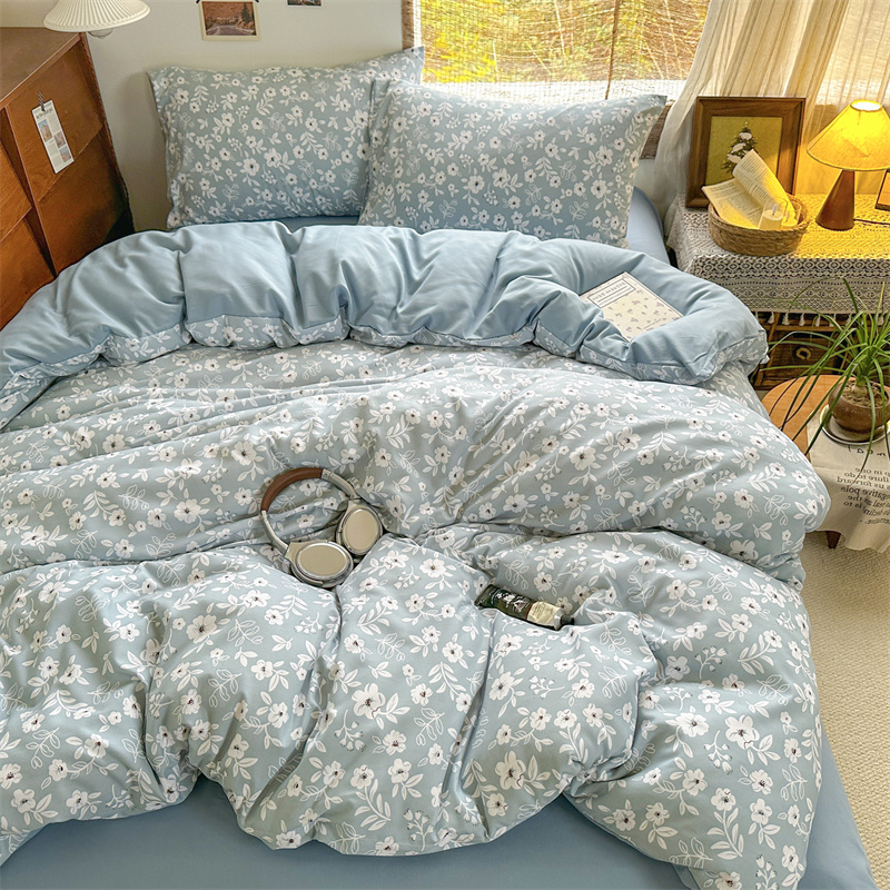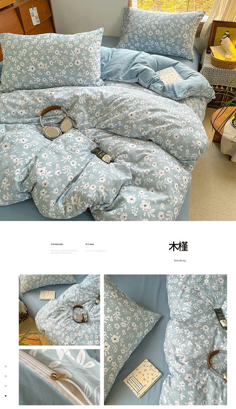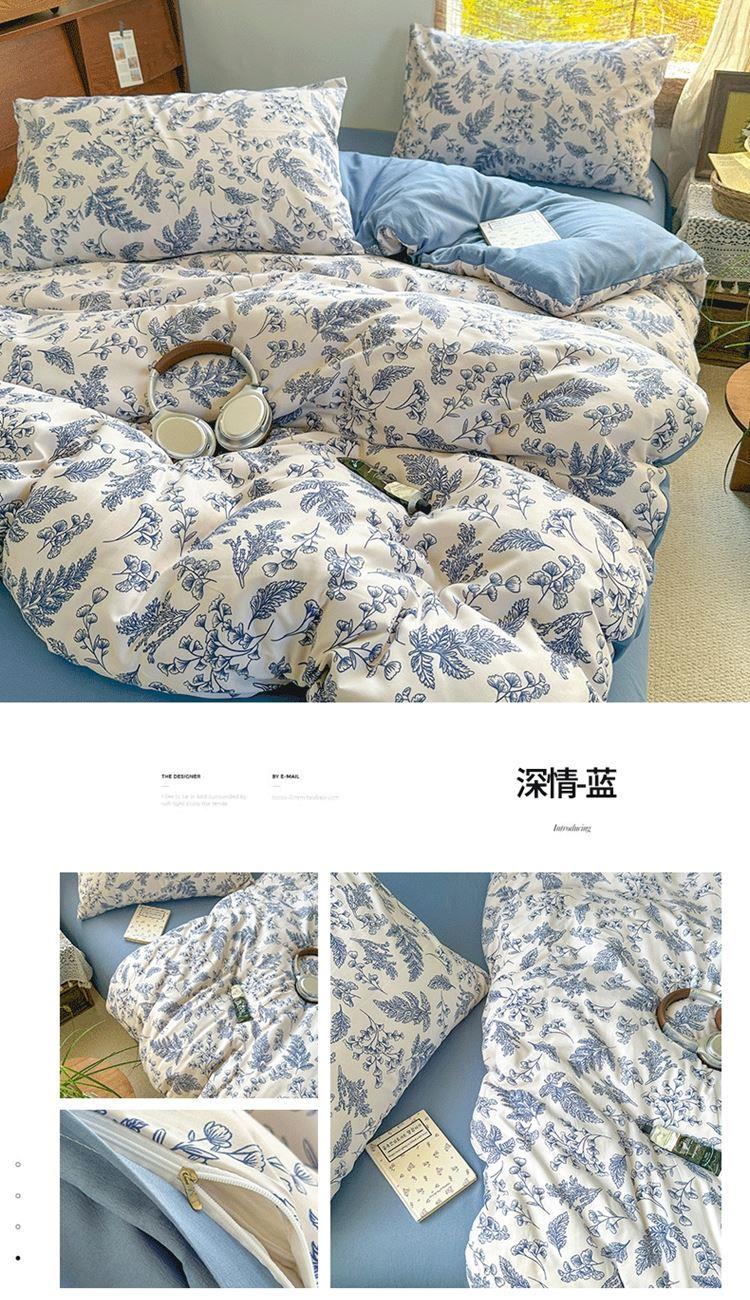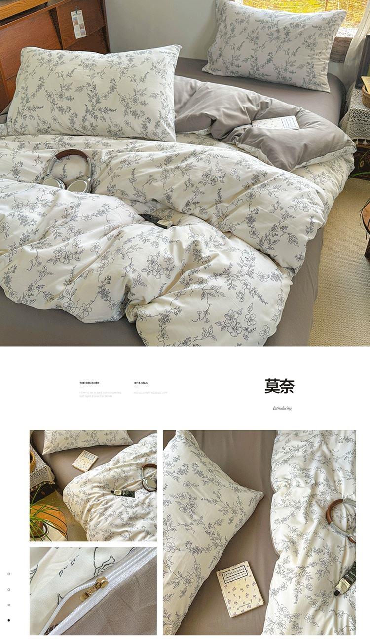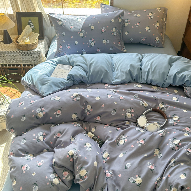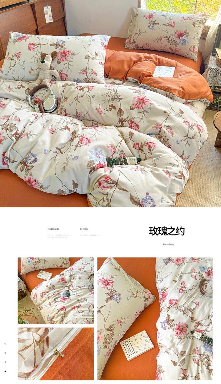 花花公子-家纺-亲柔棉AB版小碎花撞色四件套-四季款