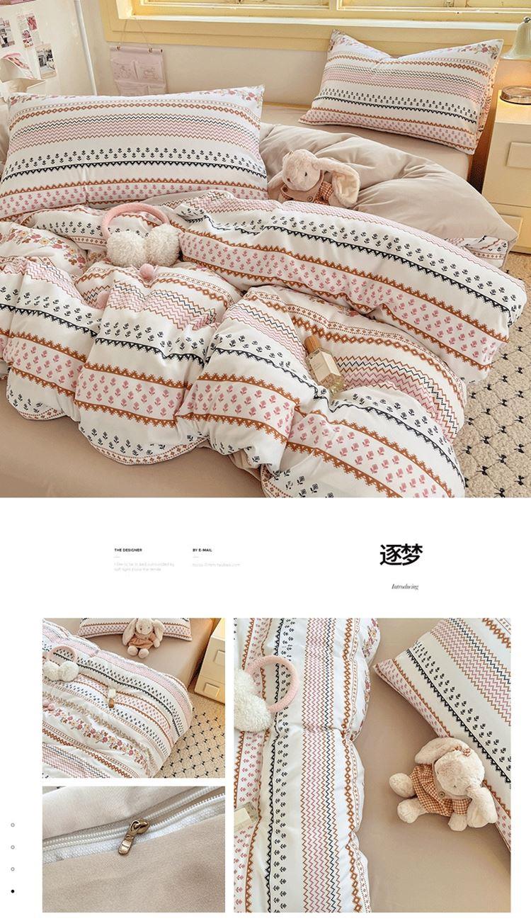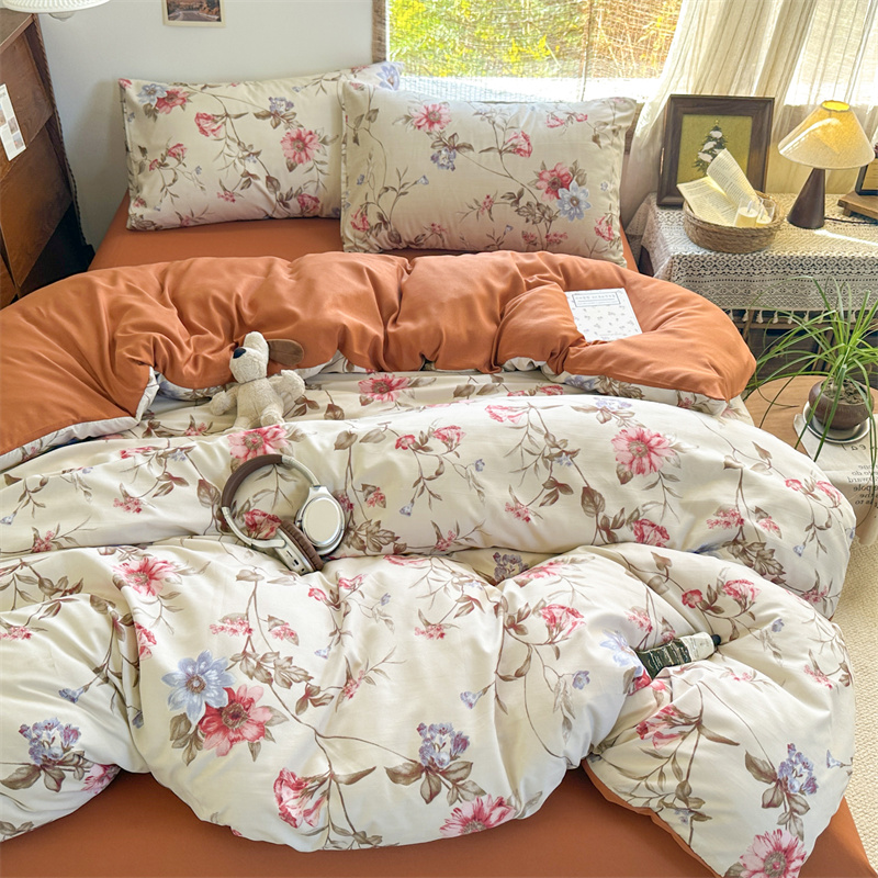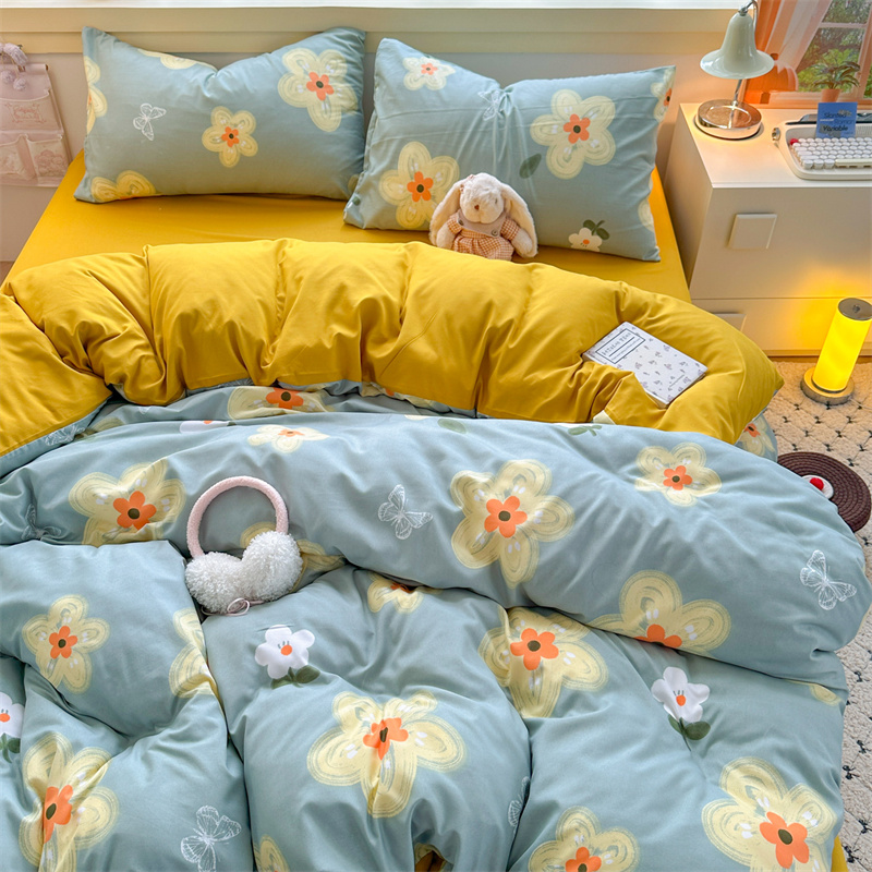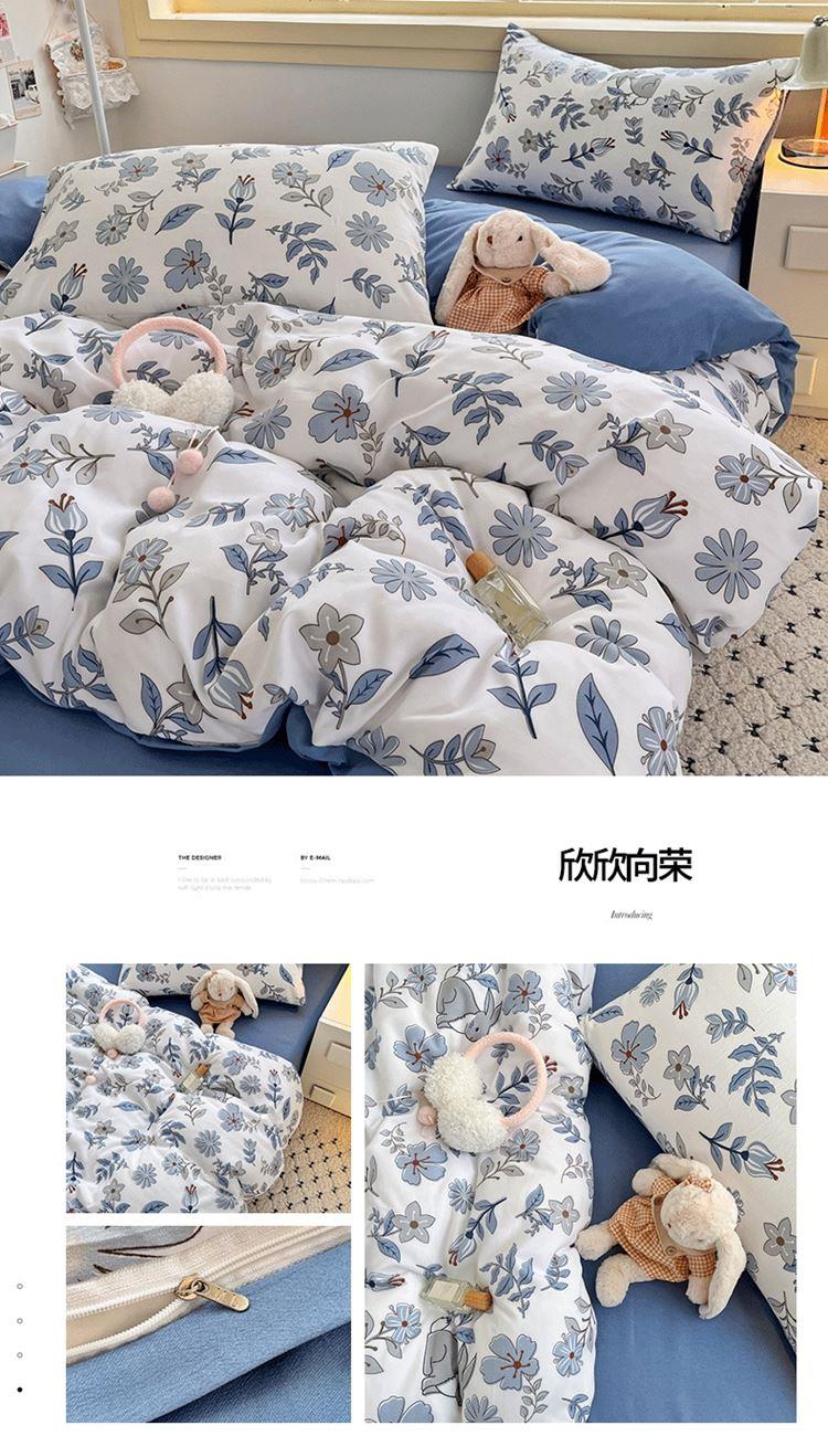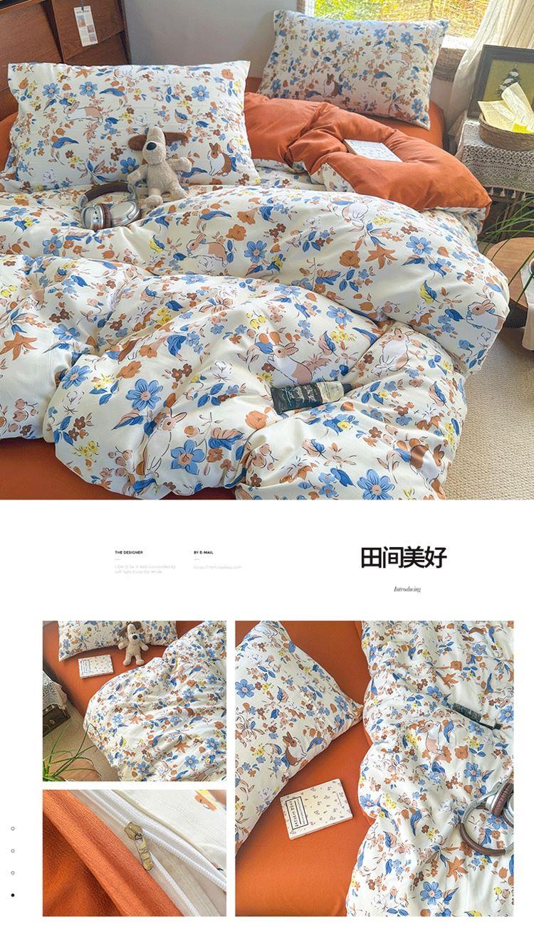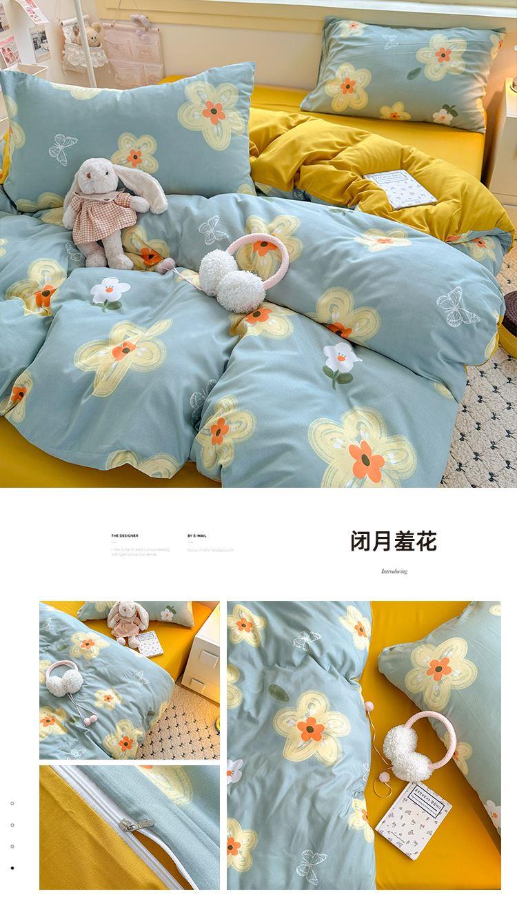 花花公子-家纺-亲柔棉AB版小碎花撞色四件套-四季款