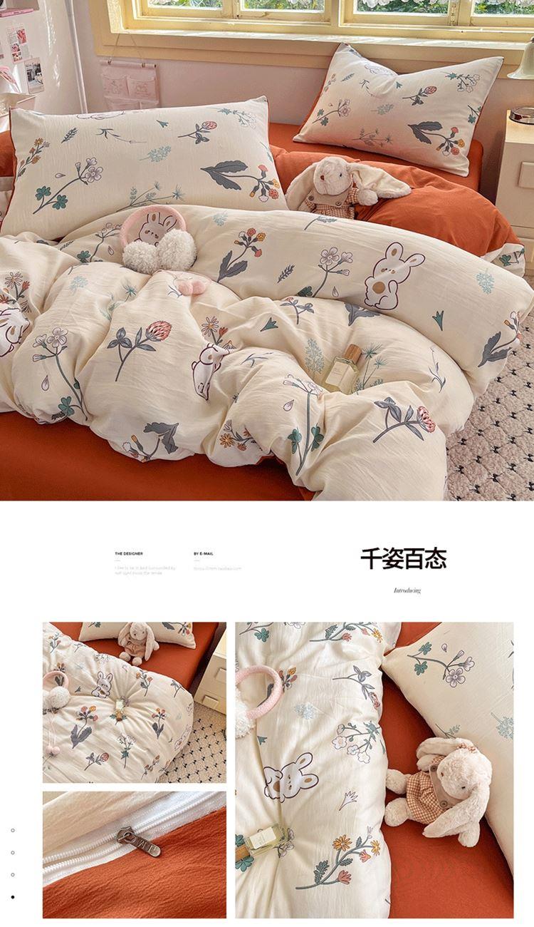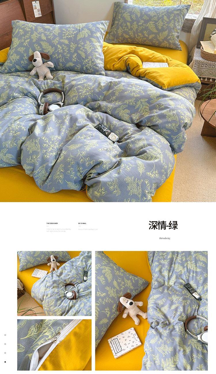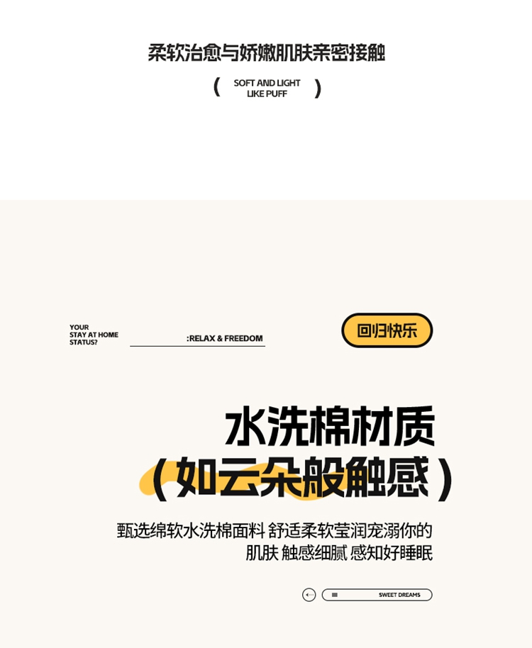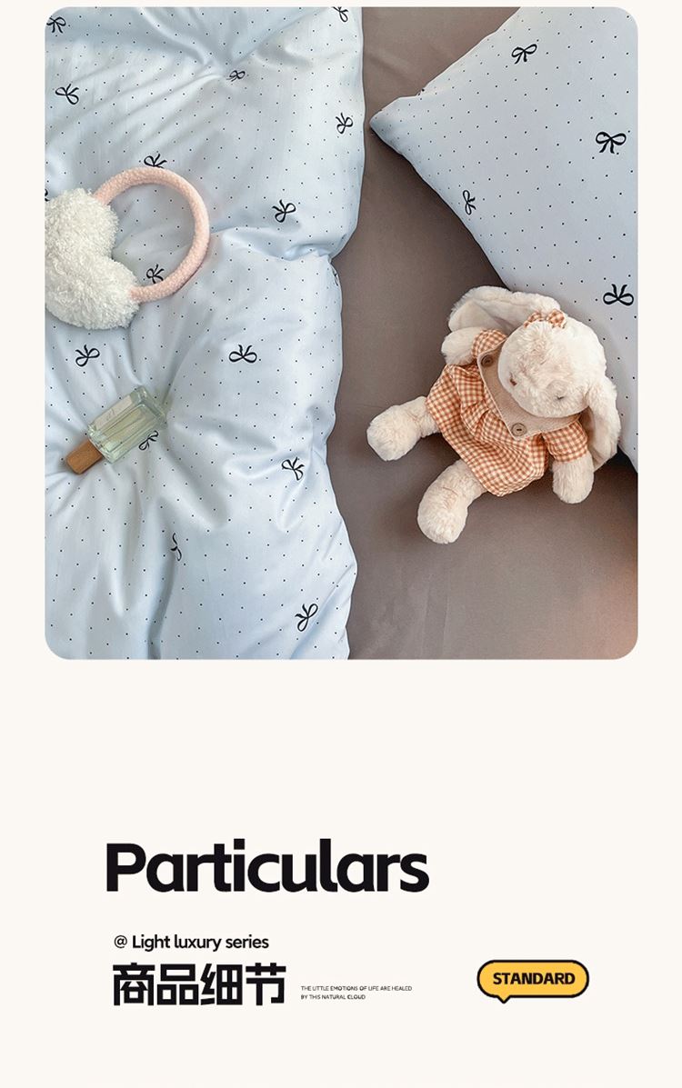 1:甄选绵软水洗棉面料 舒适柔软莹润宠溺你的肌肤 触感细腻 感知好睡眠 2:让睡眠更柔软,绵软透气 如坠云端般睡感 3:撞色搭配设计 层次感丰富有趣 打破单调有颜有范儿 包揽美梦时光 尺寸:被套200*230cm*1 床单:230*230cm*1 枕套:48*74cm*2 包装:彩盒 面料:亲柔棉