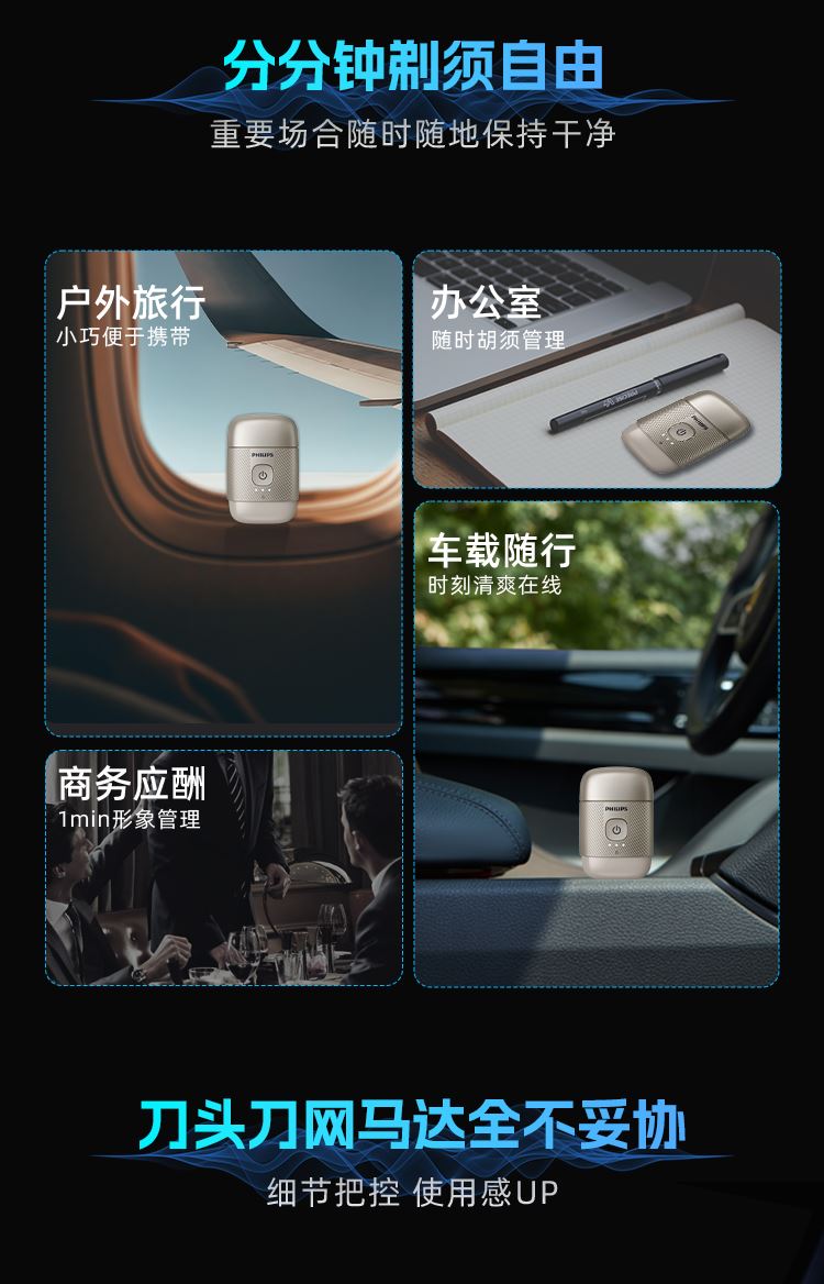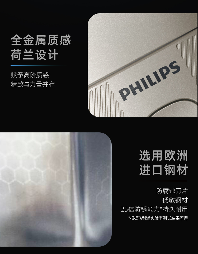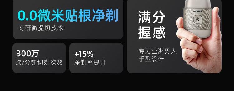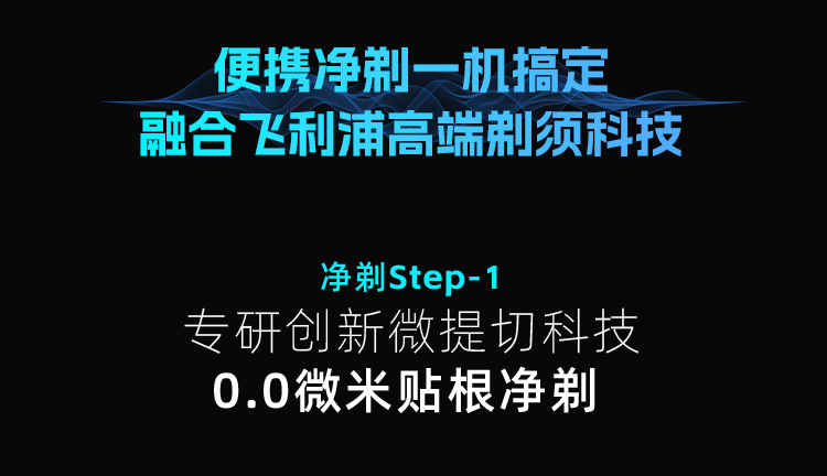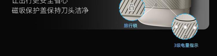 • 欧洲进口钢材 3D浮动刀头 提拉切剃系统将须发从根部轻柔提拉再切剃 • 刀片每分钟高达3,000,000次切剃 40天续航,陪伴更持久 • IPX7 防水功能让您可以在自来水下轻松地清洁剃须刀 • 随身携带的 2 合 1 理容套装,鼻毛修剪器,让你体验剃须刀的多功能性。满足您的出行需求 • 1小时充满电 ,5分钟快速充电