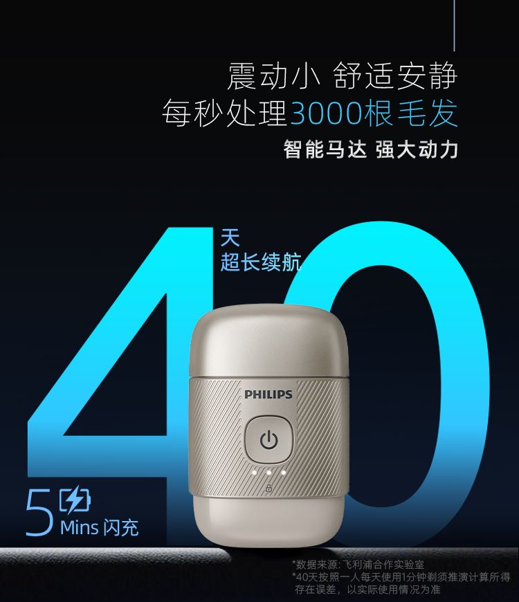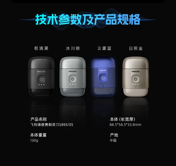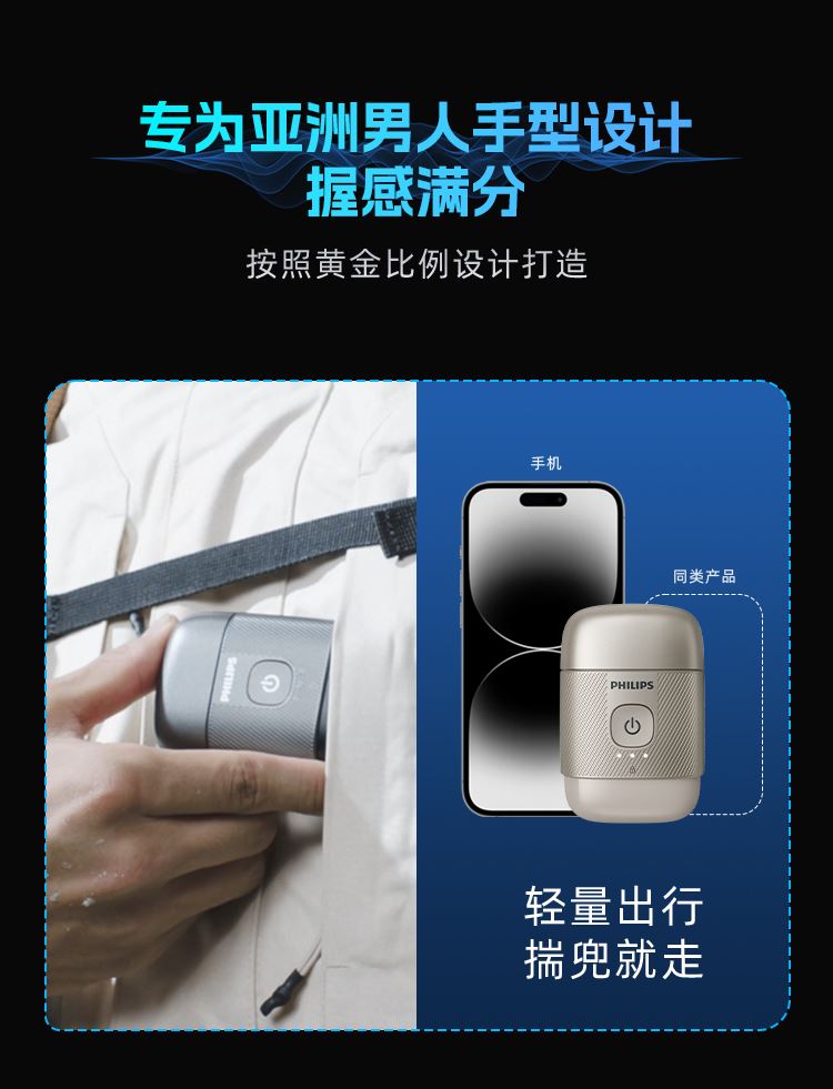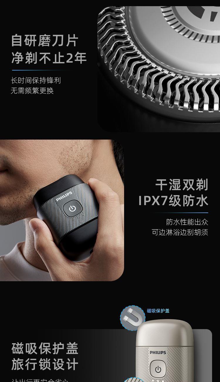 飞利浦鹅卵石系列便携式剃须刀S893/05【冰川银】