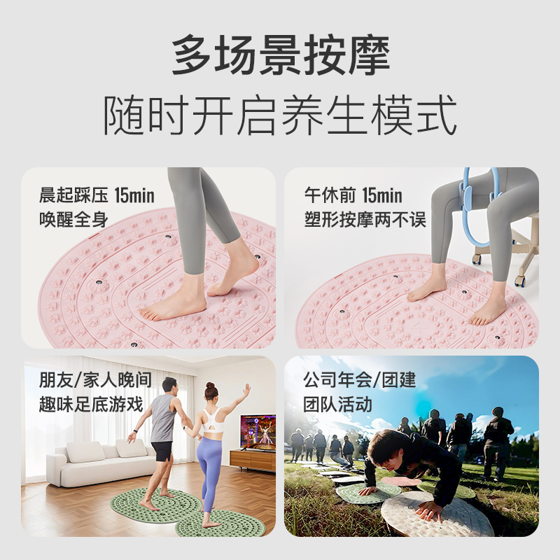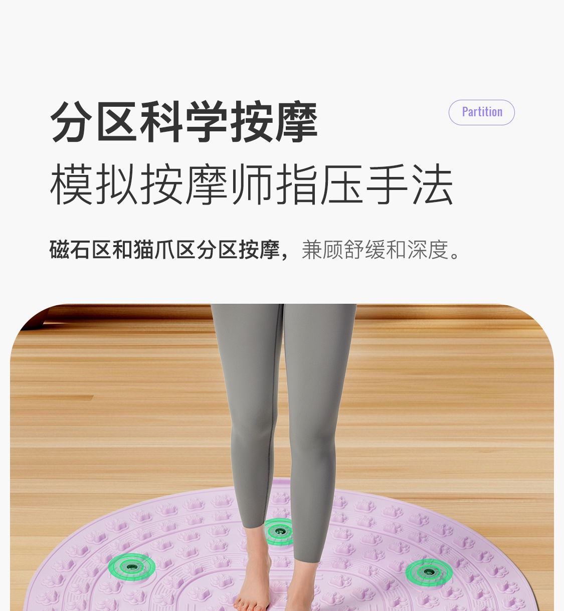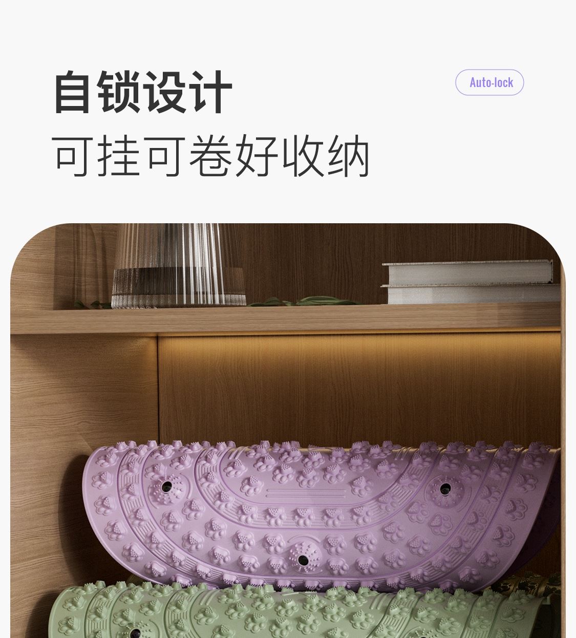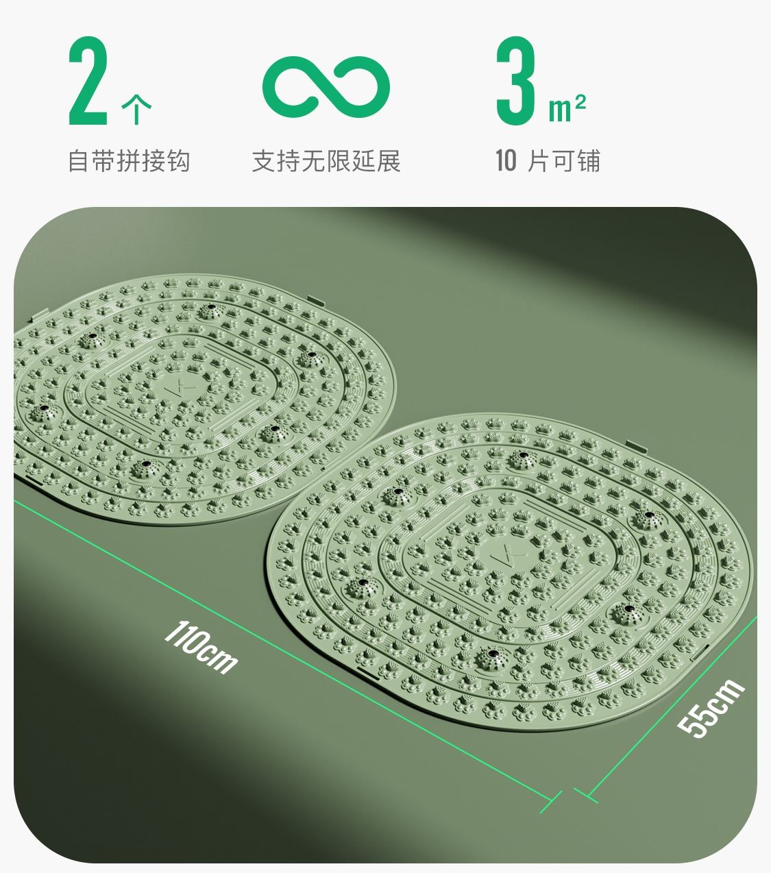 尺寸:41.5*41.5cm TPE环保无毒材质 方形圆角加大加密设计 仿「猫爪」设计 双分区多功能按摩 75°科学刺激硬度 支持无限串联拓展 加密按摩凸点 可做浴室防滑垫