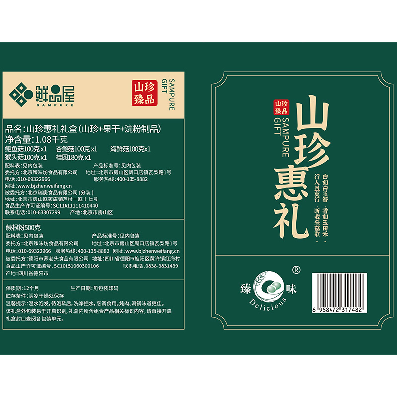 鲍鱼菇100g 杏鲍菇100g 海鲜菇100g 猴头菇100g 蕨根粉500g 桂圆180g