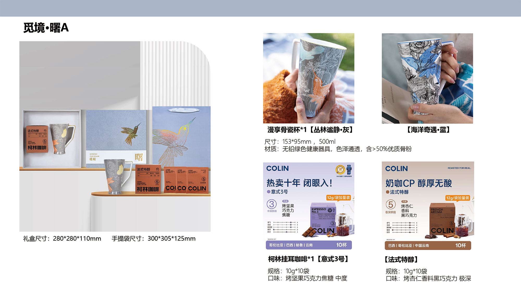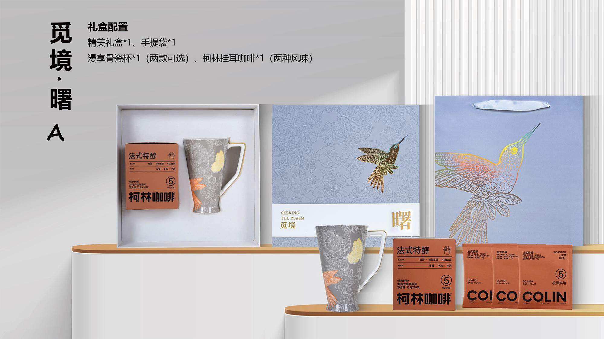 精美礼盒*1、手提袋*1 漫享骨瓷杯*1(两款可选) 柯林挂耳咖啡*1(两种风味)