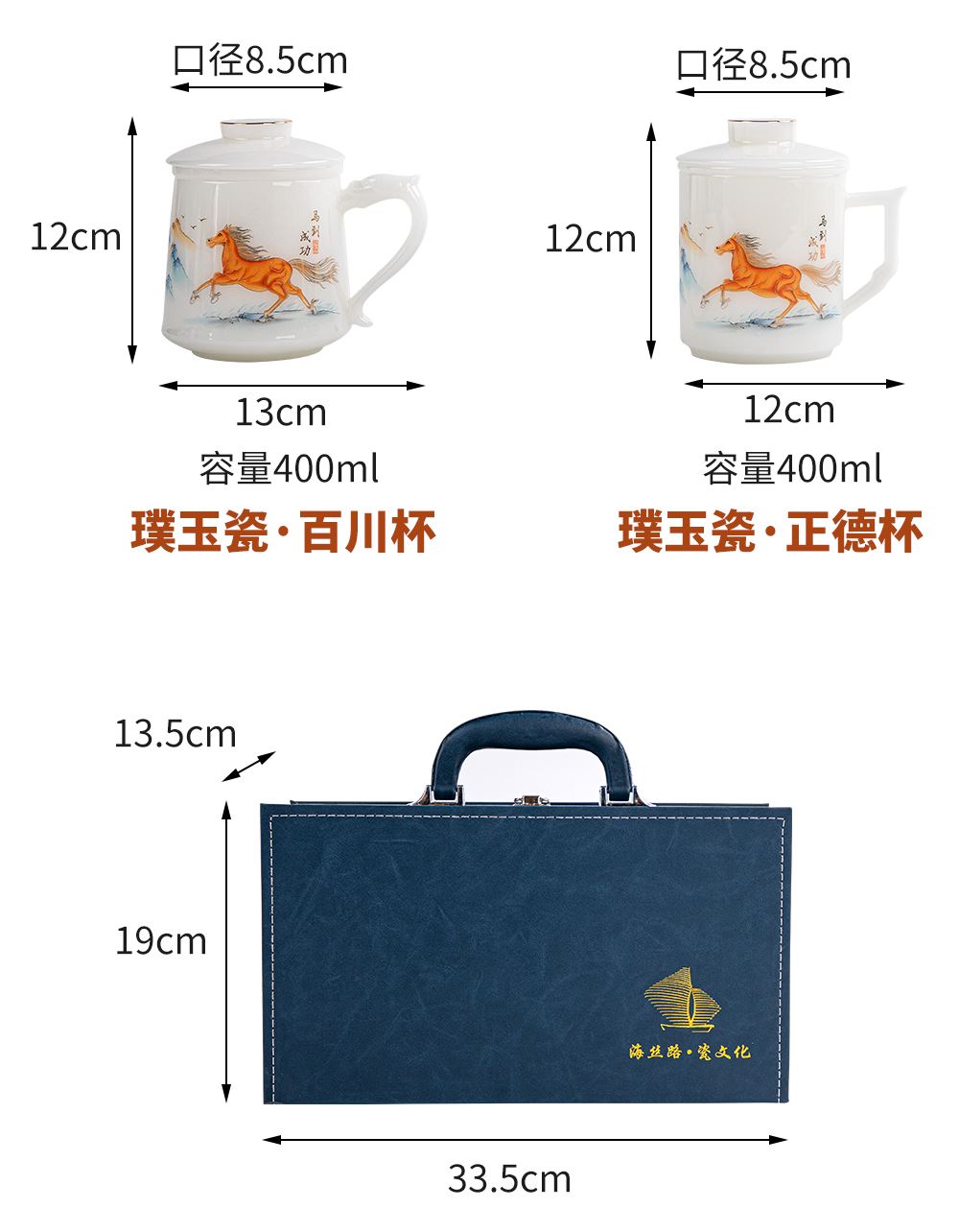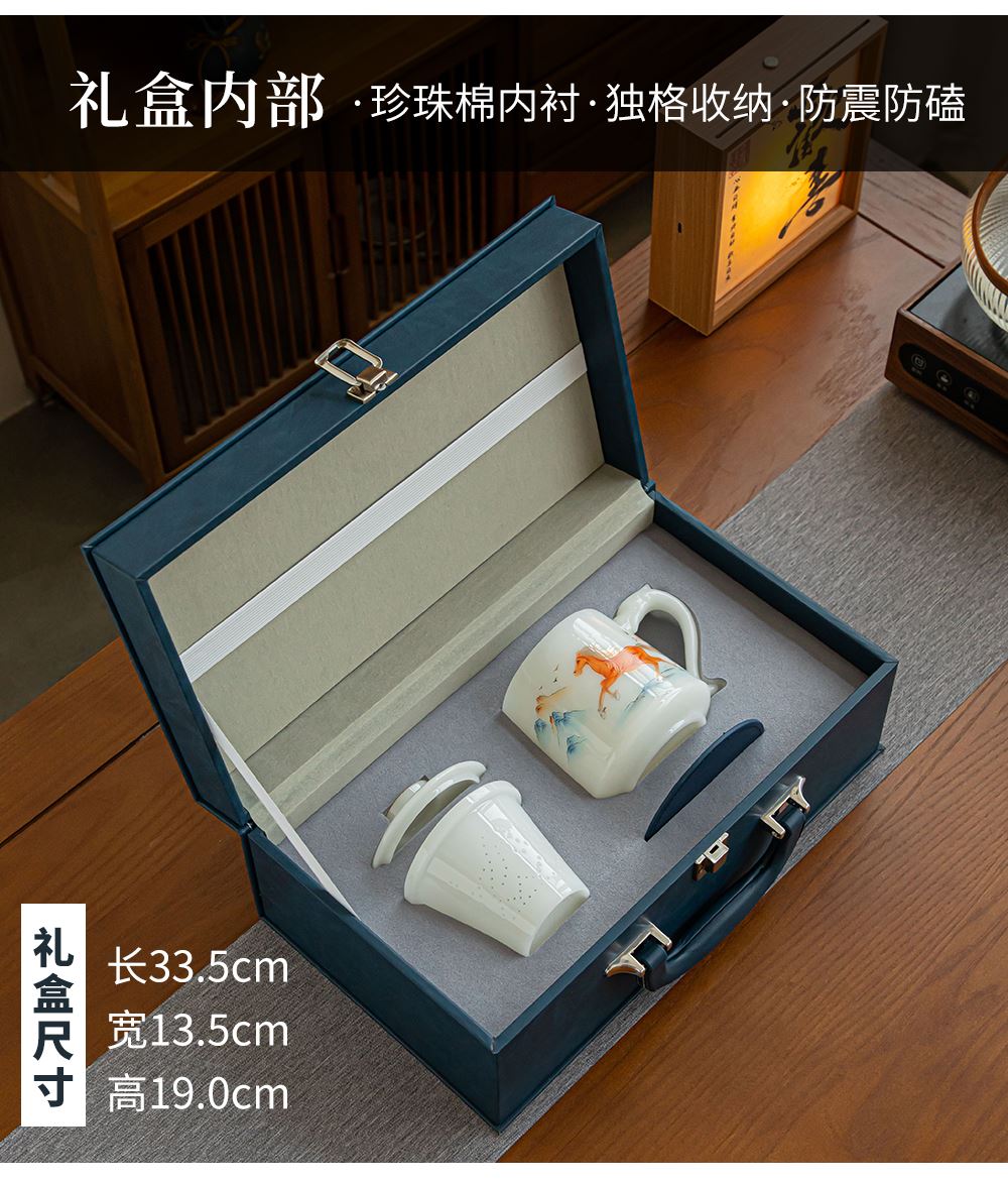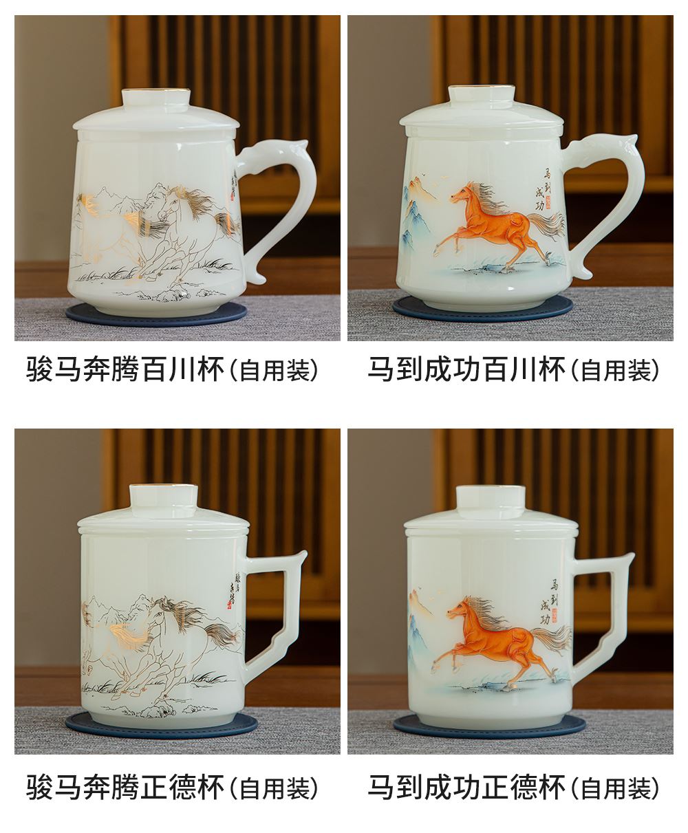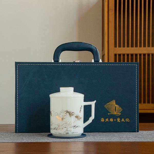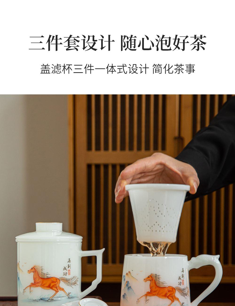 尾桥下窑冰种璞玉马到成功陶瓷三件套办公杯套装节日会议礼品