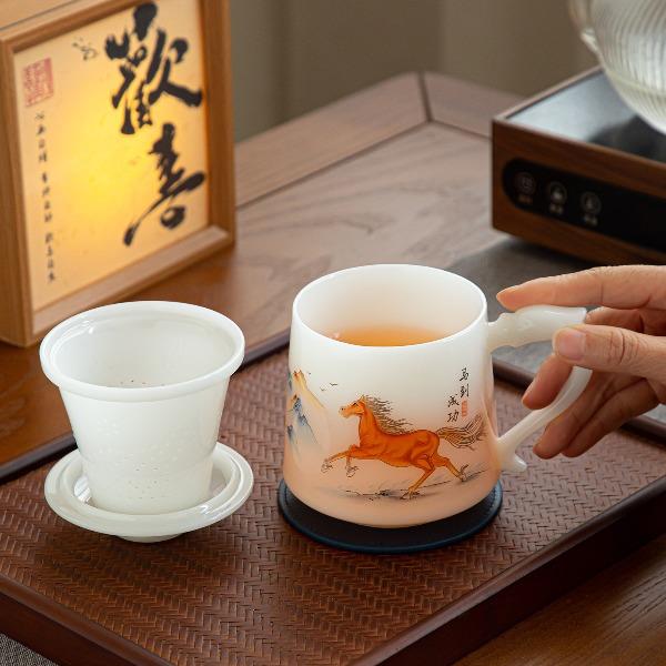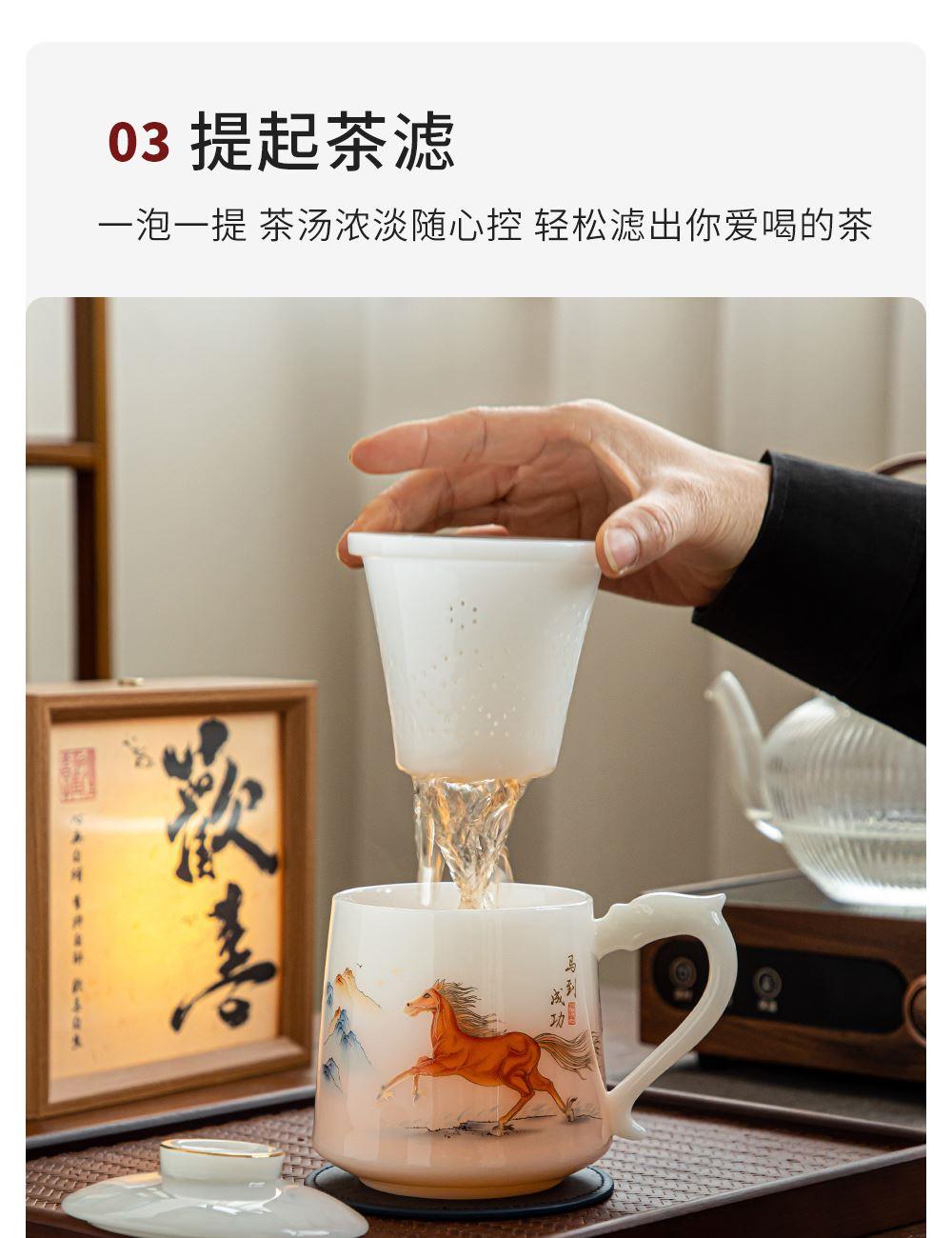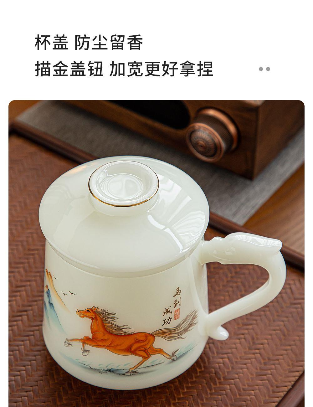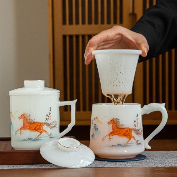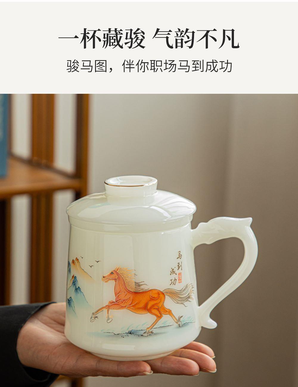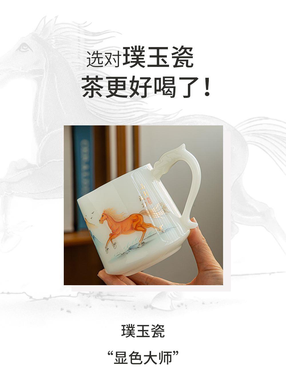 尾桥下窑冰种璞玉马到成功陶瓷三件套办公杯套装节日会议礼品