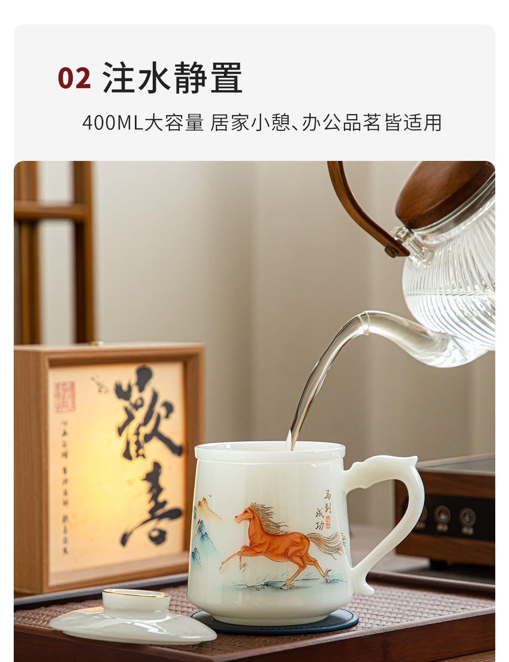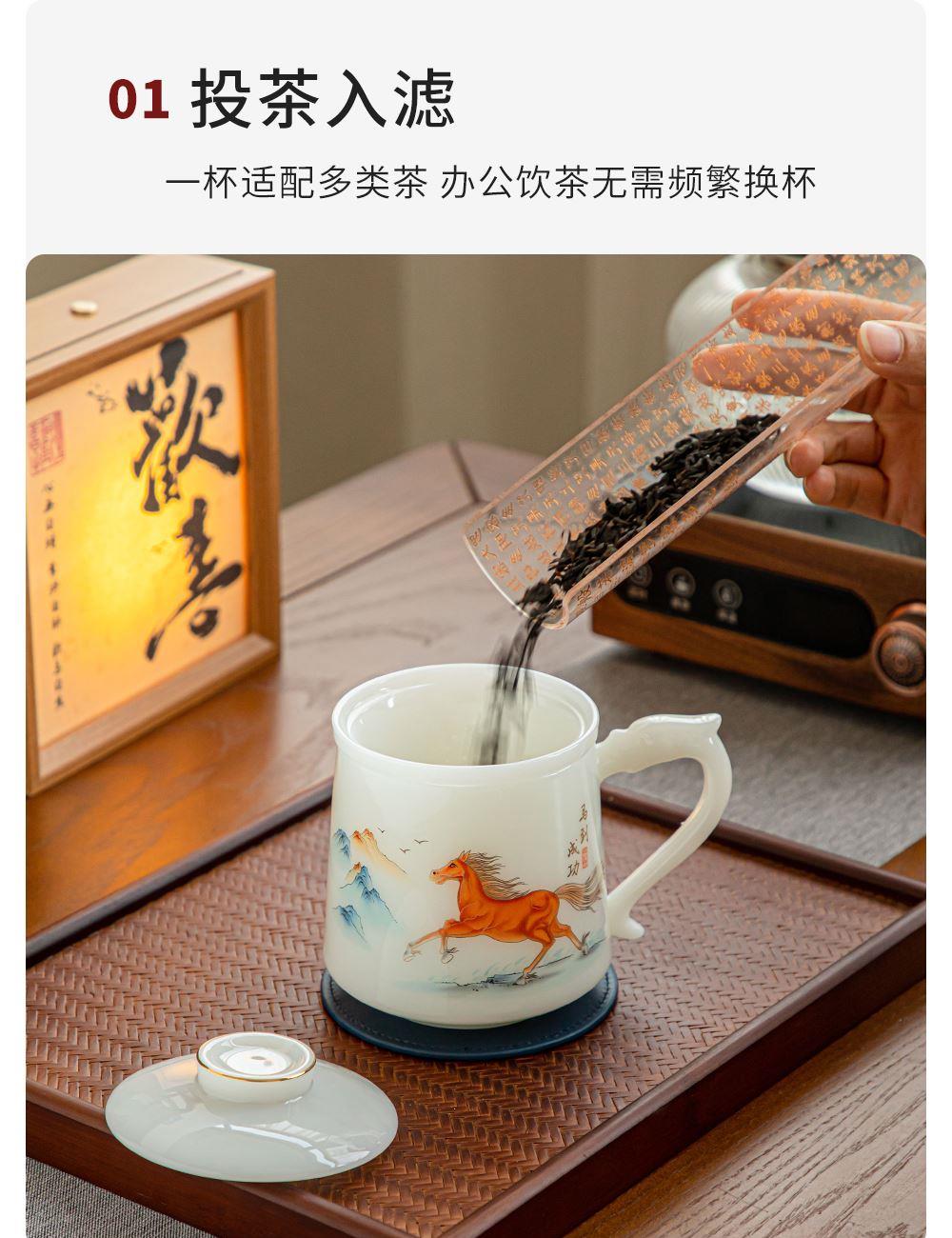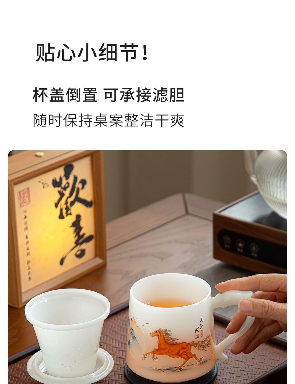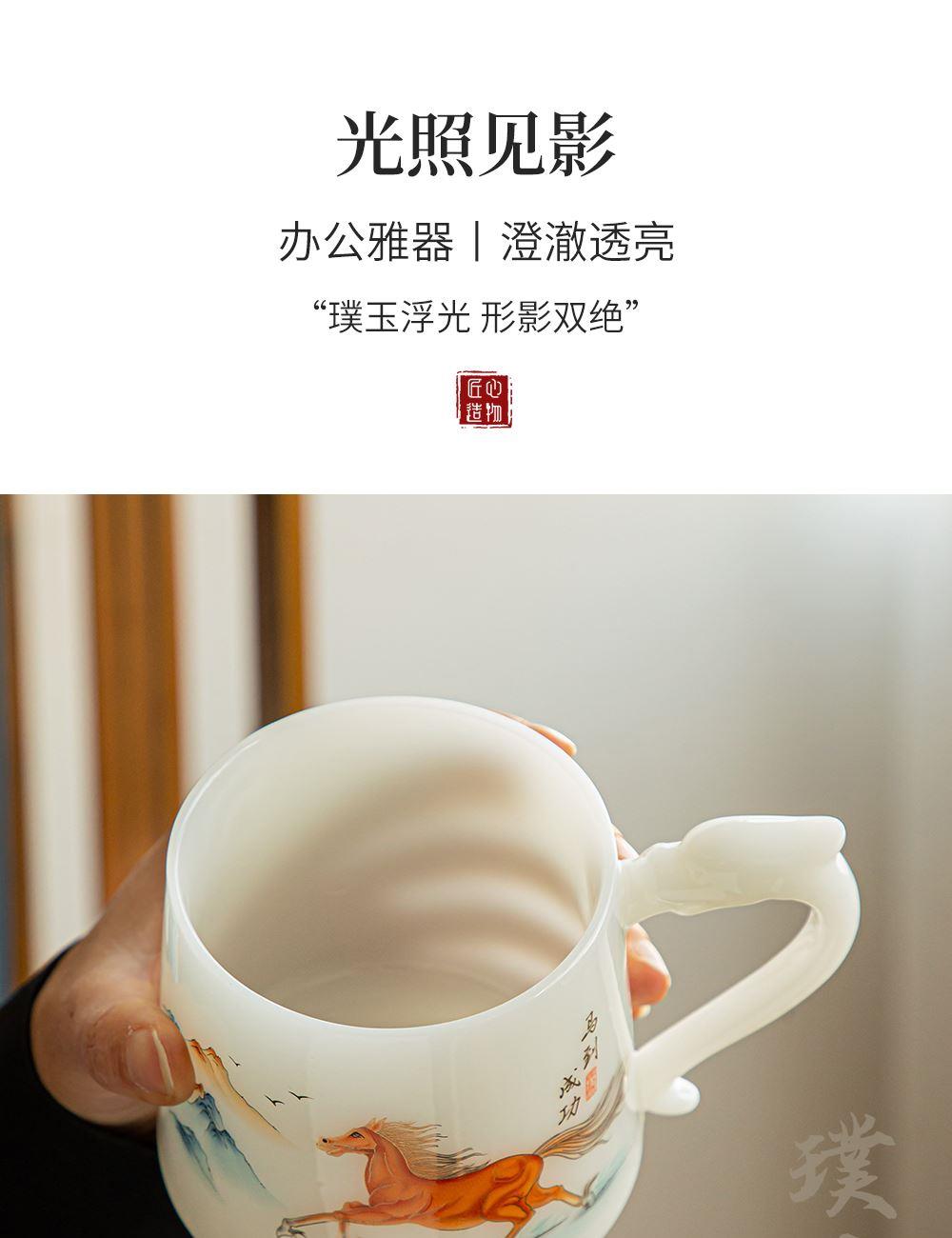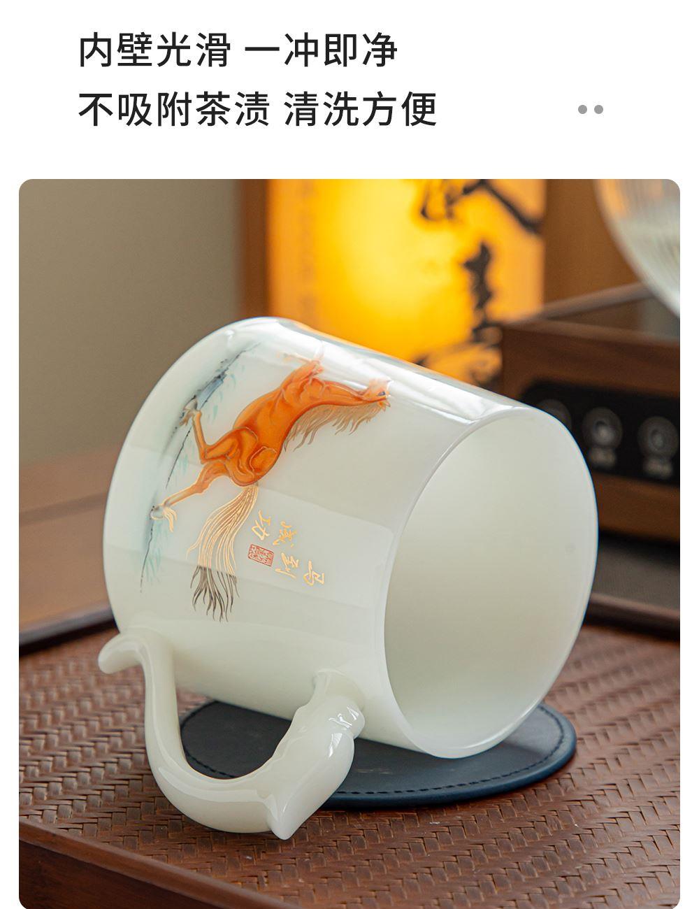 尾桥下窑冰种璞玉马到成功陶瓷三件套办公杯套装节日会议礼品