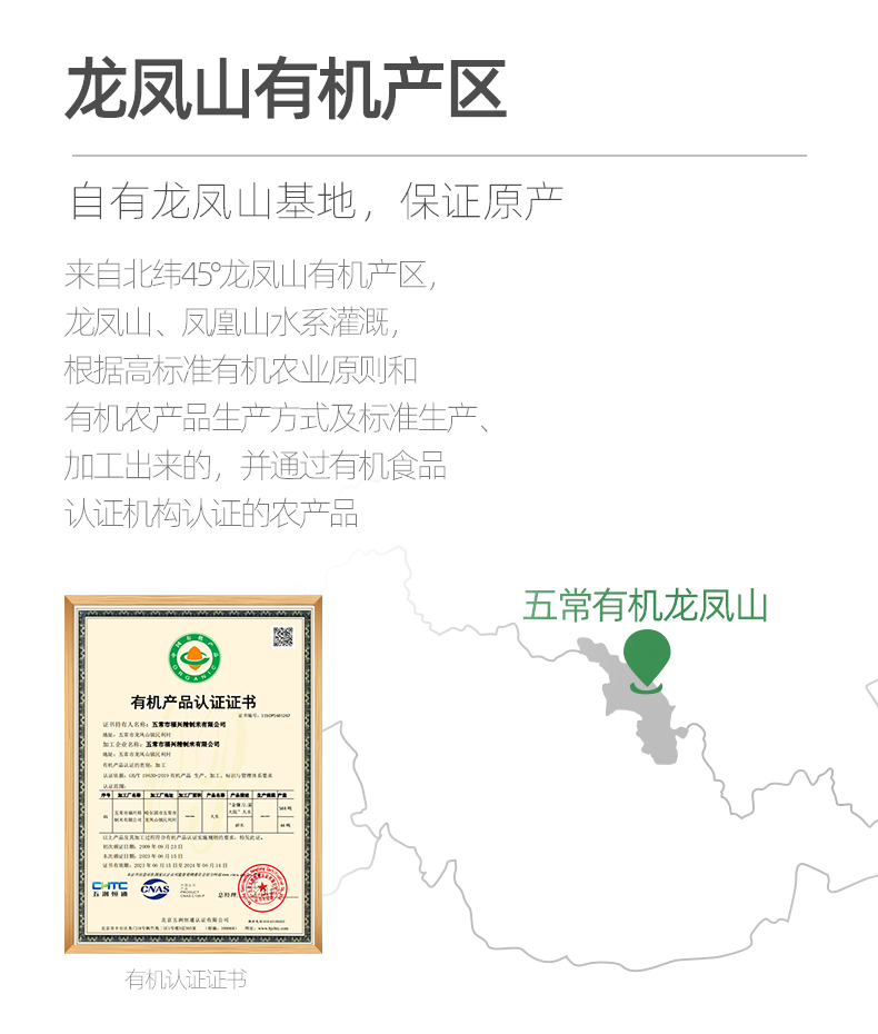 产品规格:5kg 产品包装:袋装+内真空袋 产品尺寸:245*95*500mm 条 码:6976641150029 推荐理由: 1、限定五常有机龙凤山产区 2、原生态种植,不施化肥,不打农药 3、一年一季,清澈河水灌溉,富含微量元素 4、独立真空包装,避免营养流失